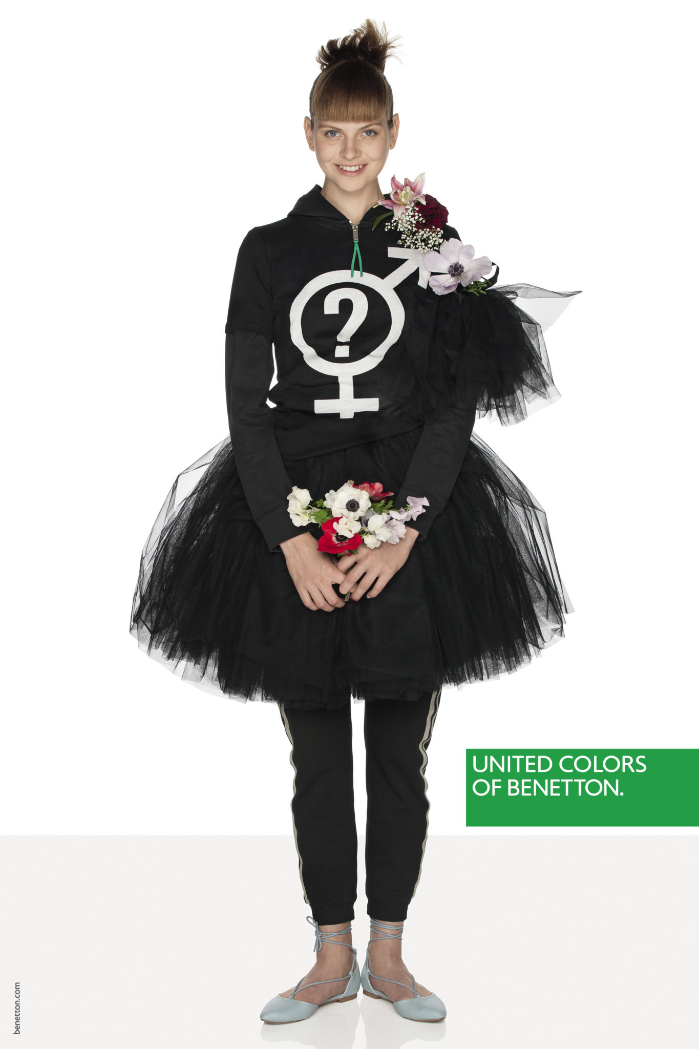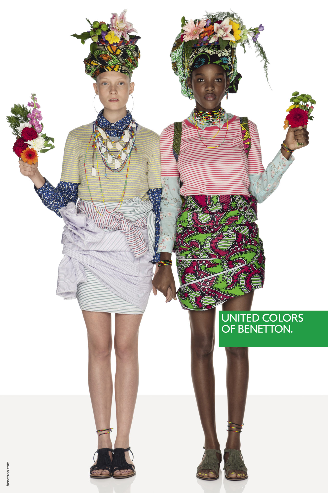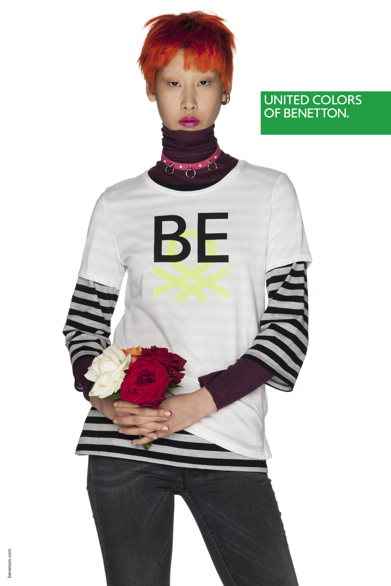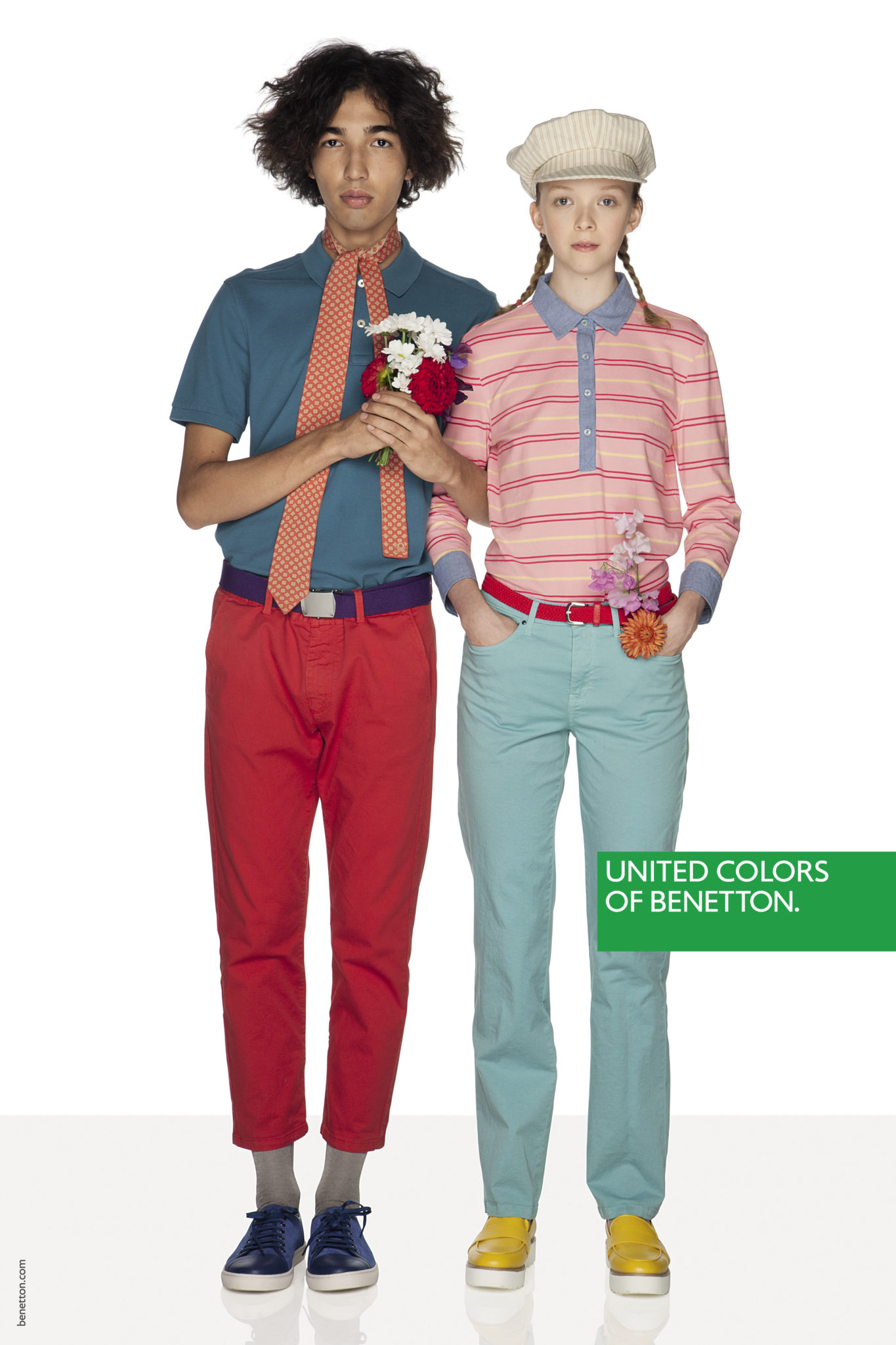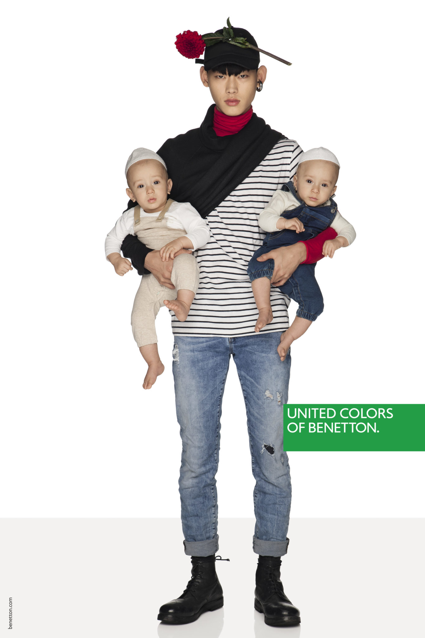 Un mix & match de couleurs et matières sans règles précises dans une image forte et incisive pour signifier que nous sommes tous ici, tous égaux.Une manière de s’habiller qui va au-delà du global, une liberté et une créativité sur tous les fronts, un message universel, pour tous, sans distinction de religion, d’âge ou d’orientation sexuelle.Une mode qui se fait entendre, sans peur, faite d’idées type manifeste et de slogans imprimés : PAIX, AMOUR, EGALITE, NO GENDER, POSITIVITE.« Nos pulls resplendiront à nouveau », a déclaré Toscani de retour chez Benetton depuis quelques mois afin de répéter la magie au sein d’une marque qui a fait l’histoire de la mode mondiale.