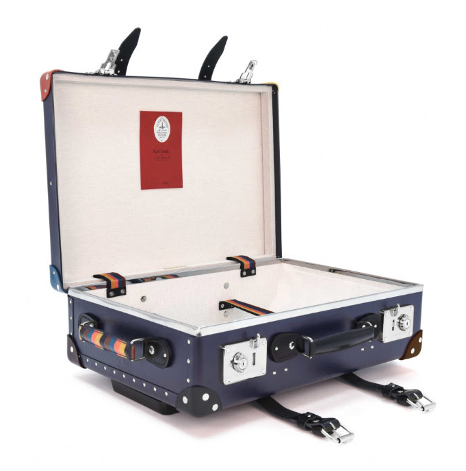 « Pour quelqu’un qui voyage presque chaque semaine, l’idée de collaborer avec Globe-Trotter me plaisait beaucoup et notamment parce que j’apprécie l’apparence classique et la qualité de leur valises » explique Paul Smith. « Le design était déjà superbe, et je voulais le respecter, j’ai donc simplement ajouté des touches subtiles de couleurs et de rayures. Le modèle sur lequel j’ai travaillé possède les dimensions parfaites pour être transporté facilement, un paramètre essentiel quand je voyage ! »