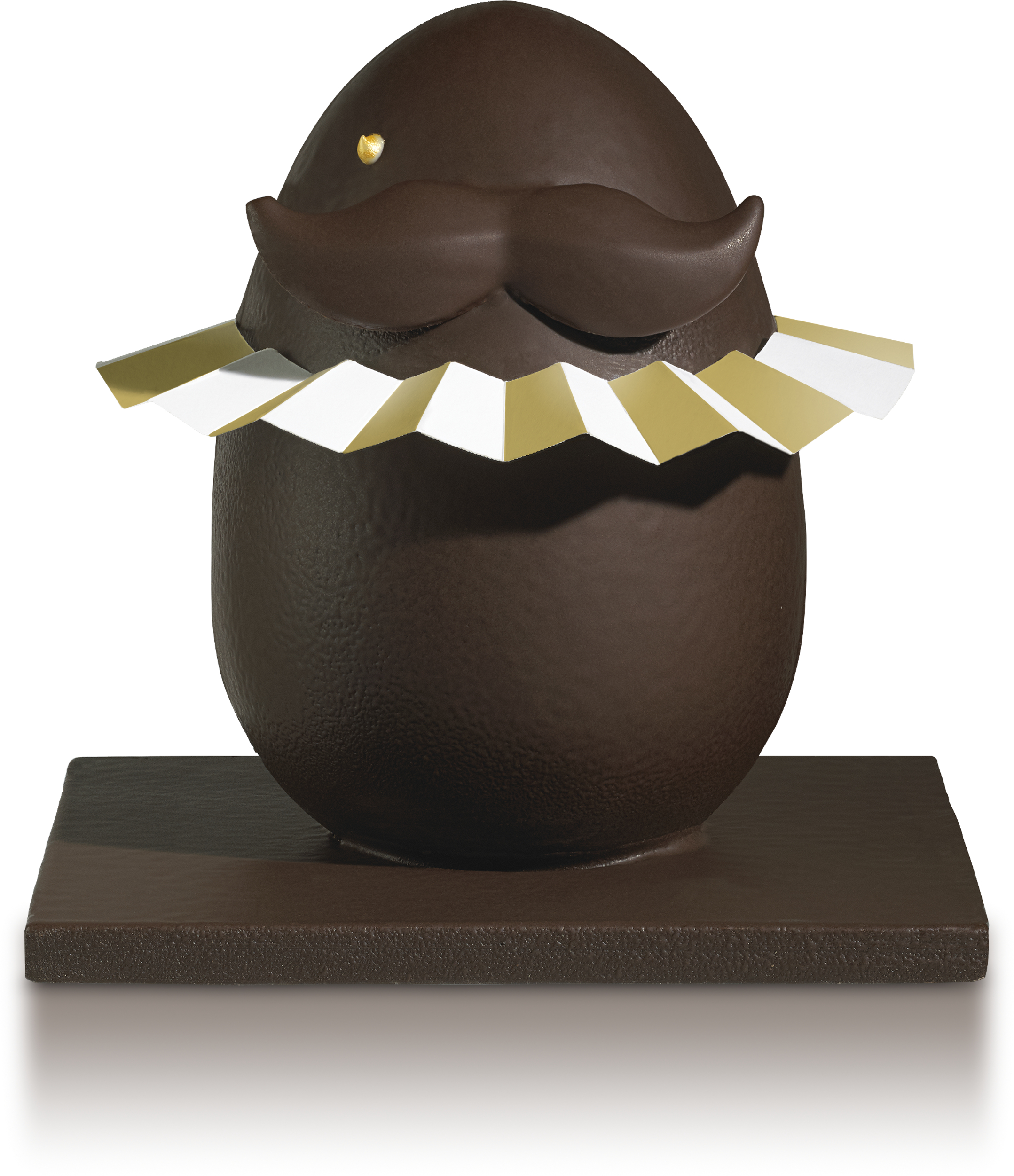 Pour lui donner un petit côté très aristo, l’oeuf a été paré d’une fraise et d’un monocle. En clin d’oeil à la date du dimanche de Pâques qui tombe cette année le 1er avril, cette création originale se dote d’un poisson en chocolat blanc dans le dos… La petite surprise de Comtesse !