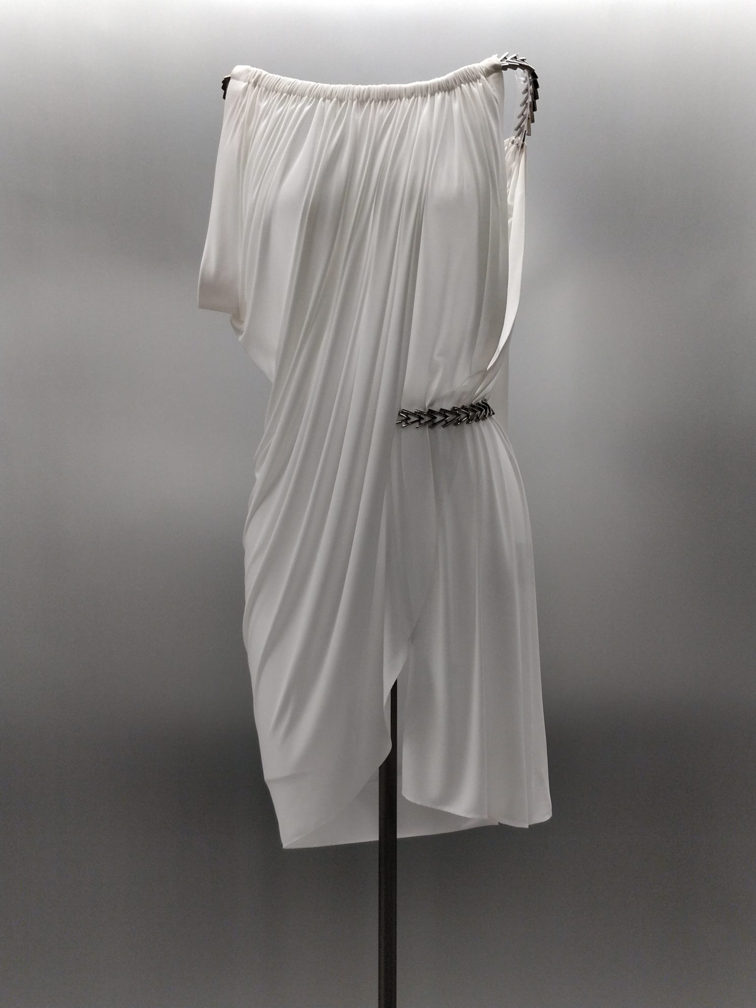 de sculpteur véritable, Car le noir précise une idée sans la diluer comme le font les autres couleurs. Dans les blancs de craie ou les blancs plâtre, Alaia se souvient de ses années d’étude à l’Ecole des Beaux-Arts de Tunis. Dans le coton modeste ou l’aristocrate mousseline, il sait dominer les tissus et faire naître des bas-reliefs de son immense mémoire les robes divines d’aujourd’hui. Azzedine Alaia a choisi de situer son métier dans la grande tradition des couturiers architectes du XX siècle qui maitrisent toutes les étapes de conception et de réalisation du vêtement du patronage au montage. De Madeleine Vionnet, Cristobal Balenciaga ou Charles James, il est l’ultime héritier