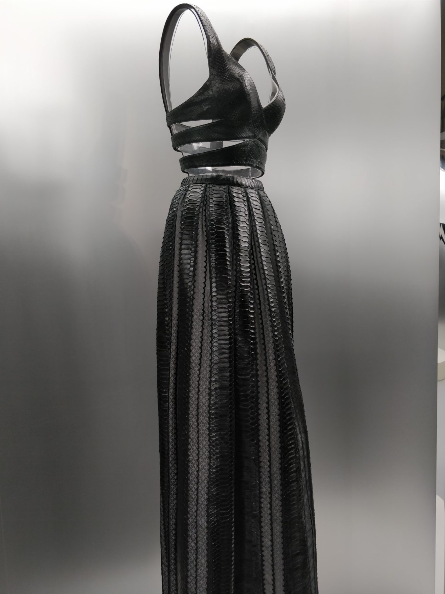 Les robes, ces modéles d’absolu que le couturier Alaia n’a eu de cesse de perfectionner tout au long de sa carrière, sont l’expression et l’aveu de son désir d’éternité Depuis sa première collection en 1979, dans les noirs profonds et les blancs optiques, le couturier a édifié une création hors des temps d’une mode qui affaiblit les idées. Le noir pur sert son dessin