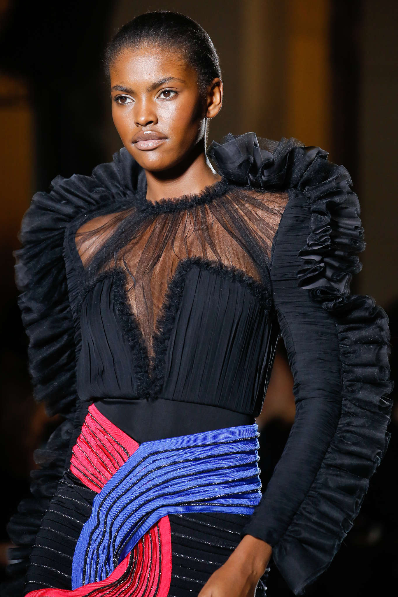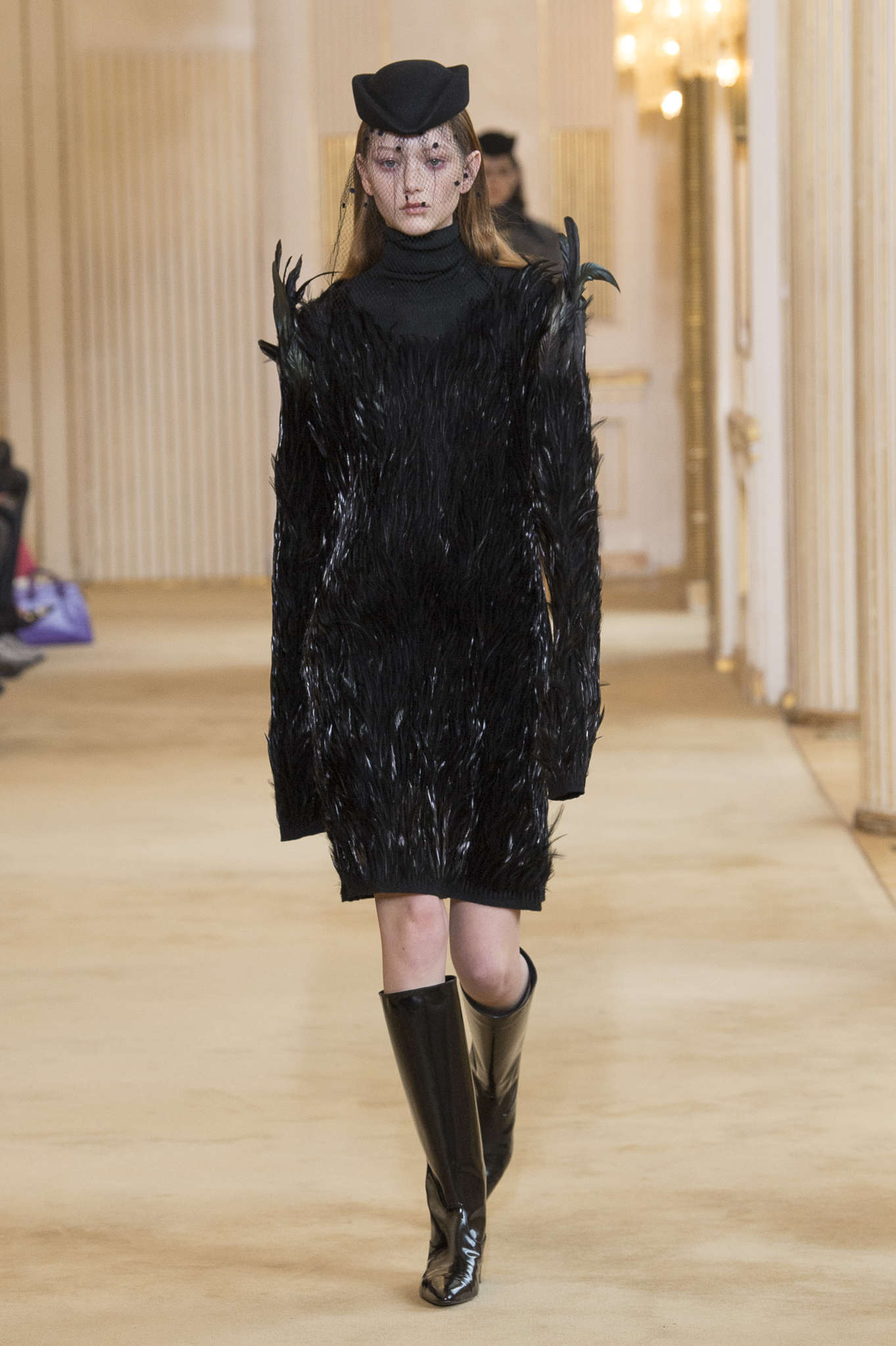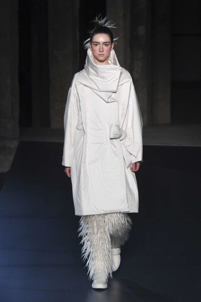 Guillaume Henry ne semble pas avoir bonne presse, un peu comme Frankenstein. Le voila exclu de la société modeuse. Mode trop élitiste, références peu fines : les rumeurs font jusqu’à annoncer son départ de chez Nina Ricci-le jour même du défilé. Pourtant dans cette collection, les plumes, les fourrures, la douceur des manteaux pastels viennent dire toute la poésie du créateur. Les mannequins portent des voilettes : un accessoire d’enterrement issu d’une autre époque- le fantasme de la veuve noire feutrée dans le chic absolu de son appartement hausmanien. Peut-être que Nina Ricci est devenue le reflet de la monstruosité de l’élitisme bourgeois. Ici Nina Ricci sera lu comme le deuil de l’hégémonie bourgeoise. Le deuil d’une position passive: ces femmes ont leurs rôles, leurs avis sur #Metoo. La tribune Nina Ricci , ou la Tribune des Catherines : nier leurs existences c’est finalement cela la monstruosité.