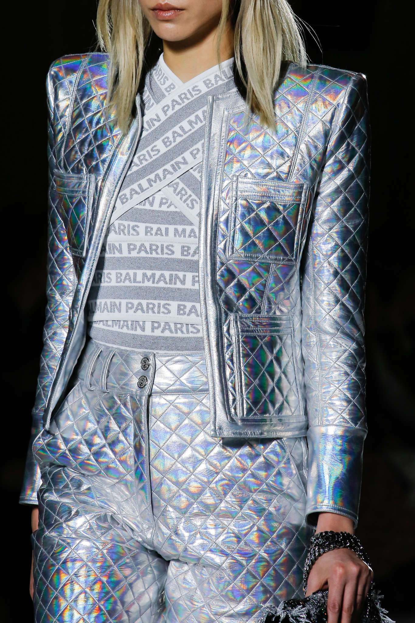 - Balmain : bandelette pour confiner sous les tailleur matelassé remixer hallographie 2018