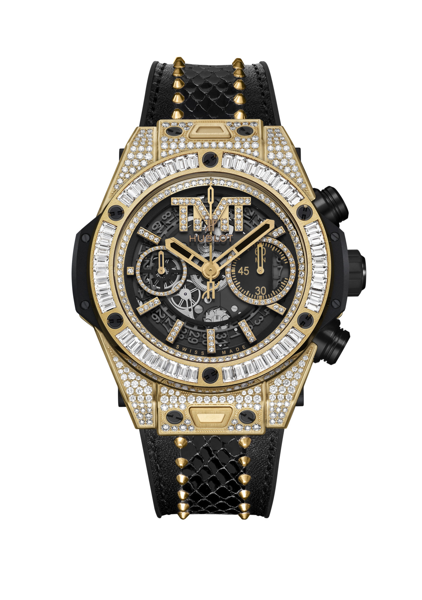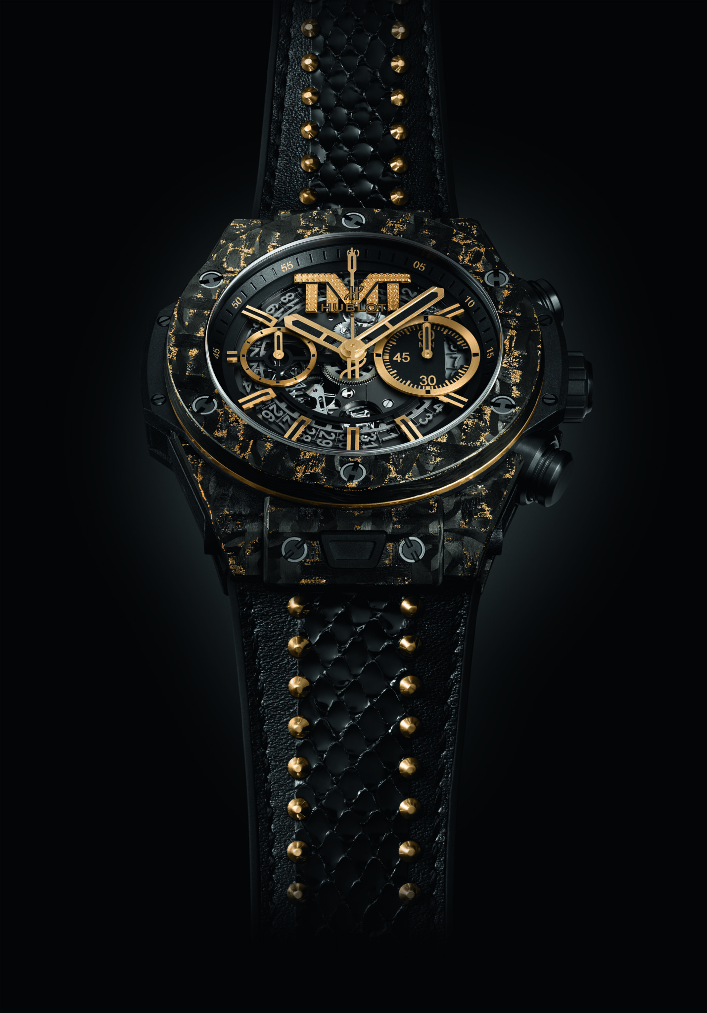 Un palmarès inégalé, immortalisé dans le temps sous les traits de la Big Bang Unico TMT. TMT pour « The Money Team », 3 lettres pour un logo puissant et ultra visible, celui de la marque lifestyle de Floyd Mayweather.
