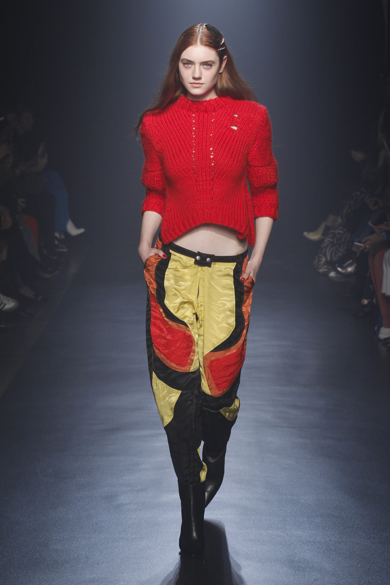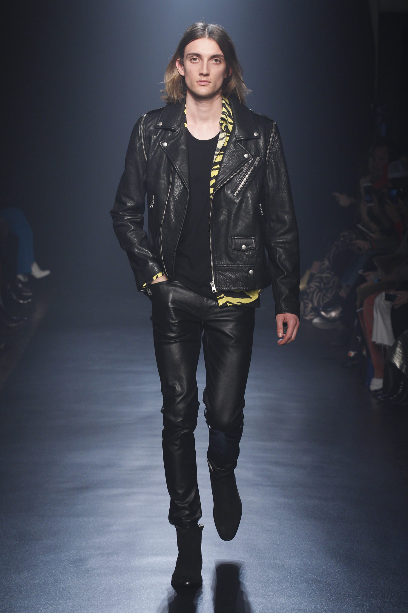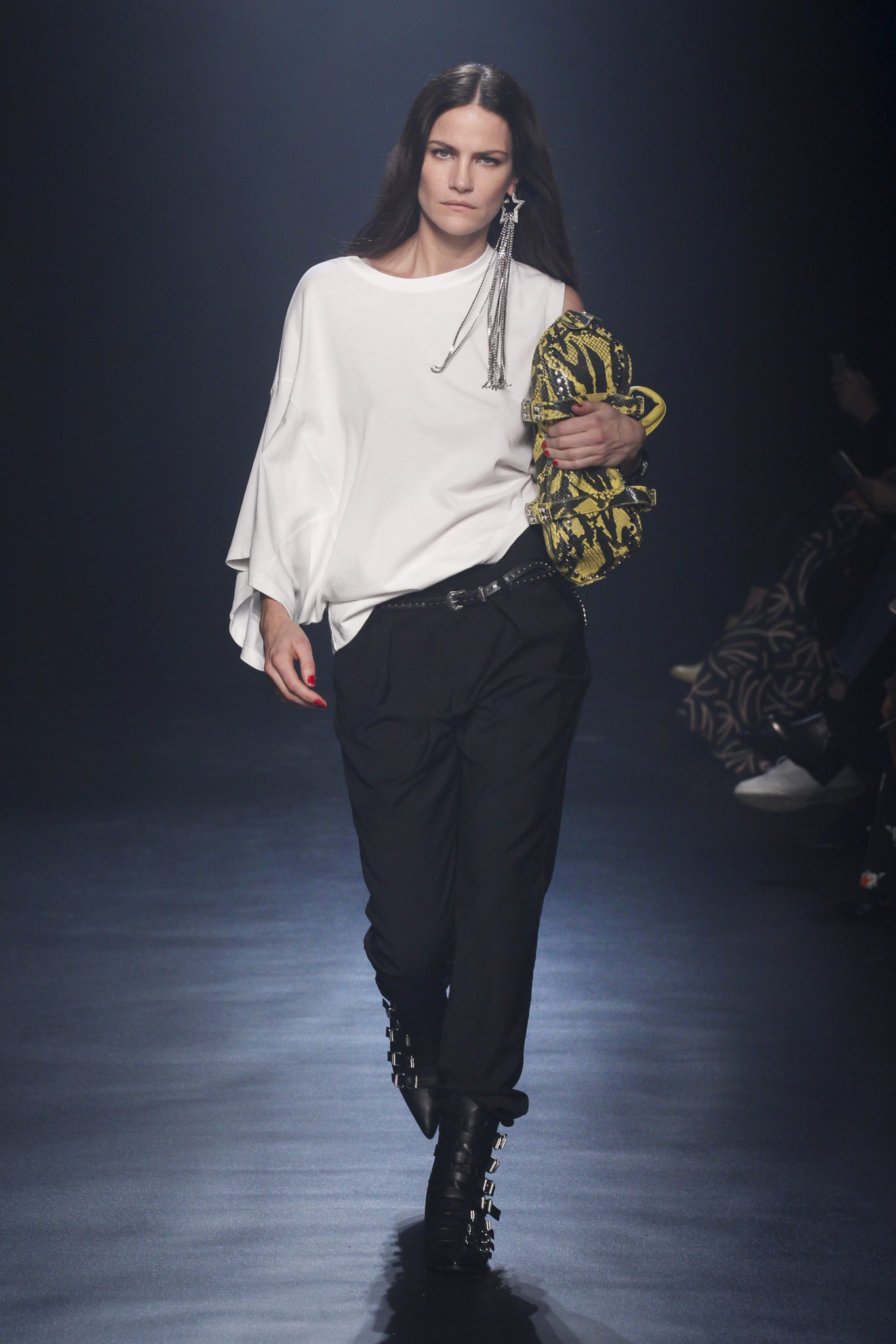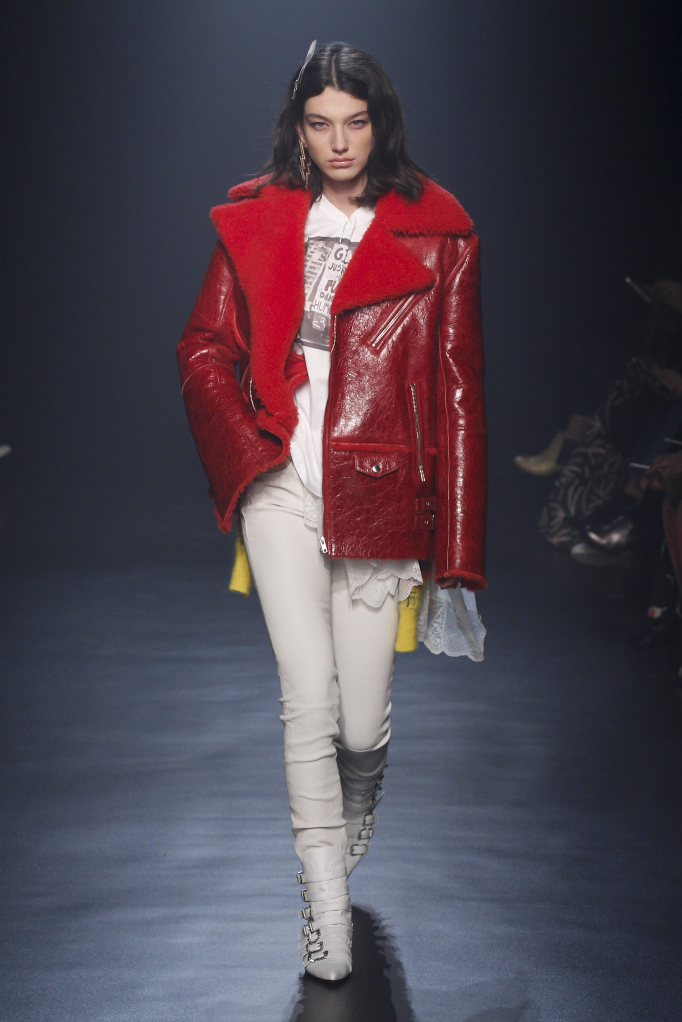 Plus que jamais cette saison, la fille Zadig transforme les contraires en un style, une signature de marque. Elle réchauffe une délicate tunique en dentelle ou un haut en tulle à pois avec une veste de motard en cuir noir cloutée si petite qu’elle semble l’avoir portée depuis son adolescence. Elle a une affection durable pour ses pièces, les gardant comme ses pulls en mohair, qui sont rapiécés et raccommodés ou agrafés, car ils semblent vraiment avoir traversé beaucoup de choses. Déconstruire plus que reconstruire. Son tee-shirt blanc à la main est un fil conducteur dans sa garde-robe. Tout comme ceux qui brandissent des slogans de femmes du monde entier. « L’amour va s’élever au-dessus de tout » Elle ne se préoccupe pas du genre et fait de l’unisexe son propre style. Elle a coupé les manches de la veste de son petit ami et l’a enfilée par-dessus une robe. Elle a également pincé son costume trois pièces Prince of Wales, sa veste de motard à carreaux retournée et son manteau oversize. Elle habille sa silhouette longue en pantalon de motard en soie ou en cuir noir avec surpiqûres matelassées, associé à un blouson bomber raccourci au maximum. D’un claquement de doigts, elle passe d’une combinaison de biker en cuir ceinturée à une robe de velours multicolore. Un pull biker est redessiné avec du diamant. Une parka militaire est réinterprétée en cuir verni … Embrassant une foule d’opposés, un manifeste qui martèle le trottoir dans des bottes confectionnées en peau de serpent jaune acide ou en cuir blanc peint. Dans ses bras, elle agrippe son sac Rider comme un coussin moelleux, bourré comme le vieux Chesterfield dans un studio d’enregistrement. Voici à quoi ressemble la fille Zadig : forte et tendre, indépendante, une rockeuse au vrai sens du terme, sans doute : « Rien n’est réel sauf la fille »
