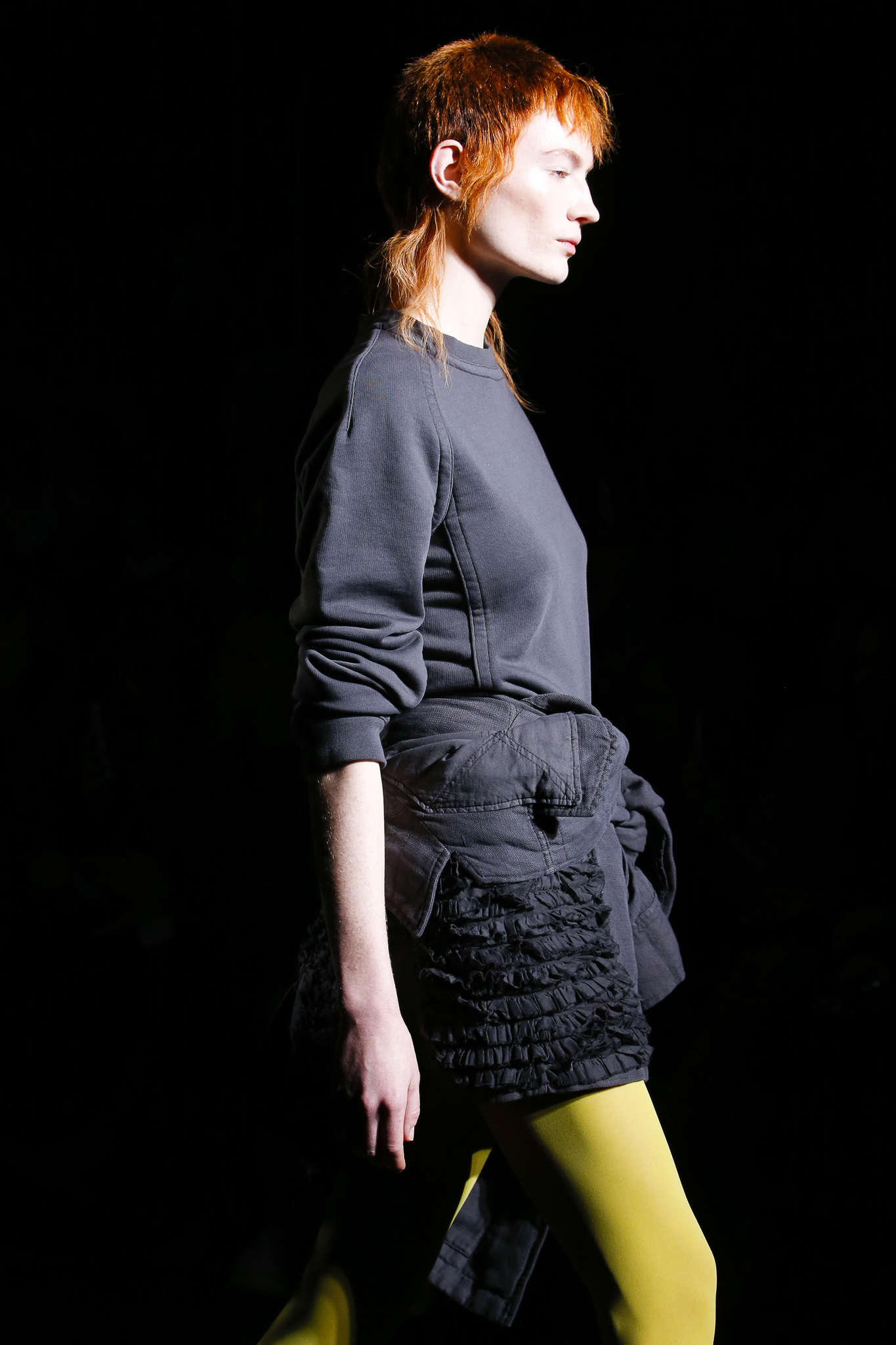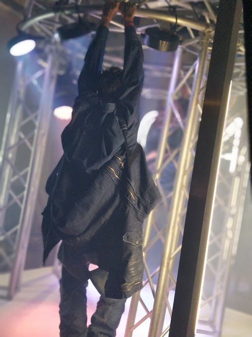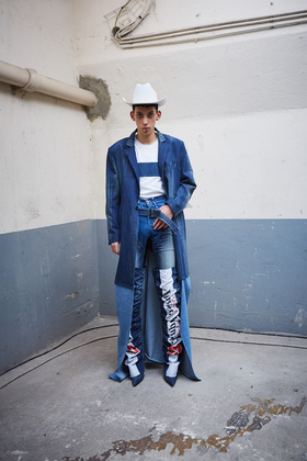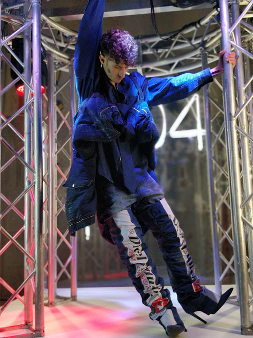 Près de la Sorbonne, une présentation qui n’avait rien d’académique a pris place. Normal, Shayne Olivier incarne l’esprit américain : il n’y a qu’à regarder son look de Cow-Boy. Pour cette collaboration avec Diesel (Red tag project) , Shayne Olivier a recrée toute l’énergie des soirées New-Yorkaises de Hood By the air à Paris. Dans un décor digne d’un concert de Spears à Vegas c’est encore une fois la pop culture qui vient à l’esprit. ( Spears et Timberlake étincelants de Jeans sur le tapis des Grammy 2001). Soit des références pas très « Café de Flore ». Pourtant Paris c’est aussi ce brin underground : les soirées de sous-sol un peu crades. Ces soirées du coté « obscur« .