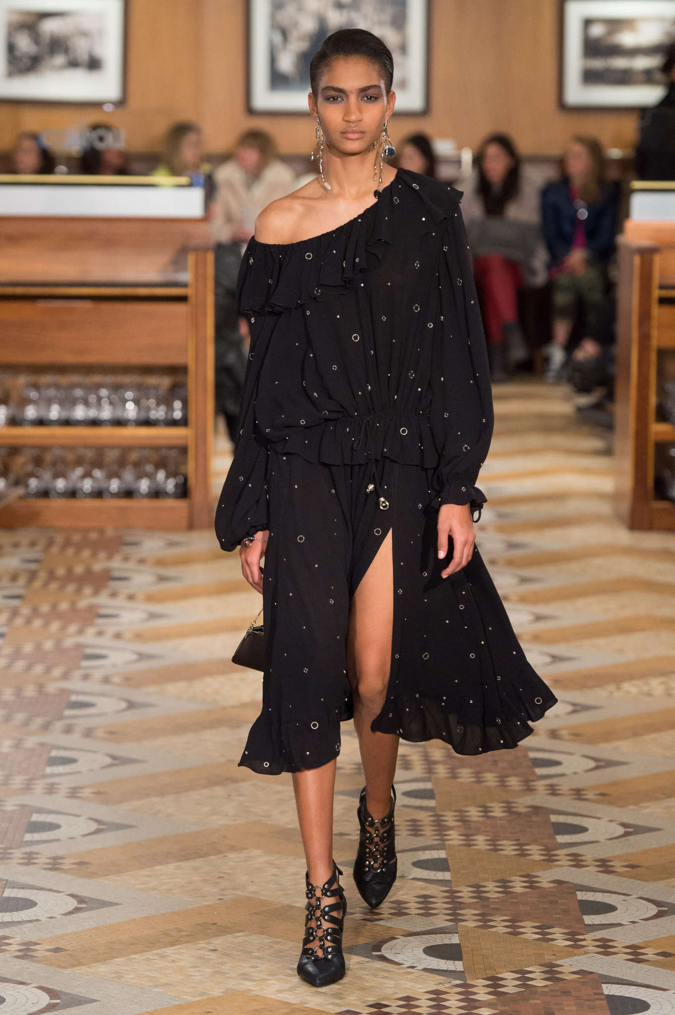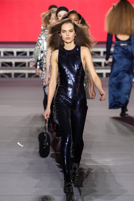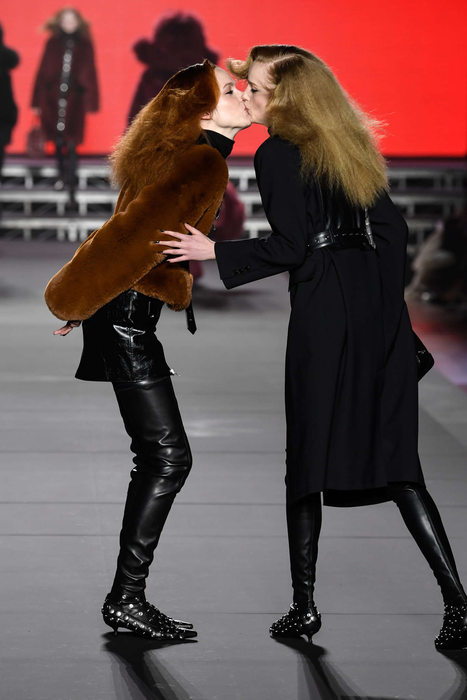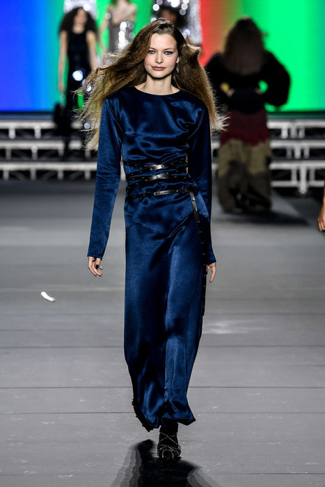 Dans la liste des Parisiennes, la femme Sonia Rykiel, toutes de rayures vêtue, arrive en haut de la liste. Julie De Libran, offre un défilé qui honore la philosophie Rykiel, soit la créativité dans une atmosphère emprunte de légèreté. Les filles souriaient : arrêtons de nous confondre en snobisme. Fini le mythe de la parisienne qui tire la gueule et fume ses cigarettes en trench coat à la sortie de la Sorbonne. Même si c’est cette image de la parisienne qui s’exporte et rapporte. Julie De Libran livre sa propre expression de ce qu’est Sonia Rykiel, elle, une française qui a grandi à LA et appris la mode en Italie.