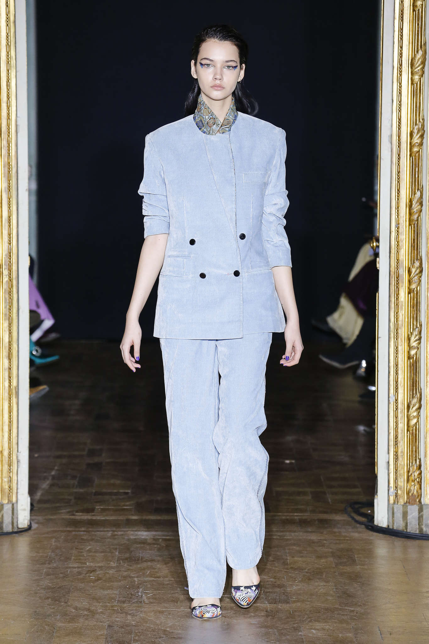 Relire 300 fois « la collection révèle tout le savoir-faire d’une époque qui s’échappe », le designer « ose des volumes audacieux », ou « les palettes fluo rencontreront sans doute un large succès auprès des milléniales ». Un risque. Un coup d’oeil dans le rétroviseur qui s’étend.