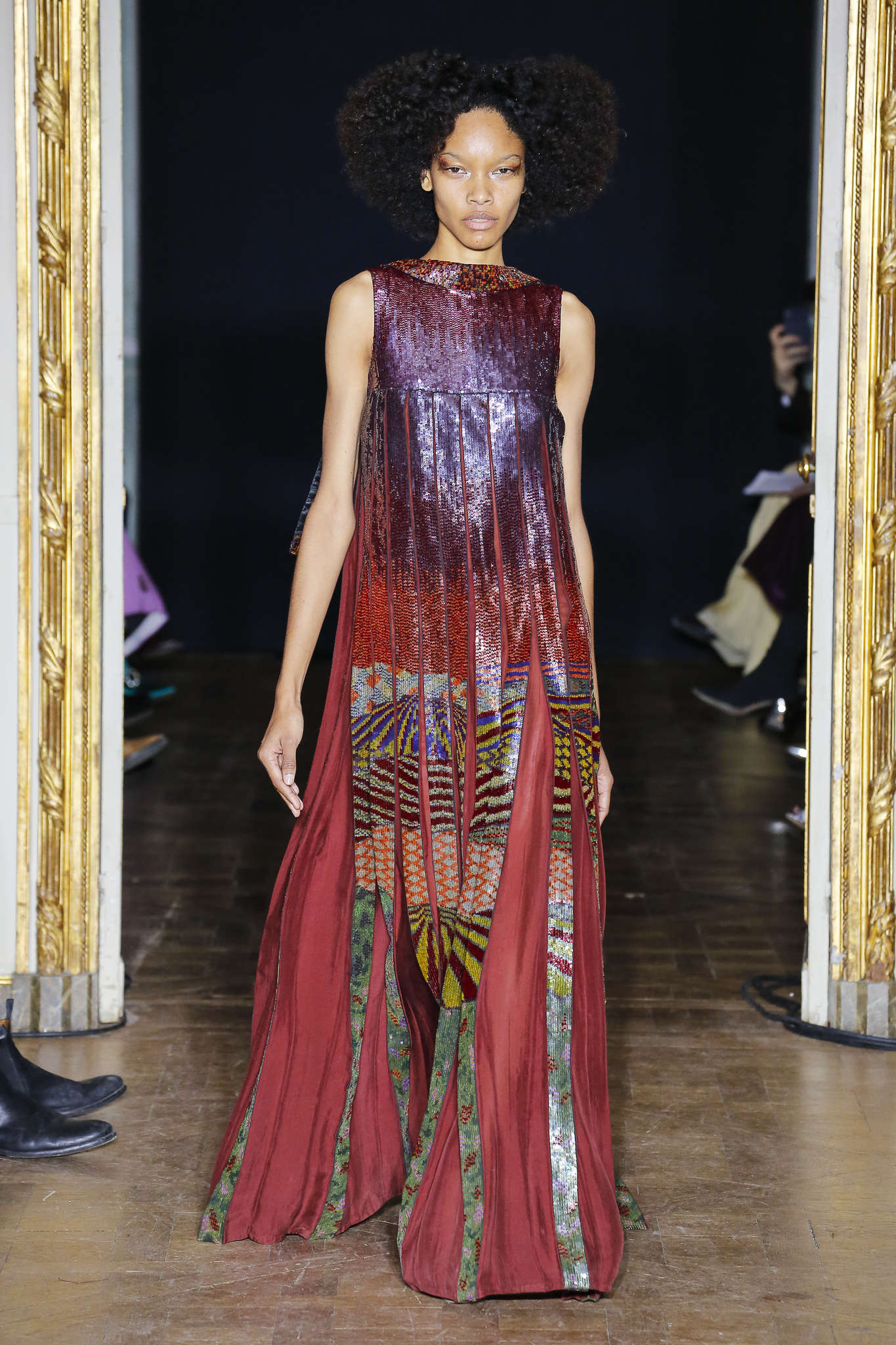 Pour évoquer les défilés de cette journée; certains mots clés vont tombés. Parler de Rahul Mishra, c’est parler de broderies et de mode engagée. Hermès- le cuir, Haider Ackermann– les drapés. Pour Elie Saab : robes de tapis rouge, légèreté pailletée tandis qu’il faudra ranger Vivienne Westwood du côté d’une mode extravagante, punk, audacieuse. Insoumise sonne peut-être mieux.