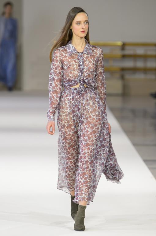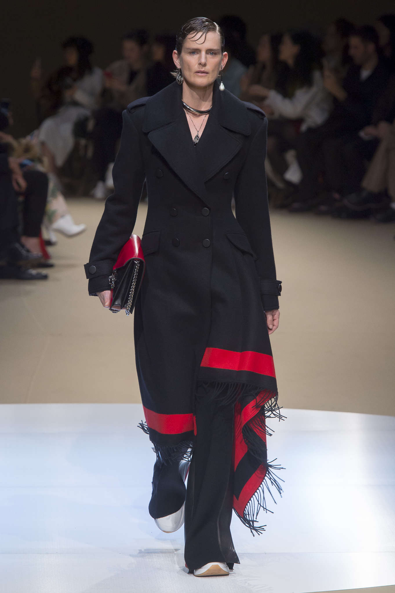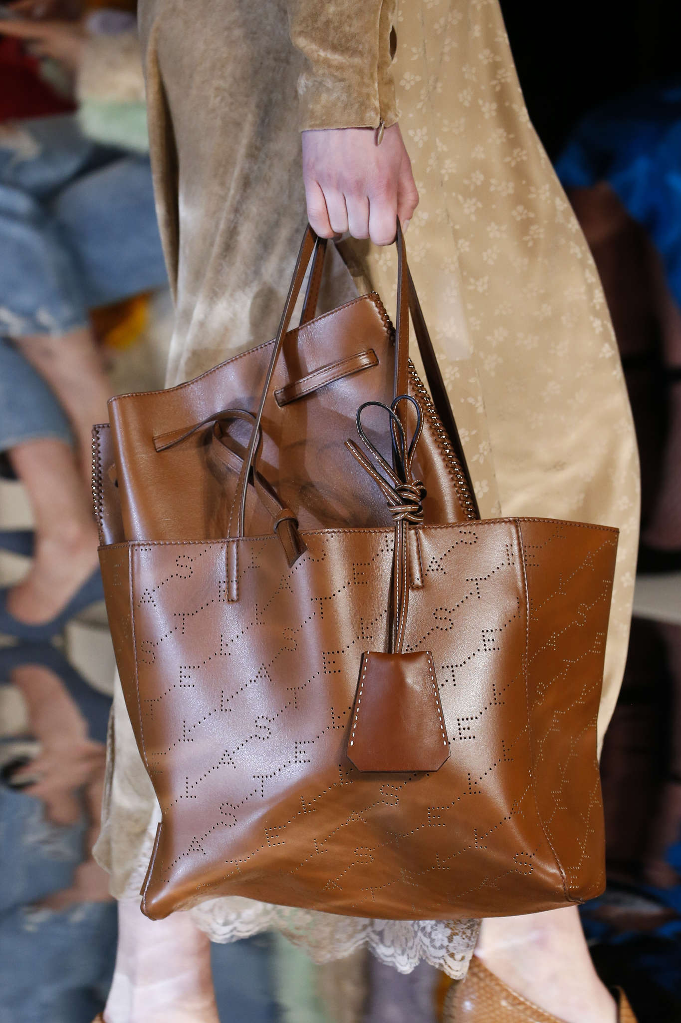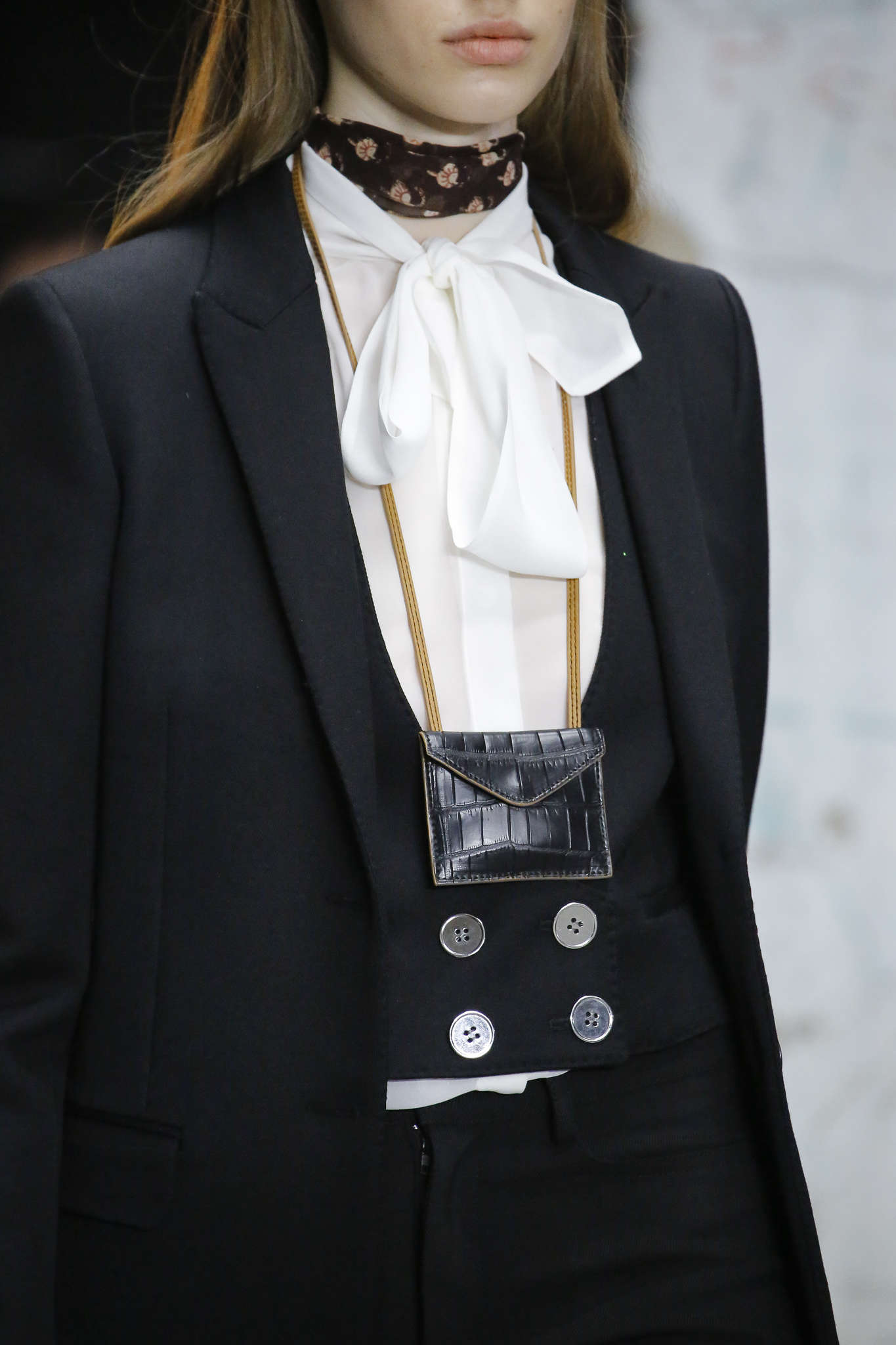 Costumes, impairs, quelques dentelles et des sacs « double » pour ramasser les liasses de billets chez Stella Mc Cartney. Pour la première fois des hommes sont présents sur le podium, et s’habillent dans la continuité des femmes : soit rien de trop discret.