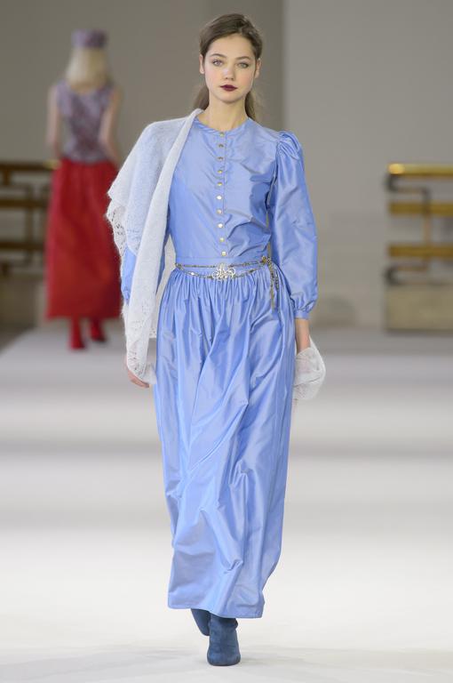 On se sert la taille. Une collection ou look des économistes de Wall Street a fini par se confondre avec les corps : les restrictions les travaillent, les serrent. Résultat les vêtements sont encore plus rigides et droits qu’un plan Quinquennales. Des costumes, des chemises de worker : un thème exploré par Alexander McQueen dès la crise de 2007. Dans cette crise il existe encore des robes opulentes -de celles portées par Mme Wall Street aux galas d’entreprises. Dans ce système, Sarah Burton montre que les femmes peuvent jouer tous les rôles. Les femmes s’écrivent et passent des lieux ou l’économie se décide aux lieux ou la richesse s’exhibe sous les projecteurs de la bonne conscience. La robe de gala de charité : toute une économie de l’opulence ?