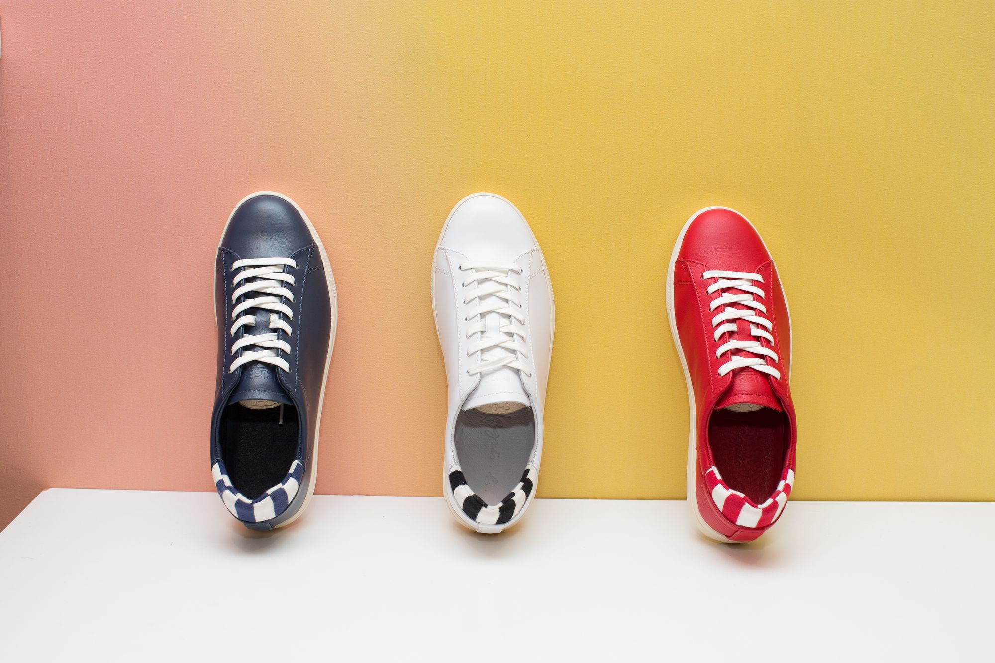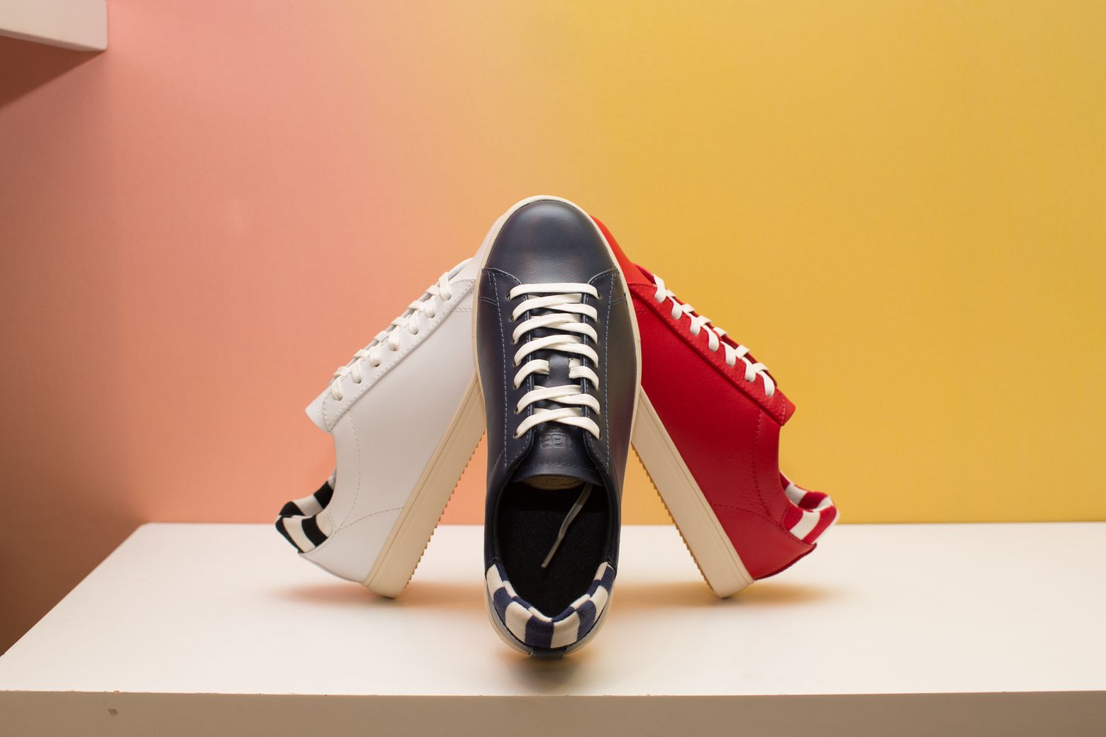 De Paris à Los Angeles, agnès b. x Clae s’associent le temps d’une collaboration reposant sur des valeurs et exigences communes de qualité, style et savoir faire. Les deux maisons nous dévoilent des coloris et matières exclusifs sur le modèle phare de la marque Clae, la Bradley. Une sneaker naturellementélégante, versatile et confortable qui convient aussi bien à l’homme et à la femme. Conçu à partir d’un somptueux cuir pleine fleur donnant un aspect légèrement satiné, la collaboration a été pensée en trois coloris qui n’ont pas été choisis par hasard, le bleu, le blanc et le rouge.
