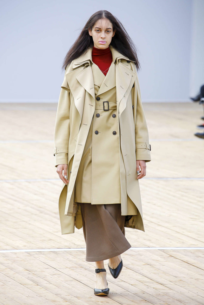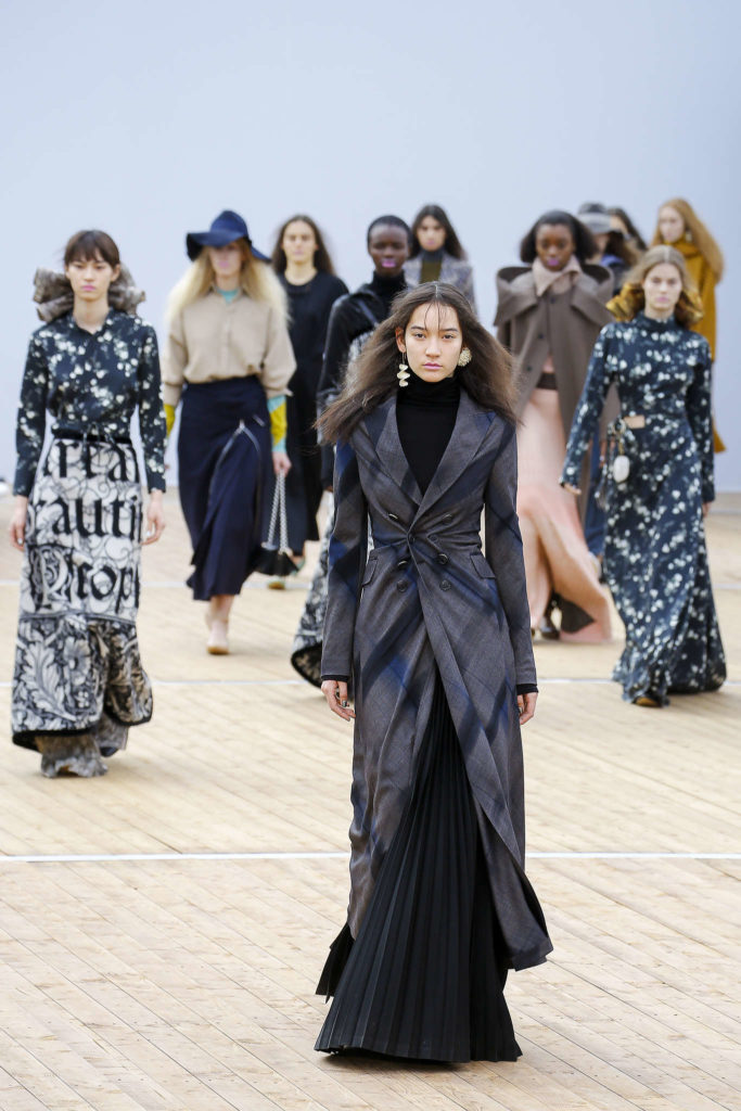 Depuis 10 ans, Hidenori Kumakiri défile à Tokyo: alors Paris, juste après Chanel, alors que les fashionista ramassent les feuilles du Grand Palais, c’est un honneur. Une collectionna style fin XIXiéme, qui travaille des intemporels de la garde-robes. Des vestes et manteaux inventés par des hommes pour des hommes: le duffle coat, le perfecto ou le trench. Chez Beautiful People, ils sont portés par des femmes, avec élégance. Loin du déguisement, les pièces masculines sont fluides et se marient aux robes et jupes longues. Comme pour montrer que c’est dans ces classes supérieures que la question du genre a été le plus rapidement posée : madame s’est vite emparée du duffle coat de monsieur, à la nuit tombé pour « promener le chien », sans que cela ne dérange personne ?