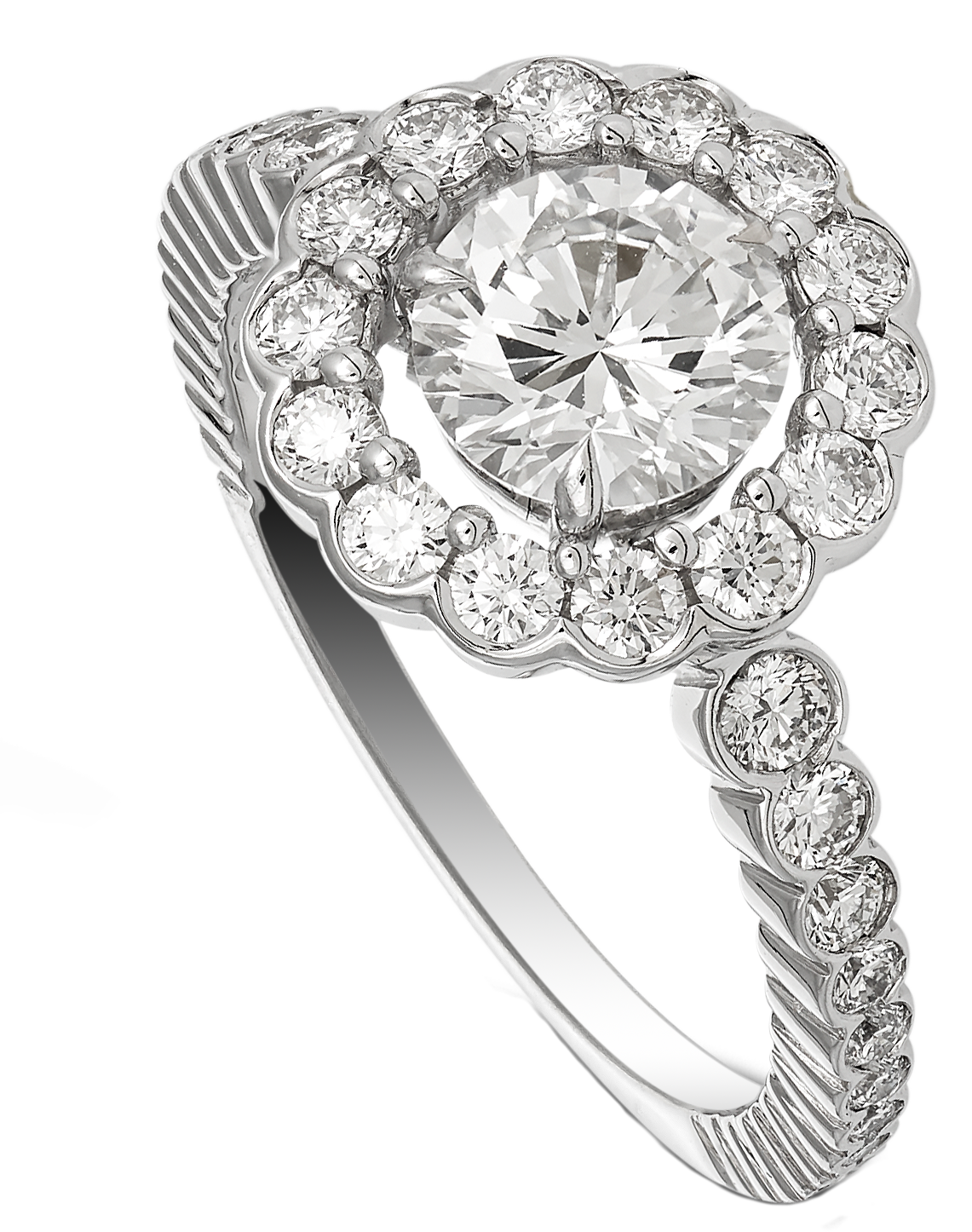 Pièce phare de la collection, le solitaire Elisabeth s’orne d’un diamant de 0.5cts, 0.7cts ou 0.9cts. A partir de €7 000.