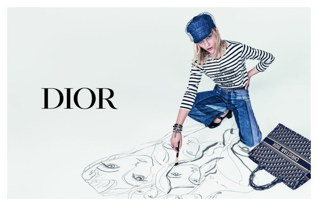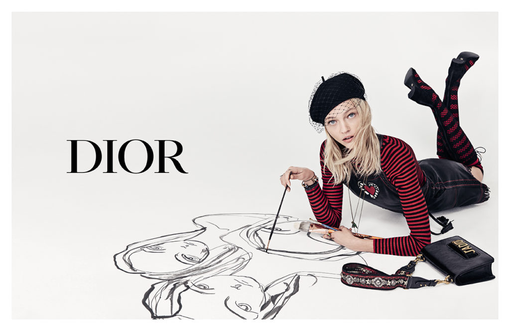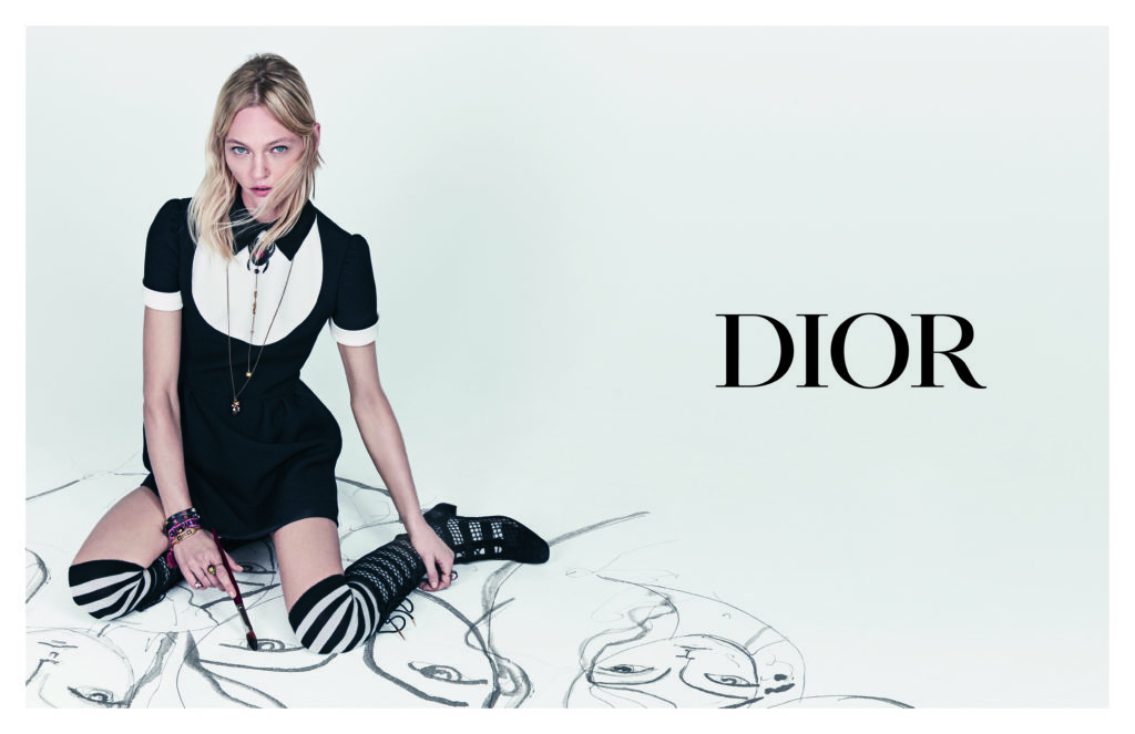 VISAGE DE LA CAMPAGNE PRET-A-PORTER PRINTEMPS-ÉTE 2018, SASHA PIVOVAROVA EST AUSSI UNE ARTISTE. SUR UN AIR DE MUSIQUE SIXTIES, VêTUE DES CREATIONS DE MARIA GRAZIA CHIURI, ELLE PEINT SES PORTRAITS DE FEMMES COMME DES NOTES QUI RYTHMERAIENT UNE PARTITION.