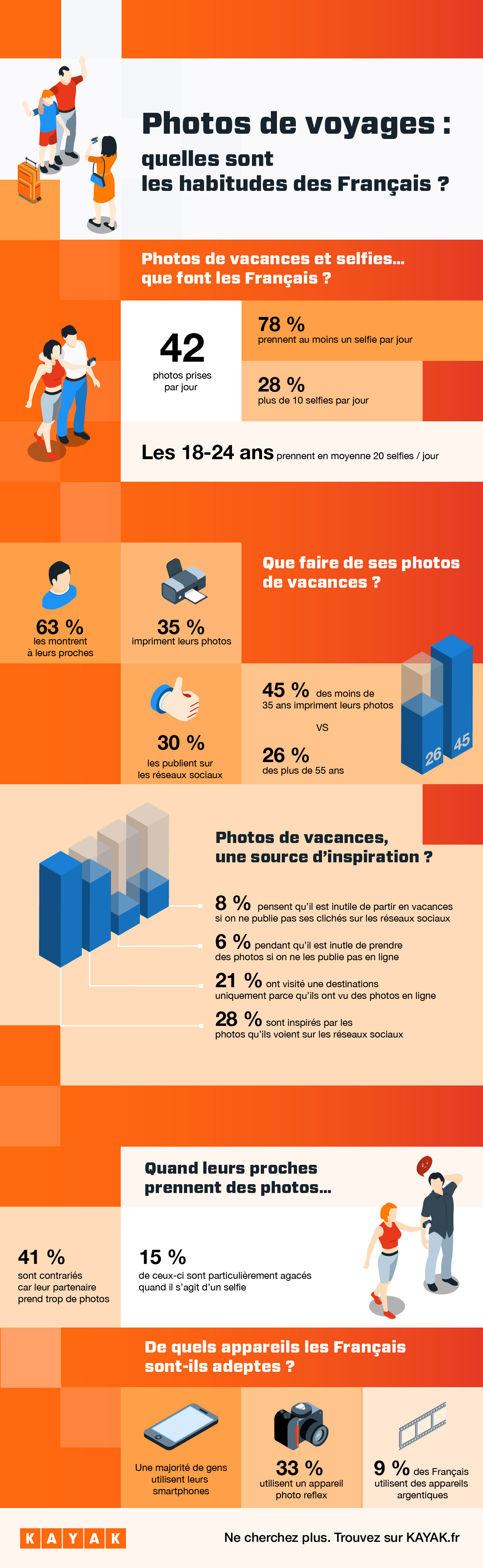 - Les Français prennent en moyenne 42 photos par jour pendant leurs vacances
