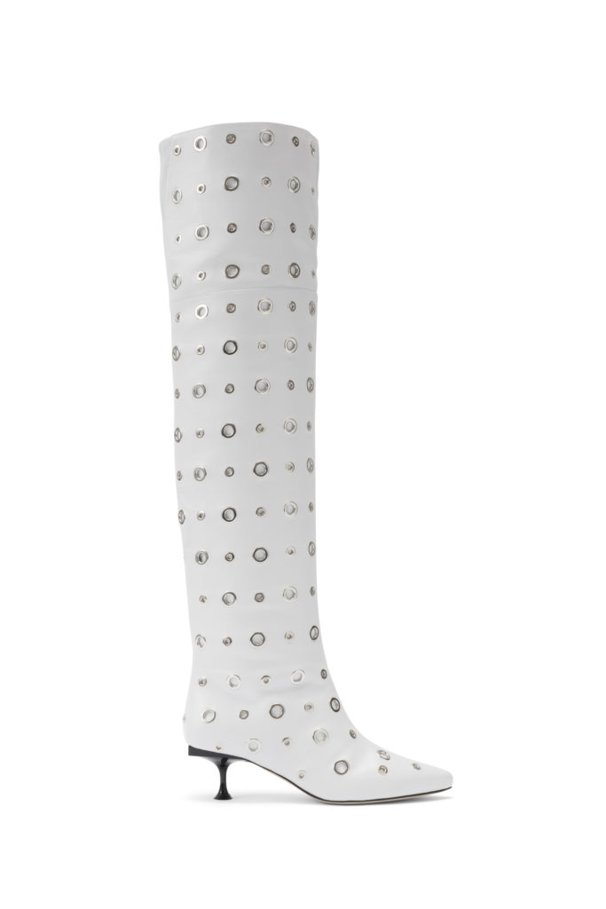 En termes de forme, sr MILANO a tout d’une icône. Loin d’une chaussure classique, sa silhouette évoque une sandale issue des collections Sergio Rossi des années 1990, avec une ligne plutôt austère et structurée. Sa hauteur est réduite, pour une utilisation plus moderne et fonctionnelle. Sa forme est plus lisse et plus réaliste. Le talon carré devient l’élément central, le dénominateur commun d’une collection tout entière. Quant à l’esthétisme, sr MILANO rend hommage à la ville de Milan et au glamour des Milanaises, sophistiquées, subtiles, mais qu’on ne peut s’empêcher de regarder. La frontière entre l’aspect fonctionnel et le côté plaisant s’efface, et la bourgeoisie côtoie la sédition. La sr MILANO est une invitation à s’affranchir des règles et à adopter une idée plus légère et plus féminine de la femme. Escarpins, bottes, slingbacks, bottines, sabots… Les mêmes signes distinctifs se retrouvent ici: pointe carrée avec plaque en métal effet miroir, et talons ventosa qui définissent la structure, estampillant littéralement le sol à chaque pas. Bouts carrés, œillets en acier et lacets asymétriques confèrent une apparence architecturale à certains modèles. Le cuir est revêtu de PVC en rouge flamme monochrome, blanc craie ou gris fumé. Des chaussettes stretch argentées, noires ou en sequin mélangent l’activewear avec la couture. Chaque création et chaque détail possède l’ADN de Sergio Rossi : le culte de l’artisanat, la dévotion envers les traditions ainsi qu’une obsession pour le passé… À la seule condition qu’il ouvre la porte sur le présent et l’avenir. Tout se passe au Teatro Gerolamo, joyau caché milanais construit en 1868, également appelé Piccola Scala. Une explosion minérale de géodes colorées crée une atmosphère particulière, et des vidéos deviennent le décor digital d’un artisanat renouvelé. La Maison se prépare pour une année 2018 extraordinaire avec l’inauguration de 10 nouveaux magasins individuels, ouvrant un nouveau chapitre de son histoire éternelle. sr Milano est disponible en précommande exclusivement sur sergiorossi.com.