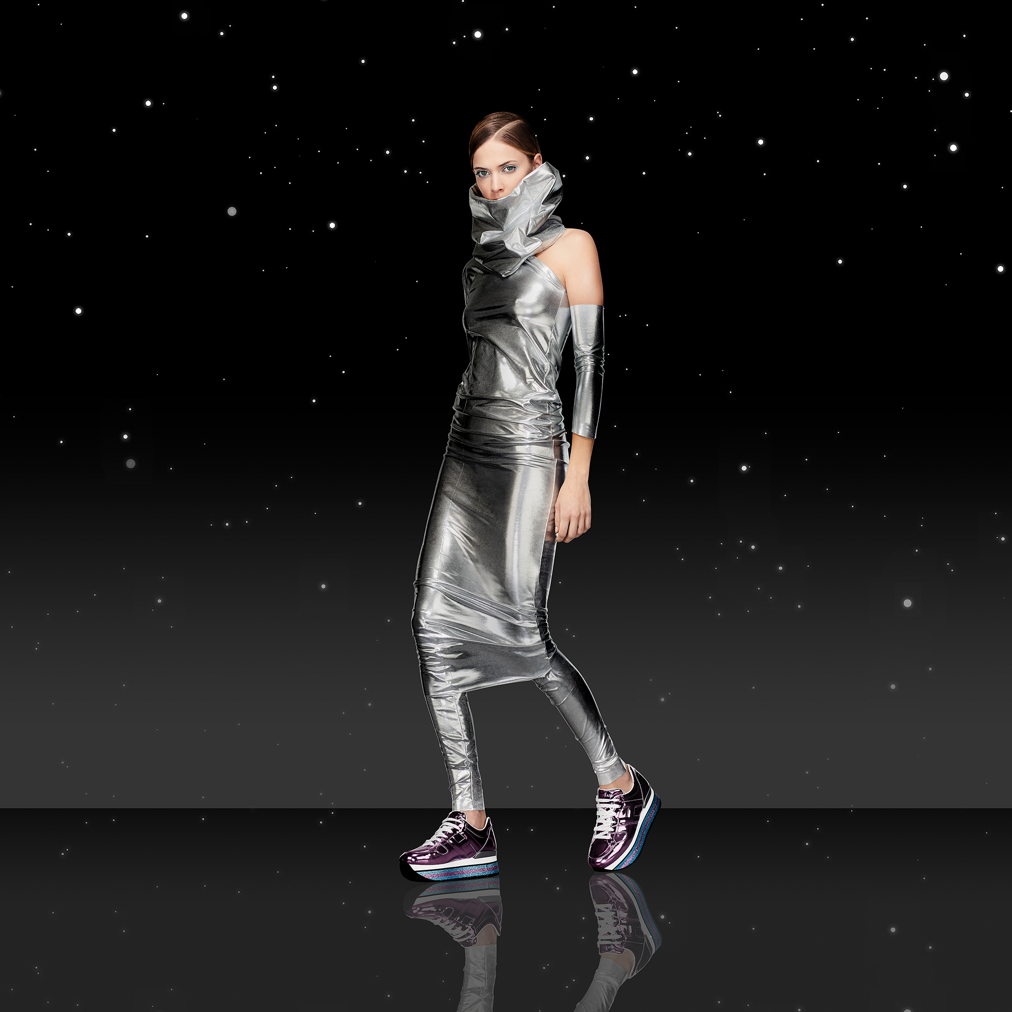 TENEZ-VOUS PRÊTS POUR UN VOYAGE À LA DÉCOUVERTE DE GALAXIES INEXPLORÉES. PRÉPAREZ-VOUS À ENTRER DANS LE MONDE FUTURISTE DES NOUVELLES CRÉATIONS D’HOGAN, OÙ PAILLETTES, SCINTILLEMENT ET IRIDESCENCE VONT ILLUMINER VOS PAS.