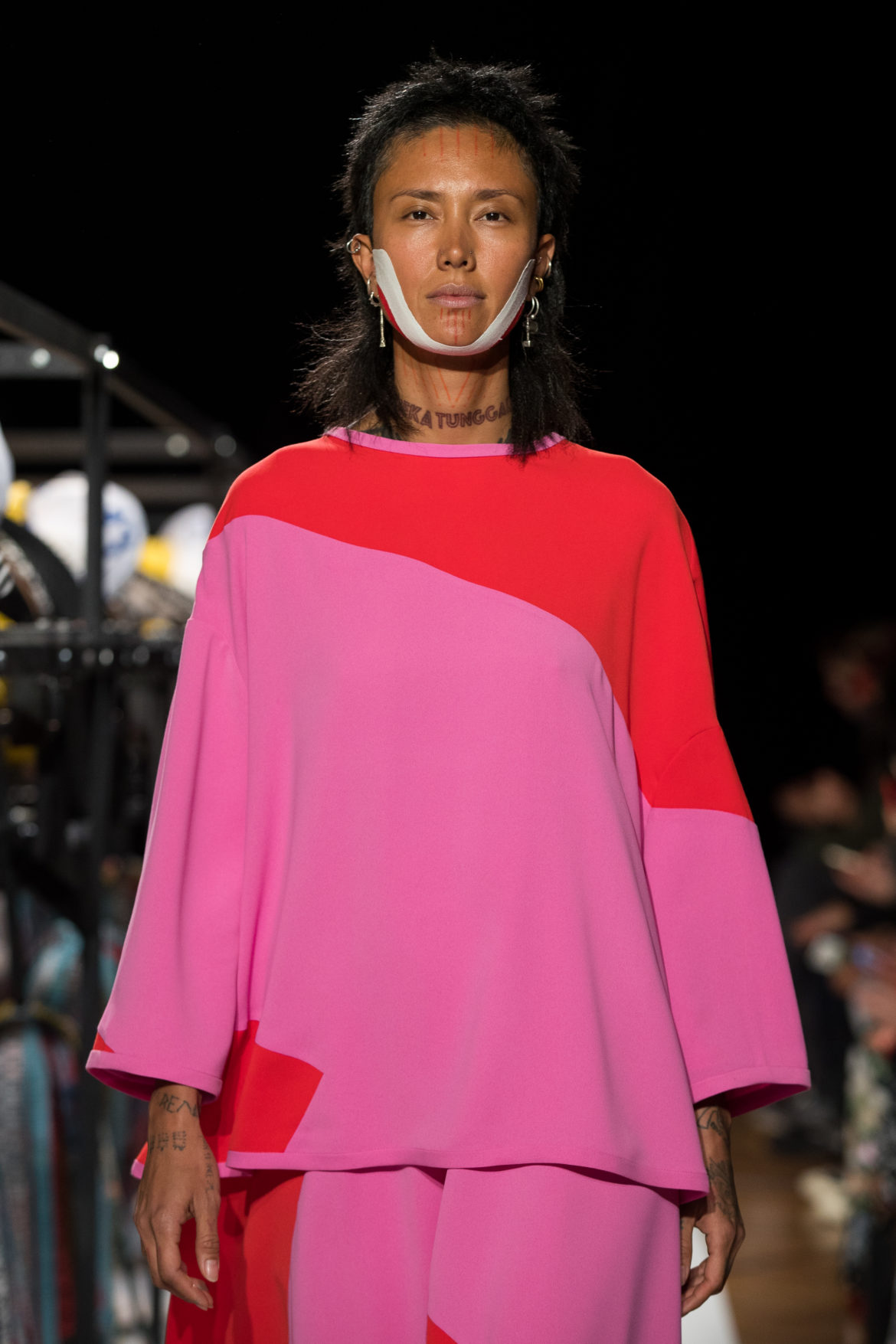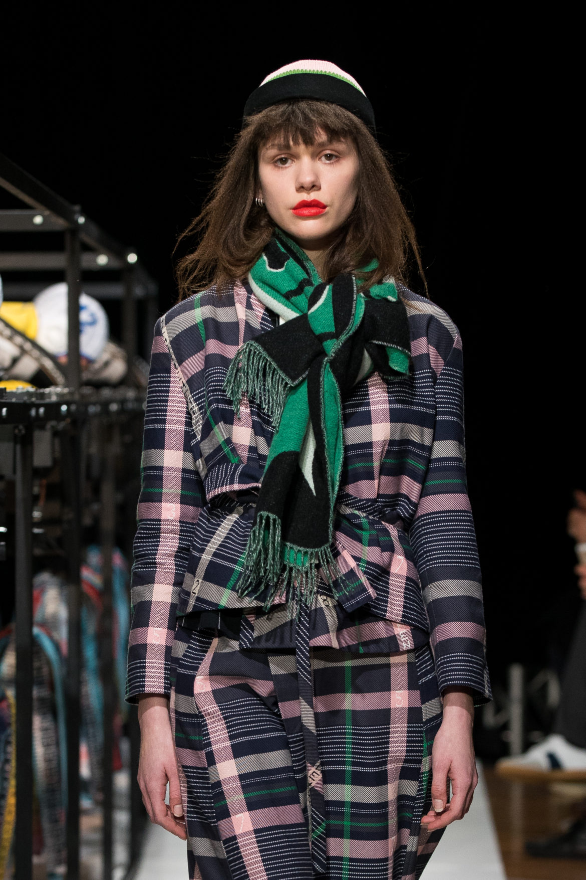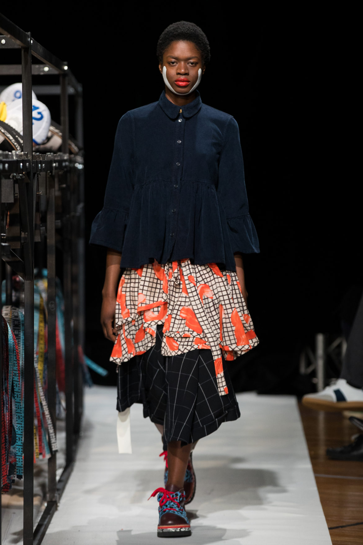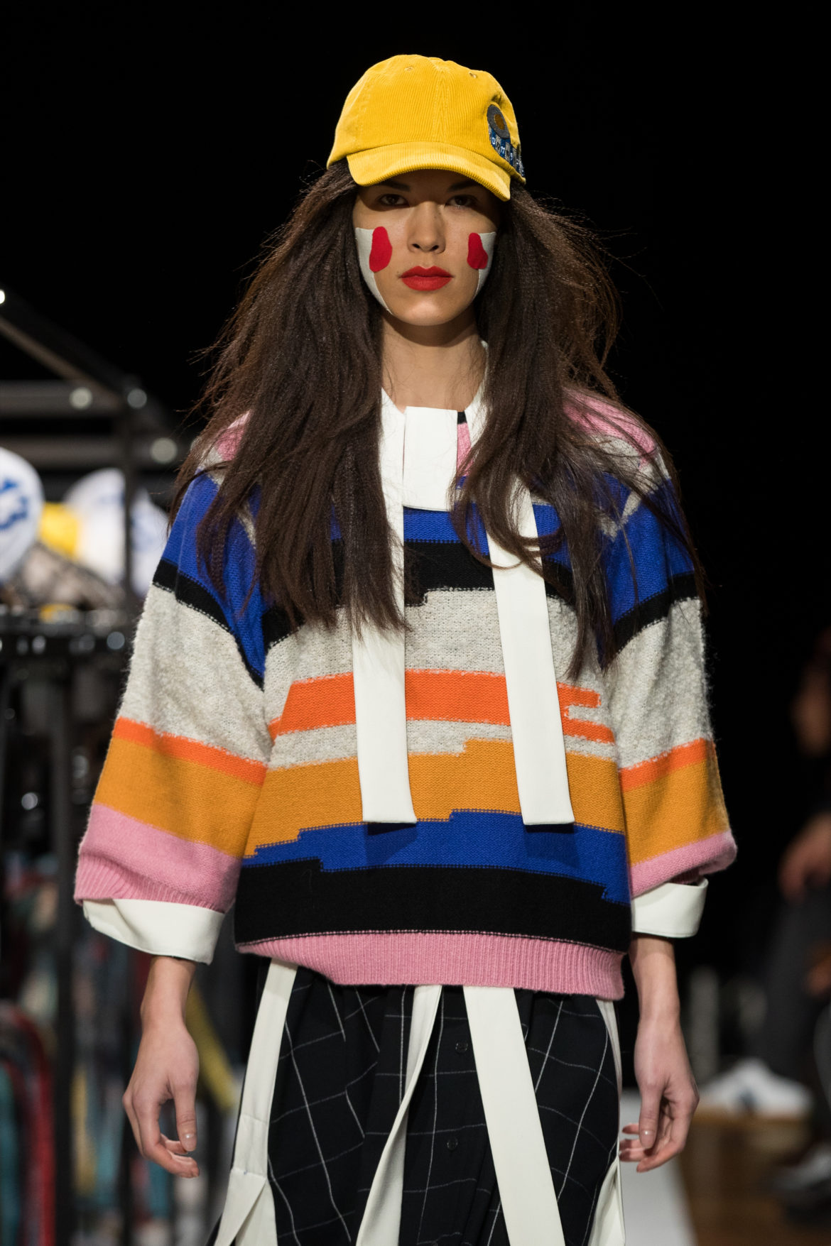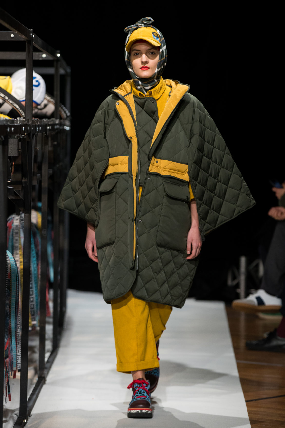 The Man Who Measures the Clouds(L’homme qui mesure les nuages)isan art piece by Jan Fabre that Vibskovcame across last summer during his travels inKanasawa,Japan. Thepoetic gesture of measuring something unmeasurable inspired him and the teamfor theA/W18-collection. To find sense where there is no senseina culture where we are obsessed about numbers,we seek to measure, analyze, compare and categorize. Peopleincreasingly depend on numbers to know how theyare doing for virtually everything.We measure ourselves, size, height, distance, amount, time, intelligence, popularity and even feelings.If you cannumber it, you cancontrol it. We want to pause for a momenttoquestion this number maniaandto know what is going on around us, how our actions impact others, how the environment is changing and how wearechanging.If we want to change what wecare about, shouldn’t we change what we measure?The collection reflects the theme in various ways; prints of littleworking peopletrying to analyzetheir surroundings, oversized ribbing on knitwear that seems like it camefrom another measuring system, free floating paint strokes that don’t want to fit the grid in thebackground, prolonged buttonstands andsleeve slitsand weave onsuiting that shows measure tapes woven into the that garments. Some of the garments are developed from the starting point where pieces from earlier collection were sewn together in new scales and original measurements were swapped around. Fifteen performers inbrightyellow working outfits are controlling manually themechanicalmeasuringmopsthat analyze the bodies lying underneath.Through rhythm,sound, body movement and pulse the installation emphasizes the inspiration of the collection. It is avisualizationon how people become the machine controlled by measurements.