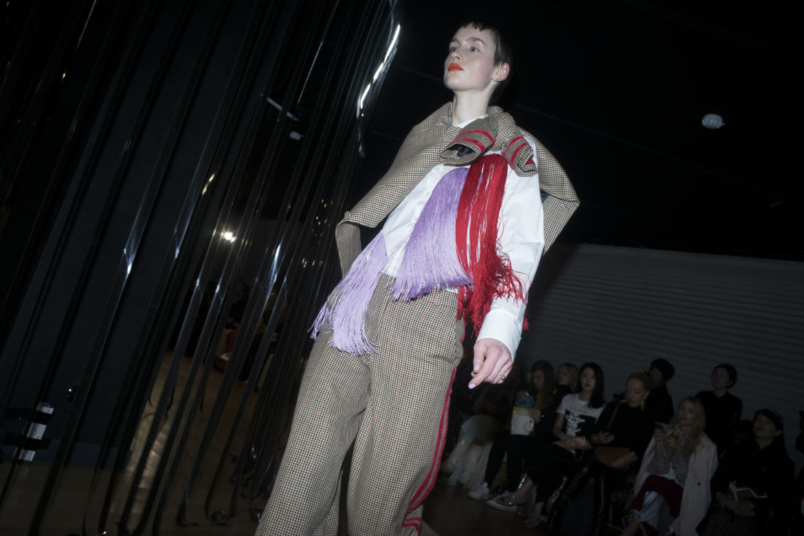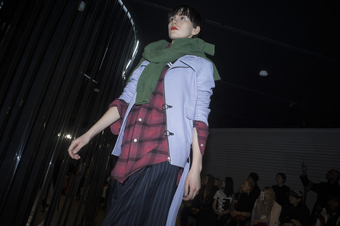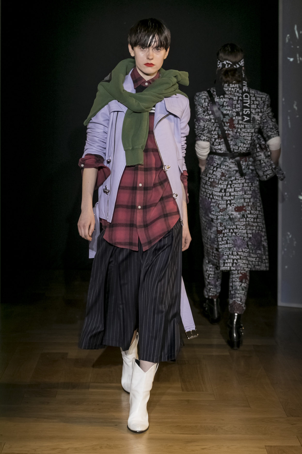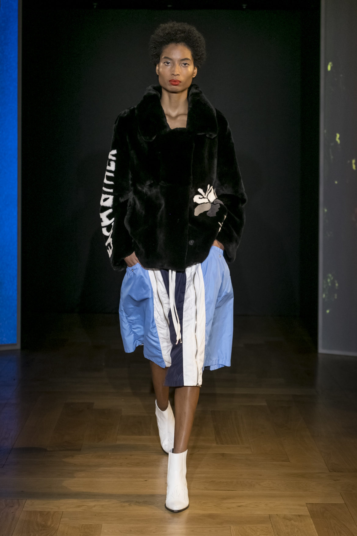 All collaborations present the Each x Other brand message of unity, love and strength. The collection includes statement goat hair jackets in strong pastels, oral prints and colour fades. Navy blue denim collars, sailor tops, dresses and Each x Other DNA preppy mariner stripes meet military twill-wool jackets with contrasting patches and pockets, pilot bombers and duffel jackets.
