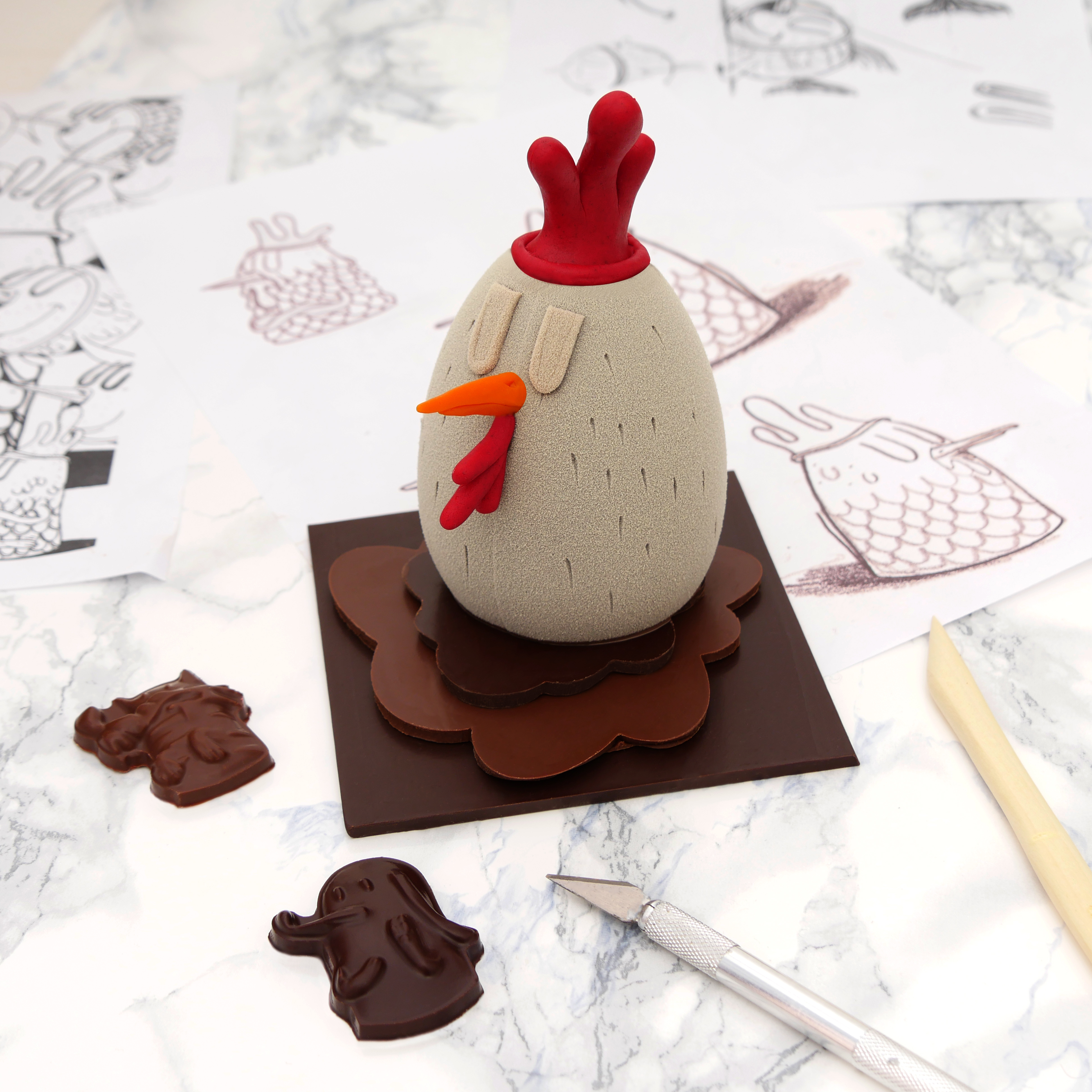 Pour changer des traditionnels œufs et autres cloches, La Grande Epicerie de Paris propose en exclusivité les sucettes, moulages et tablettes arty de la maison Le Lautrec réalisés avec le peintre et illustrateur Alëxone Dizac. Pingouin, poule, loup ou poisson, les personnages emblématiques du joyeux bestiaire de l’artiste prennent vie et saveur de chocolat.