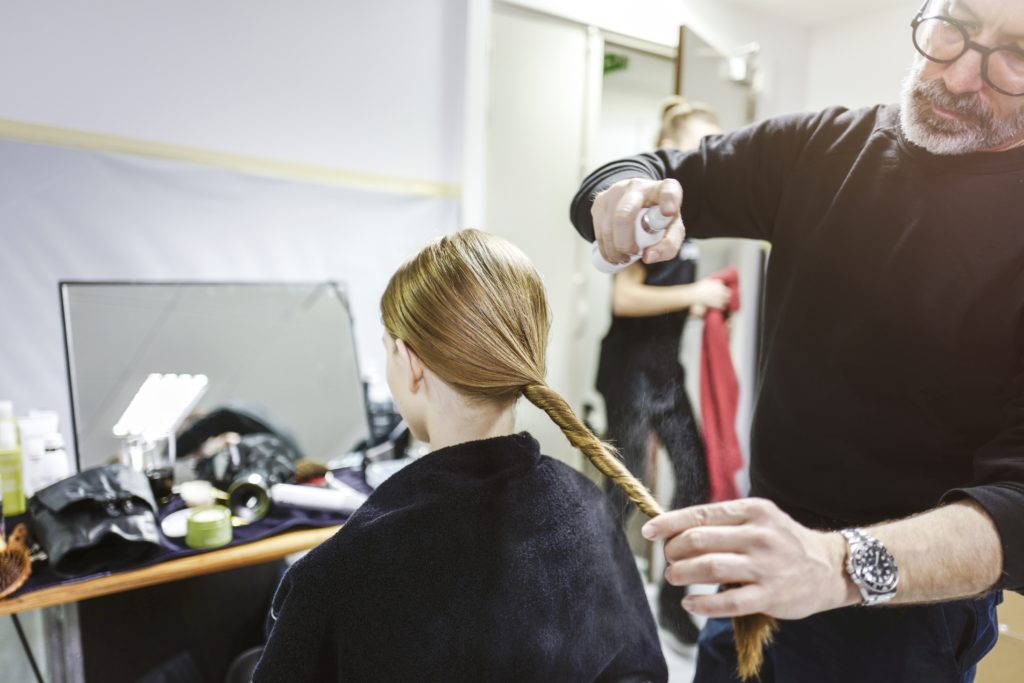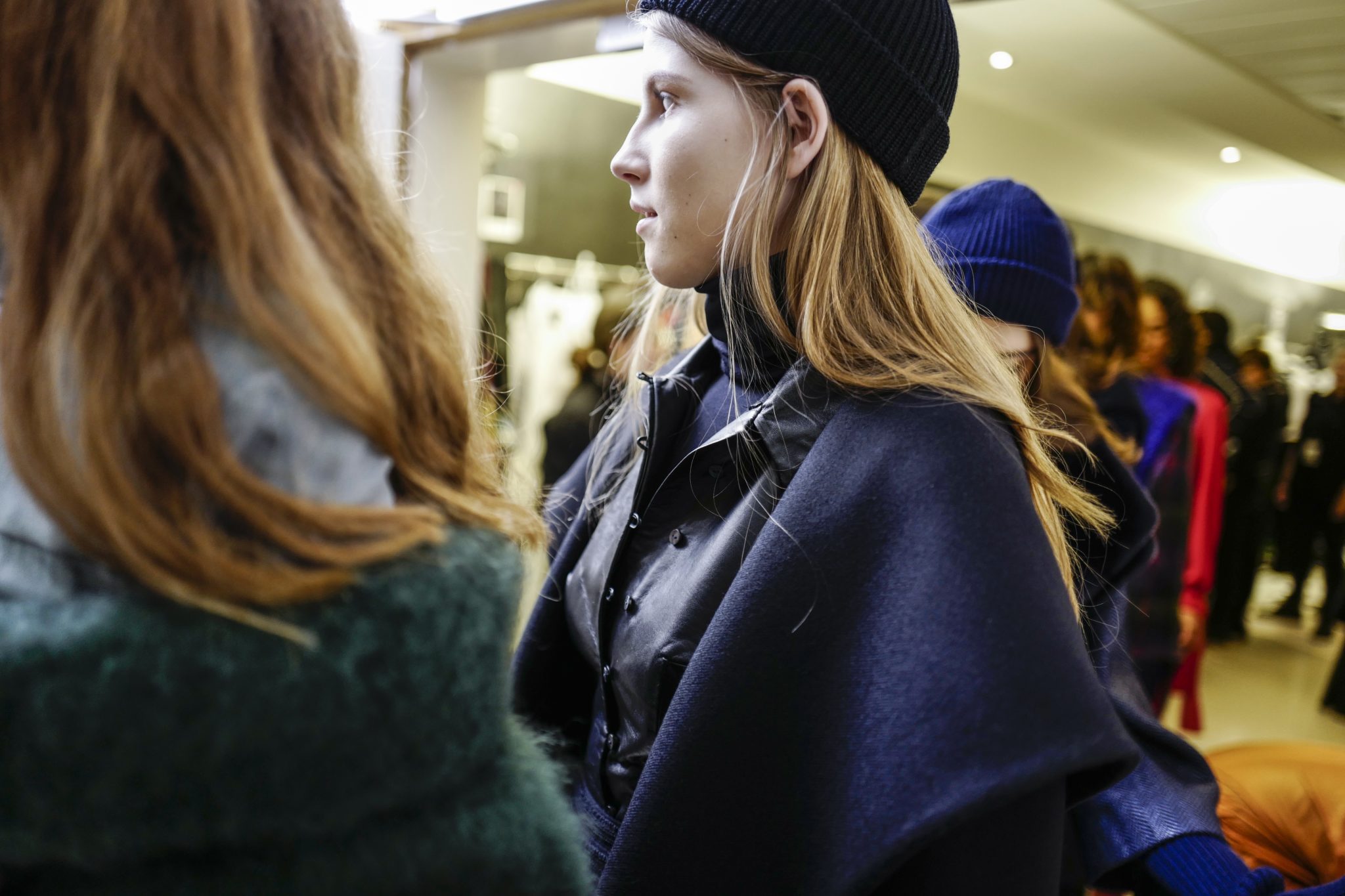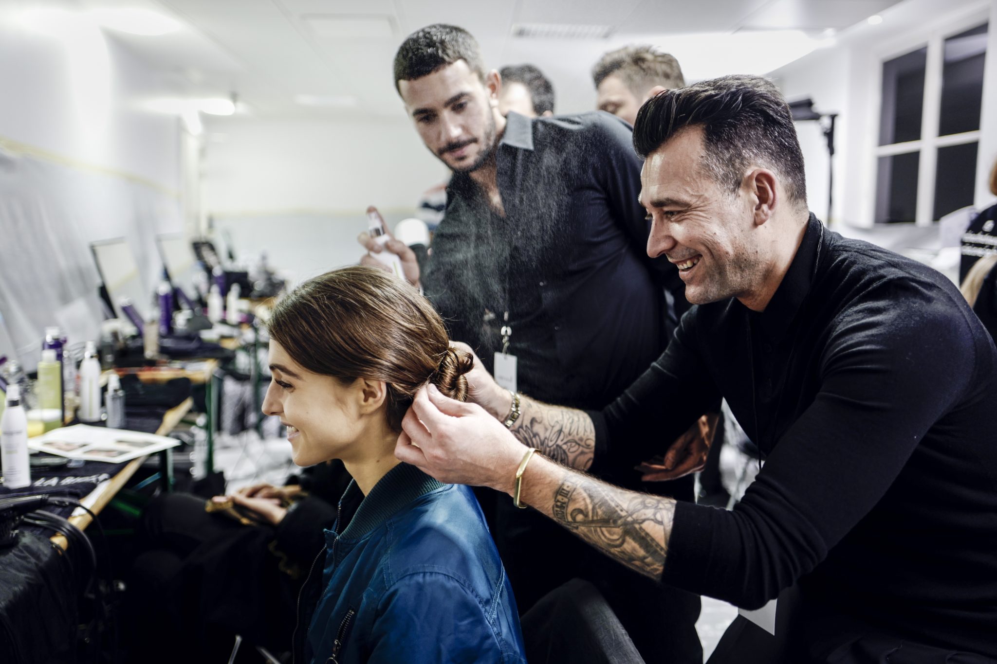 La mise en beauté des cheveux sous la direction d’Alexander Dinter se voulait d’une élégance sobre et naturelle afin de sublimer et compléter le message minimaliste de la collection de Nobi Talai.