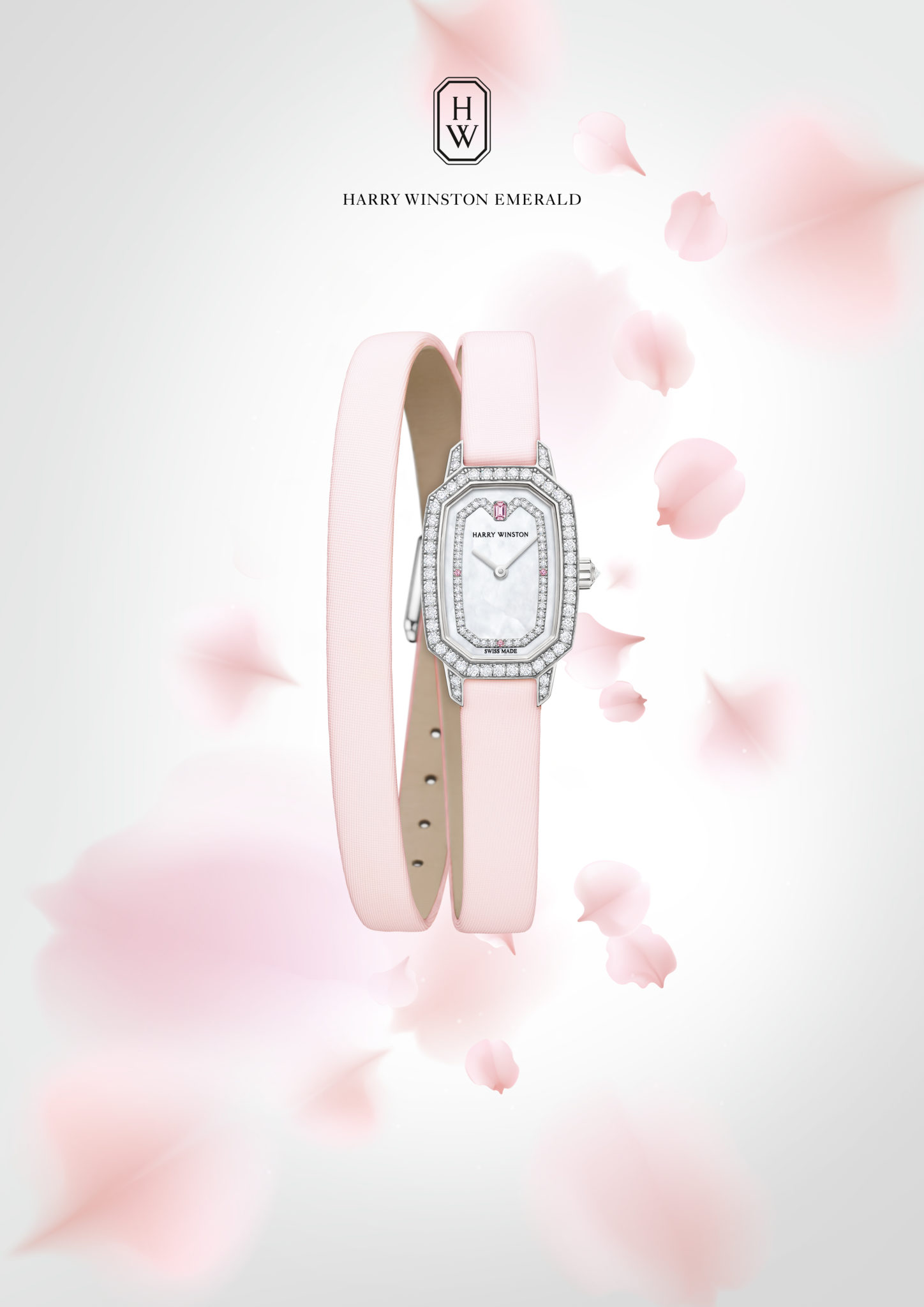 Harry Winston Emerald Collection Harry Winston Emerald Deux ans après ses débuts remarqués, la collection Harry Winston Emerald accueille un nouveau modèle sophistiqué, paré de tons rose pâle, de nacre et de diamants taille brillant. L’accessoire de luxe idéal pour les femmes qui recherchent le côté pratique d’une montre, mais aussi le glamour caractéristique des joyaux Harry Winston.