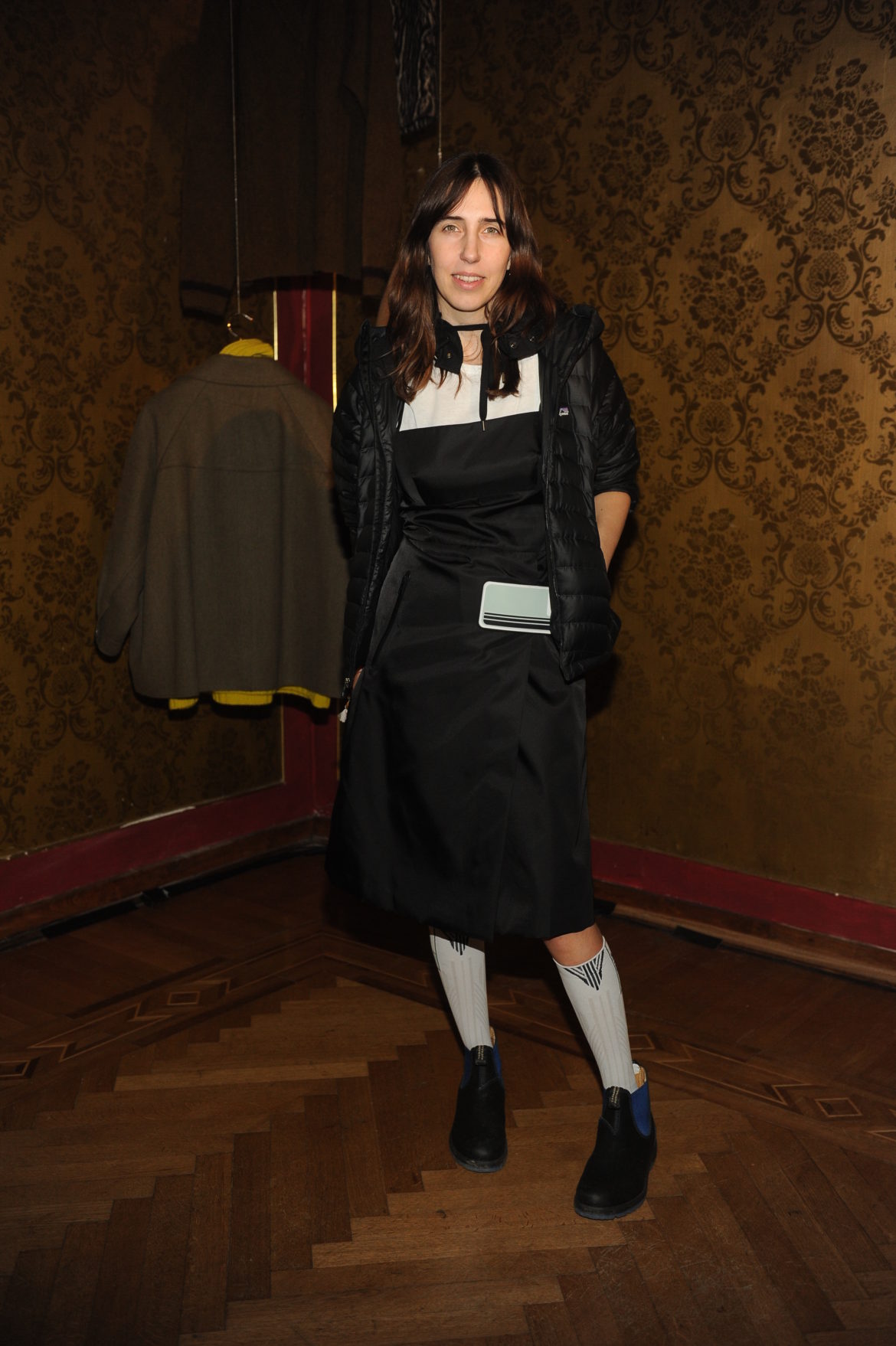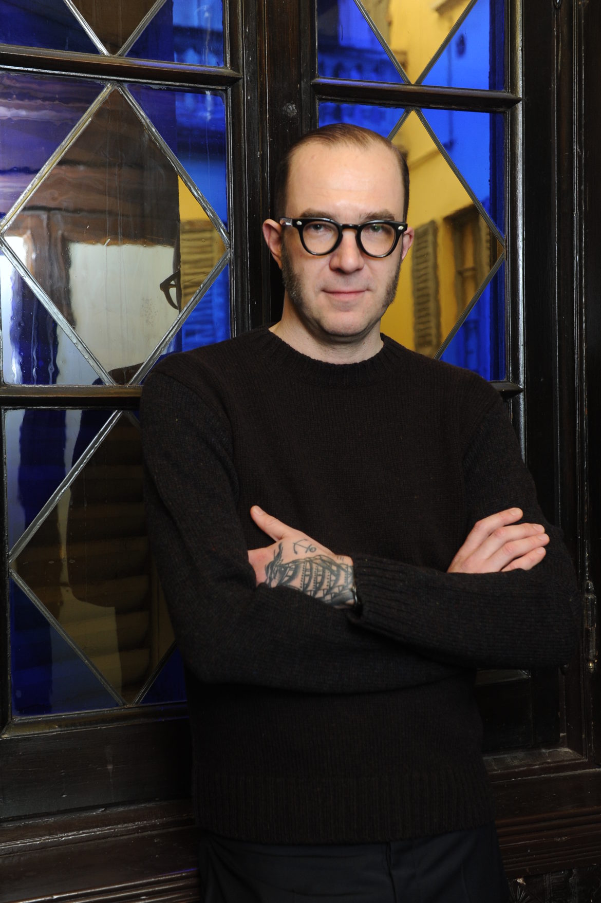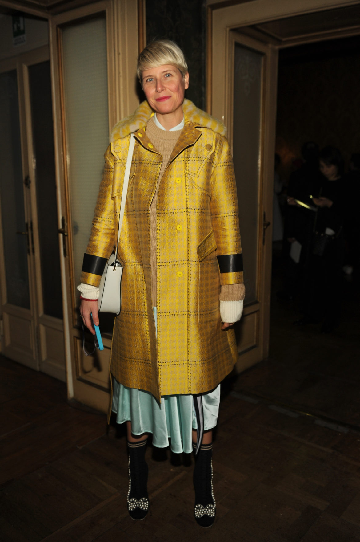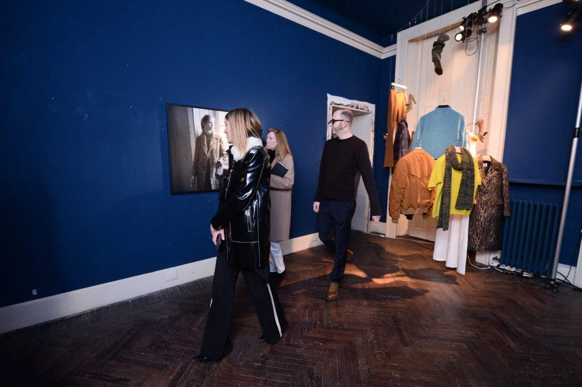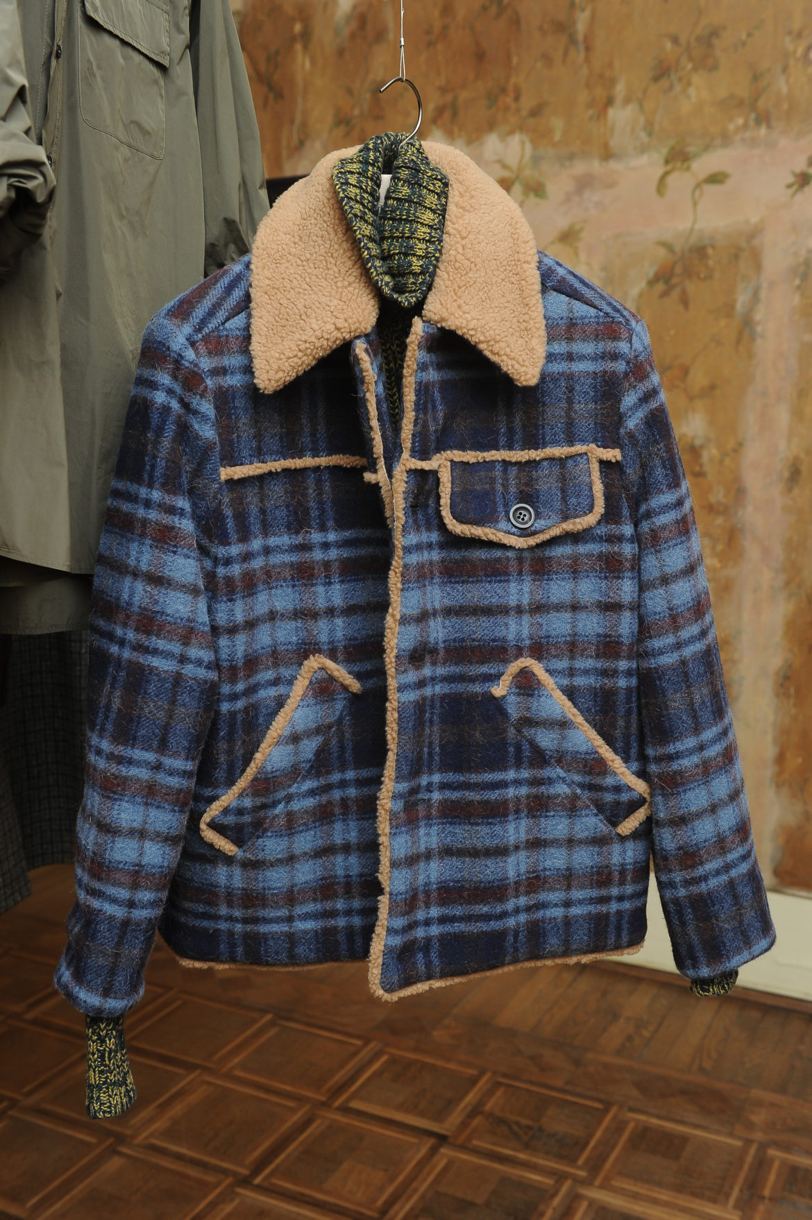 Consistently with previous collections, the starting point is a thorough research and selection of materials, which are the main source of inspiration and essence of every single piece. Beautiful raw cut felted wool finished with three lines of stitching gives life to coats, jackets and military-inspired skirts; original and precious baby camel fur, cashmere, technical taffeta (100% polyester), Japanese wool gabardine, wool/alpaca jacquard with ocelot motif, double silk satin with a washed look, Shetland wool tartan, linen, Chiné printed French silk, double cashmere and vintage-looking baby camel. A mix of classic tones (navy blue, camel, tobacco, army green, faded black) compose the chromatic palette highlighted by more livelier colors of knitwear (yellow, blue, mustard and pumpkin orange). Knitwear accentuates its importance with mouliné and Milano rib and felted cashmere and carded Scottish Shetland wool. A relaxed look and attitude convey the easy wear ability and free combination of all piece for an entirely personal interpretation. Embodying an authentic Milanese attitude, the footwear selection features the same nonchalant spirit informing the new universe of Santoni Edited by Marco Zanini. Ultra-soft crocodile or suede pumps are embellished by a maxi pilgrim buckle; boots feature similar softness and are deconstructed and offered in the same colors. For men, camperos-inspired boots and dark forest green and mustard vegetable leather “work” lace-ups.