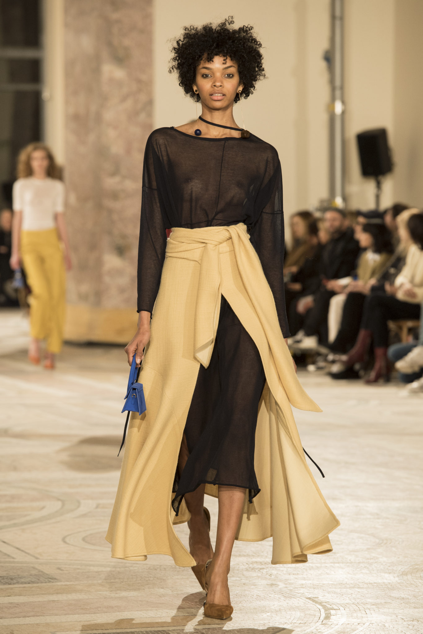 « Souvent après un défilé, je pars au Maroc. Je fais de la moto. Je roule tellement que mes chemises, à la fin de la journée, sentent l’essence. Cet hiver je me suis encore perdu dans les souks, je n’avais qu’une envie : faire mon été prochain ici. Je suis rentré à Paris et j’en ai fait mon hiver; ma collection d’hiver. Sans attendre, mon hiver chaud. Je suis heureux de continuer ma relation avec Woolmark, leur savoir faire et leur soutien dans la recherche des laines parfaites pour mes inspirations me permettent d’ouvrir mon horizon créatif» Simon Porte Jacquemus.