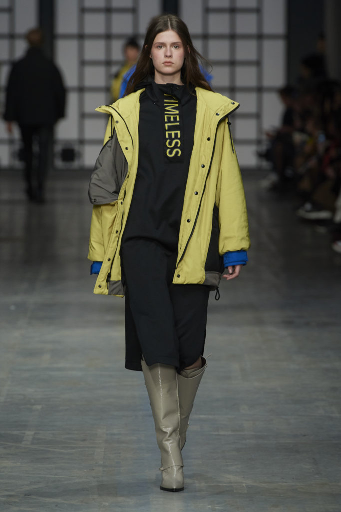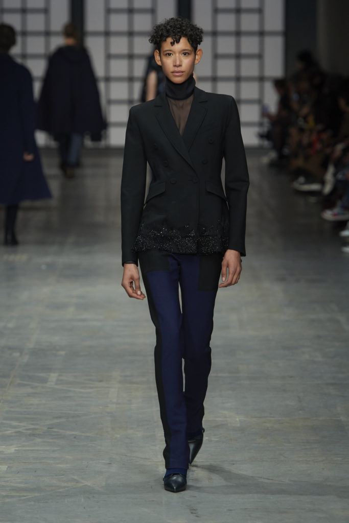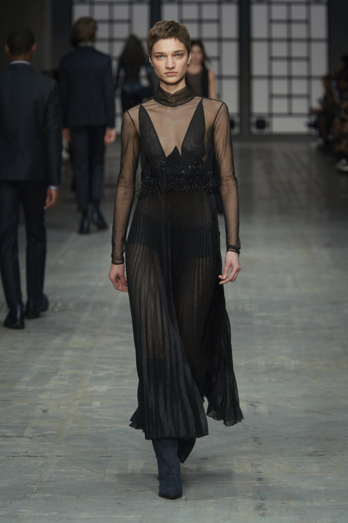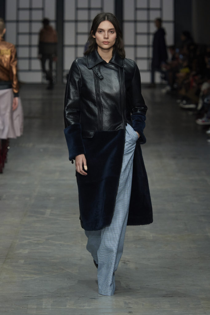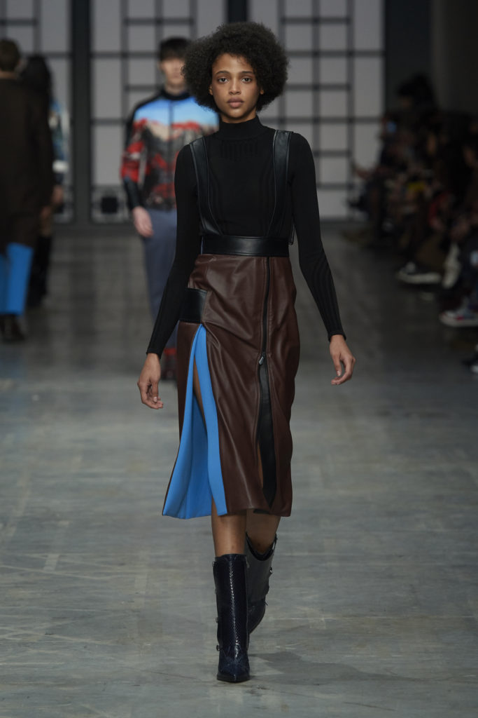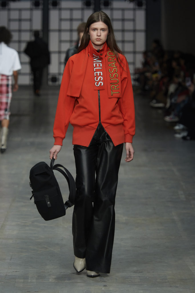 La famille comme tribu. La modernité rapide de Milan, sans aucune nostalgie. C’est le culte du savoirfaire italien, entre la qualité des matériaux et cette mentalité de faire chaque chose bien et avec goût. Multi-ethnique, sans limites de fonction ou de rôle, la Collection Automne-Hiver 2018/19 homme et femme de Trussardi définit un nouveau langage esthétique dédié à un gang urbain, imaginaire mais réel, d’hommes et de femmes, entre grande tradition et révolutions contemporaines. Une antithèse? Non, au contraire : leurs vêtements sont tout simplement la synthèse, peut-être la solution de continuité, entre ces deux mondes. Avant même la garde-robe Trussardi, ces pièces sont devenues des éléments essentiels: le pardessus confectionné à la perfection, le pantalon à la ligne ample et parfaite, la jupe fluide fendue, les vêtements en maille, le Blazer sartorial, la veste Biker. Et le cuir : de très haute qualité, le savoir-faire de la ganterie, pailleté, illuminé par des imprimés ou tissé pour former des dessins tartan. Il est également agrémenté de signes graphiques noirs comme une ponctuation imaginaire. Ces caractéristiques essentielles du style Trussardi, éléments délibérément intemporels, brisent la distinction entre ville et montagne, vêtements de jour et vêtements décontractés. Le tartan est présenté dans plusieurs tailles, petites ou grandes, et s’adapte à toutes les catégories, du jour au soir. Des imprimés de montagnes ou de skieurs passent des vêtements les plus sportifs aux habits de soirée, rompant ainsi avec les habitudes d’utilisation classiques de ces motifs. Et les couleurs, choisies parmi les nuances de lumière qui séparent l’aube du jour et le crépuscule de la nuit, donnent une nouvelle profondeur aux pièces emblématiques de la garde-robe. Les silhouettes sont toutes verticales, grandes, souvent marquées à la taille pour un rendu plus sérieux. Alors que les lignes sont, au contraire, fluides, rapides et dynamiques. Un oxymore de style qui associe agilité et sophistication, références de la garde-robe d’hier et attitude désenchantée des tribus métropolitaines d’aujourd’hui.