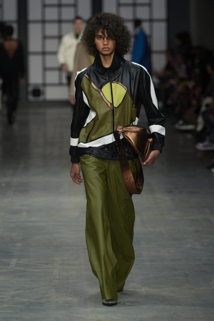 Les accessoires sont comme un cadre qui rend le message encore plus évident. Maxi pochettes unisexe et sacs à dos en tissu technique. Sacs de shopping extra larges en cuir imprimé ou personnalisé avec un logo brodé et détails en fourrure. Le sac à trois soufflets en plusieurs coloris et bandoulière interchangeable est le résultat du meilleur de l’artisanat italien. Le lévrier est stylisé et devient une nouvelle fermeture à double usage : comme bandoulière ou poignée supérieure. Enfin, les chaussures: le modèle masculin, iconique et hyper-traditionnel avec languette et deux boucles latérales, donne sa forme aux nouvelles bottines pour femme à talon moyen. Et dans la catégorie masculine, les chaussures bateau, une autre icône de la garde-robe classique, sont revisitées dans une forme créative qui supprime la frontière entre le sportswear et le style formel.