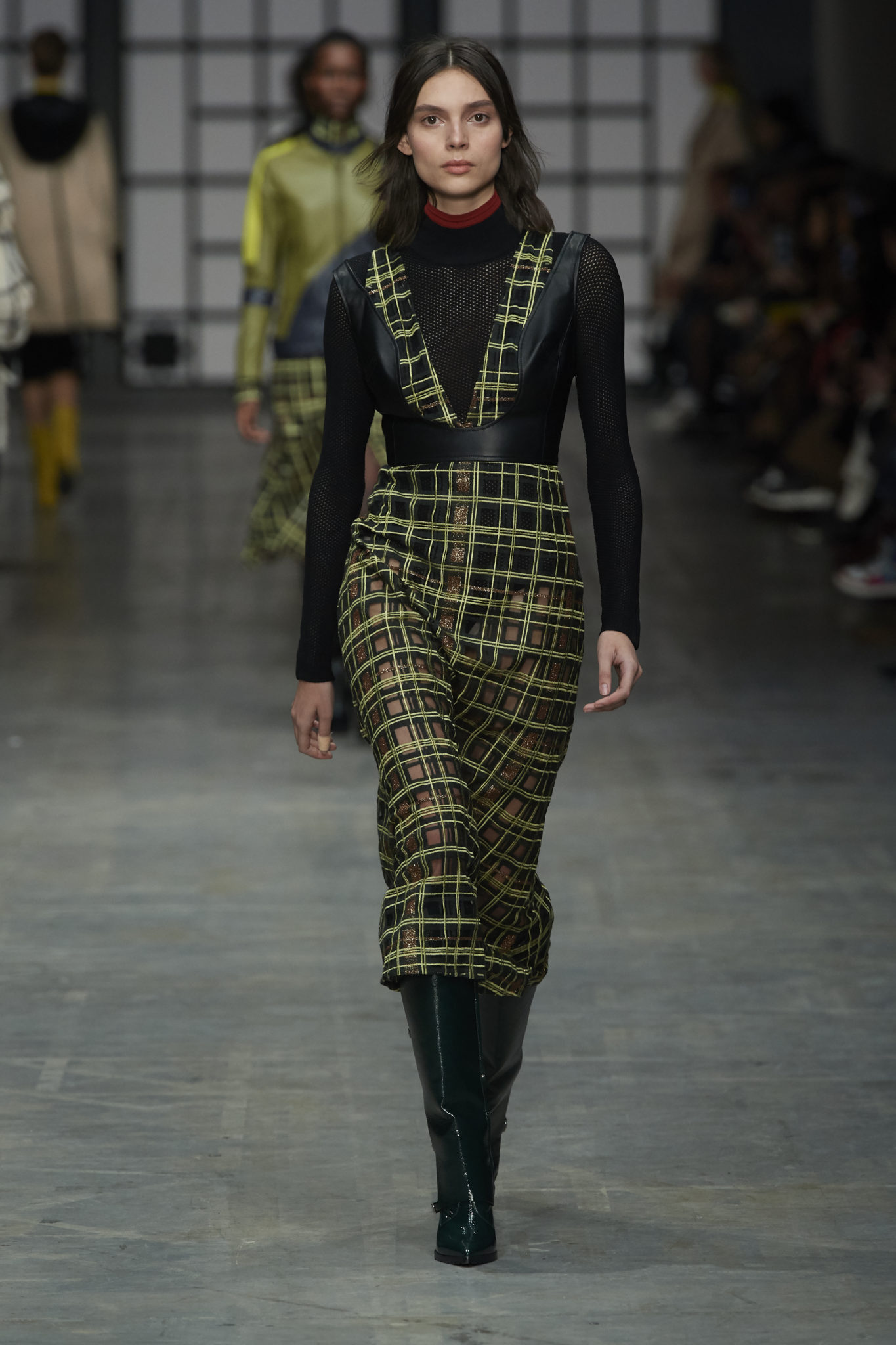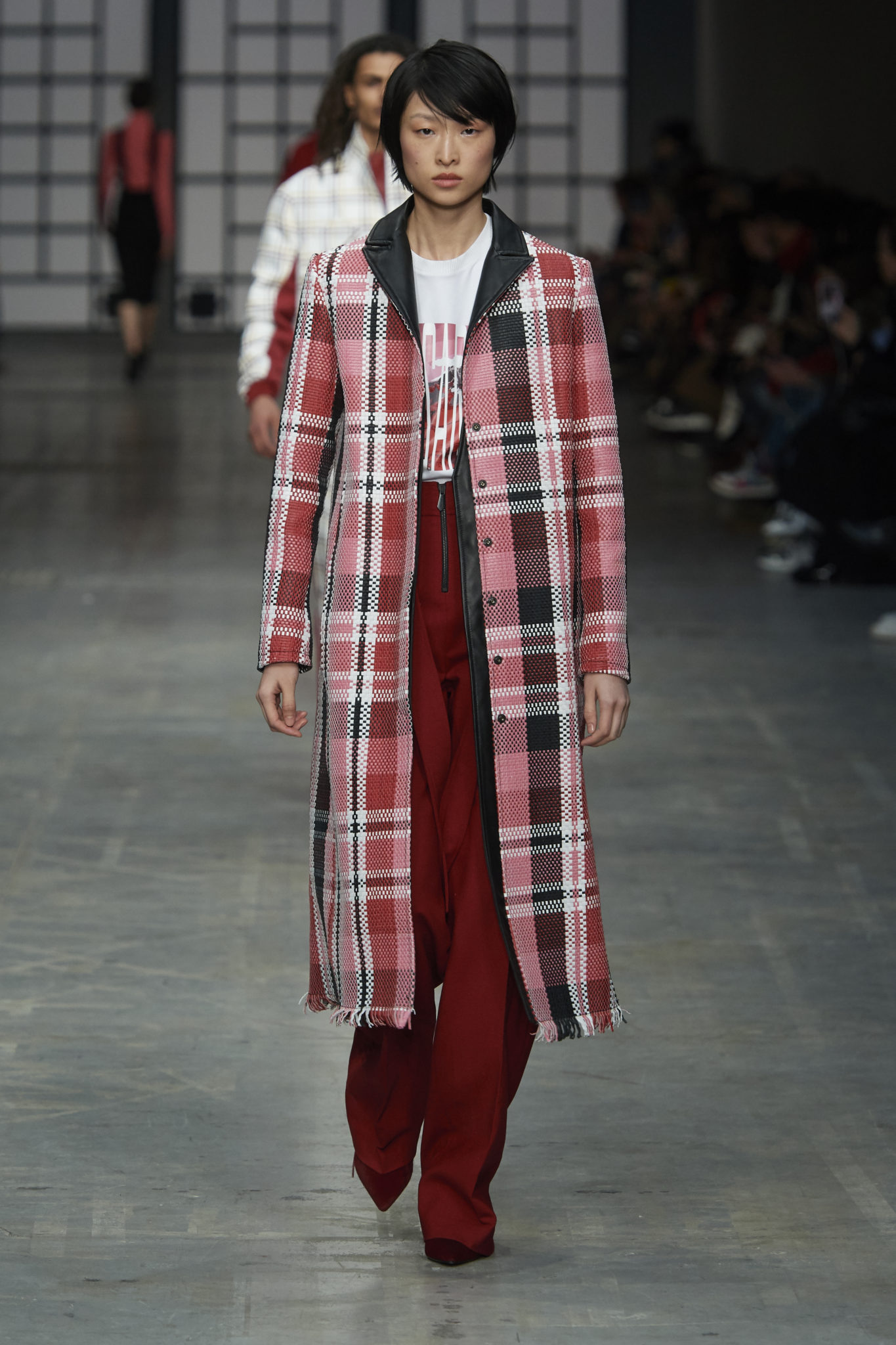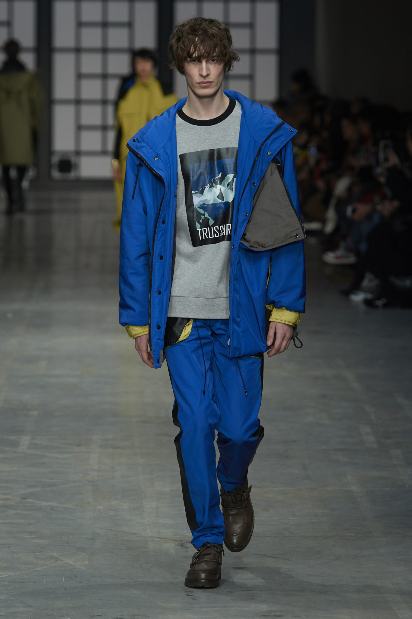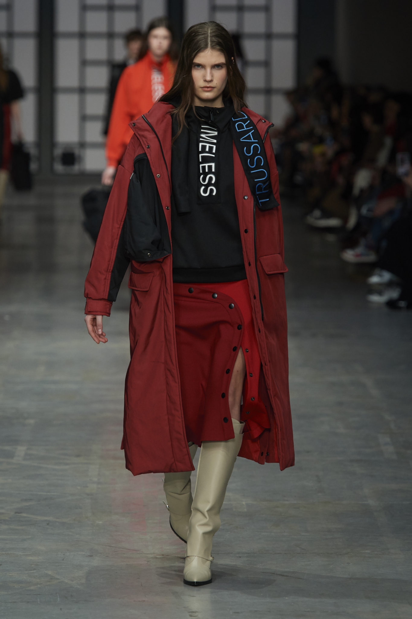 La famille comme tribu. La modernité rapide de Milan, sans aucune nostalgie. C’est le culte du savoirfaire italien, entre la qualité des matériaux et cette mentalité de faire chaque chose bien et avec goût. Multi-ethnique, sans limites de fonction ou de rôle, la Collection Automne-Hiver 2018/19 homme et femme de Trussardi définit un nouveau langage esthétique dédié à un gang urbain, imaginaire mais réel, d’hommes et de femmes, entre grande tradition et révolutions contemporaines. Une antithèse? Non, au contraire : leurs vêtements sont tout simplement la synthèse, peut-être la solution de continuité, entre ces deux mondes. Avant même la garde-robe Trussardi, ces pièces sont devenues des éléments essentiels: le pardessus confectionné à la perfection, le pantalon à la ligne ample et parfaite, la jupe fluide fendue, les vêtements en maille, le Blazer sartorial, la veste Biker. Et le cuir : de très haute qualité, le savoir-faire de la ganterie, pailleté, illuminé par des imprimés ou tissé pour former des dessins tartan. Il est également agrémenté de signes graphiques noirs comme une ponctuation imaginaire. Ces caractéristiques essentielles du style Trussardi, éléments délibérément intemporels, brisent la distinction entre ville et montagne, vêtements de jour et vêtements décontractés. Le tartan est présenté dans plusieurs tailles, petites ou grandes, et s’adapte à toutes les catégories, du jour au soir. Des imprimés de montagnes ou de skieurs passent des vêtements les plus sportifs aux habits de soirée, rompant ainsi avec les habitudes d’utilisation classiques de ces motifs. Et les couleurs, choisies parmi les nuances de lumière qui séparent l’aube du jour et le crépuscule de la nuit, donnent une nouvelle profondeur aux pièces emblématiques de la garde-robe. Les silhouettes sont toutes verticales, grandes, souvent marquées à la taille pour un rendu plus sérieux. Alors que les lignes sont, au contraire, fluides, rapides et dynamiques. Un oxymore de style qui associe agilité et sophistication, références de la garde-robe d’hier et attitude désenchantée des tribus métropolitaines d’aujourd’hui.