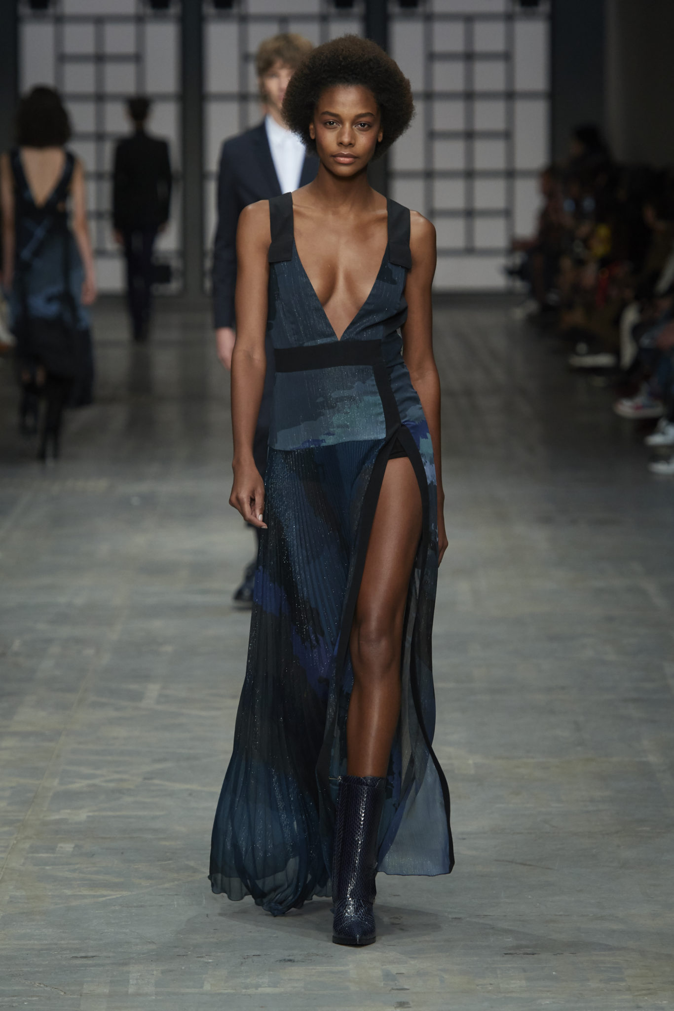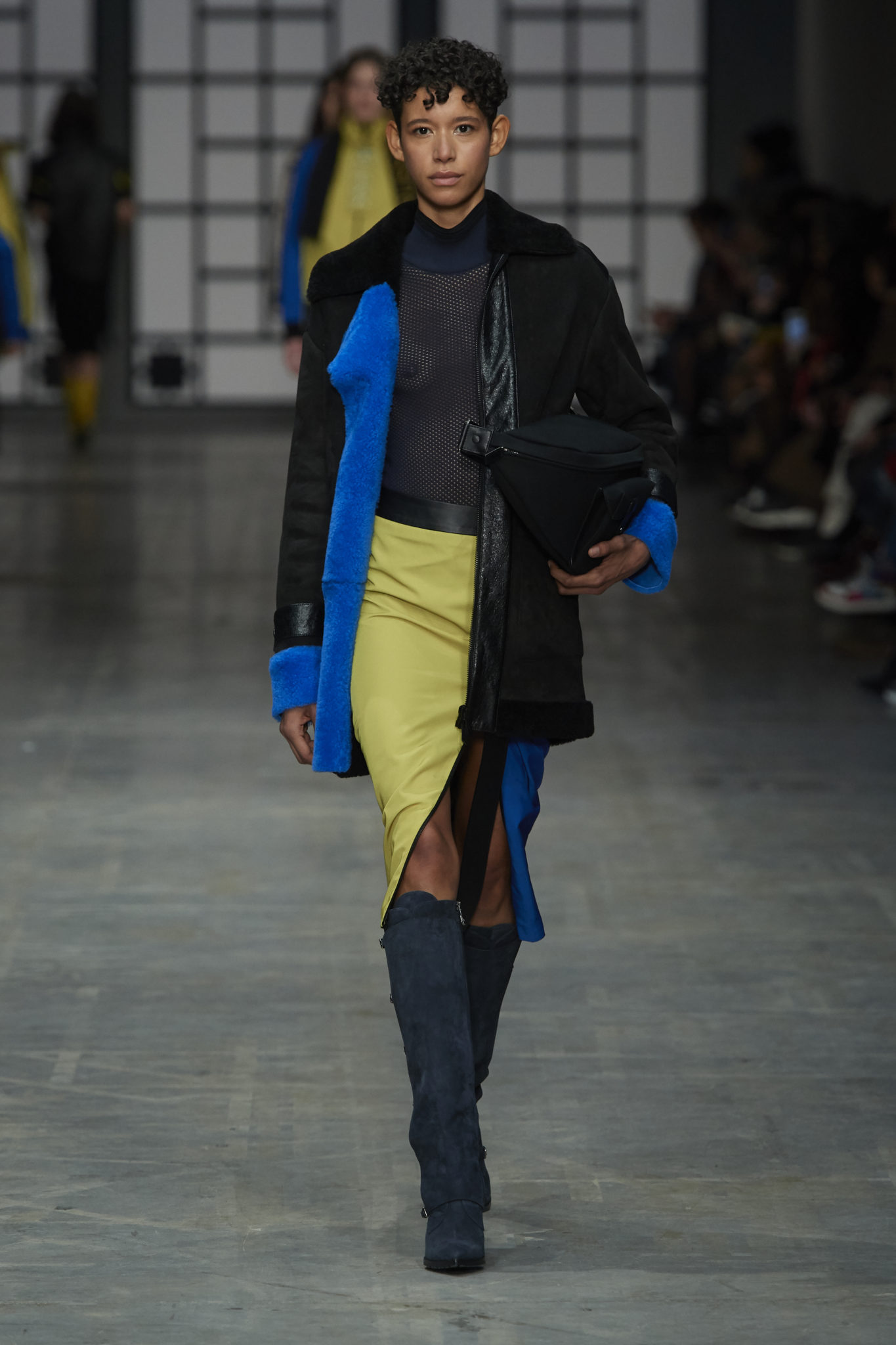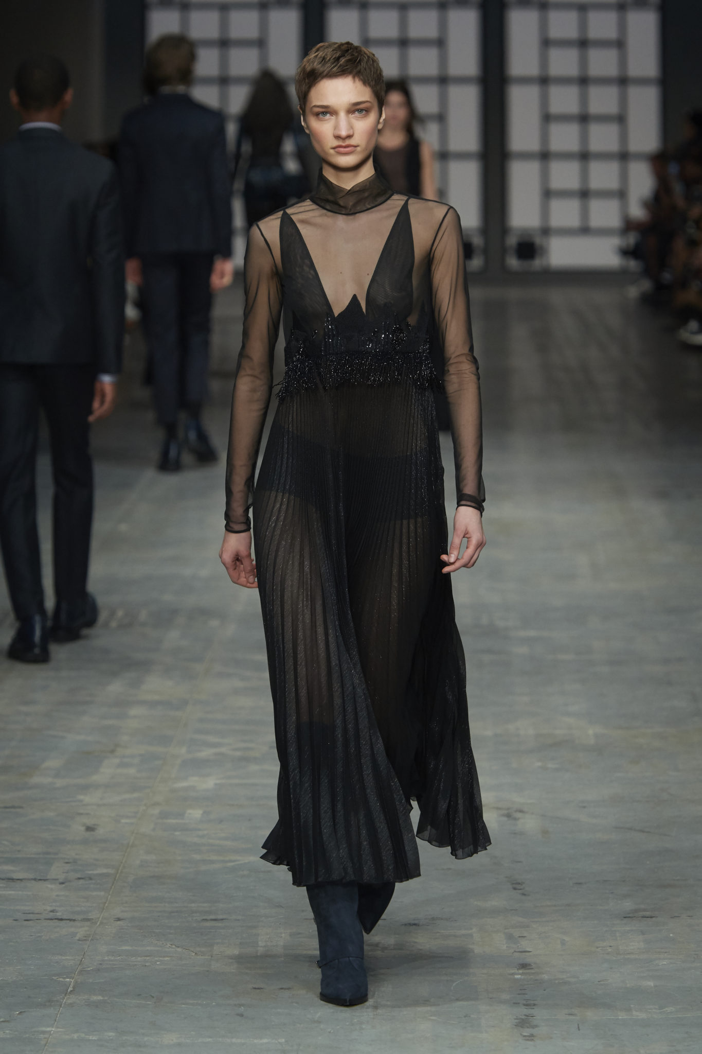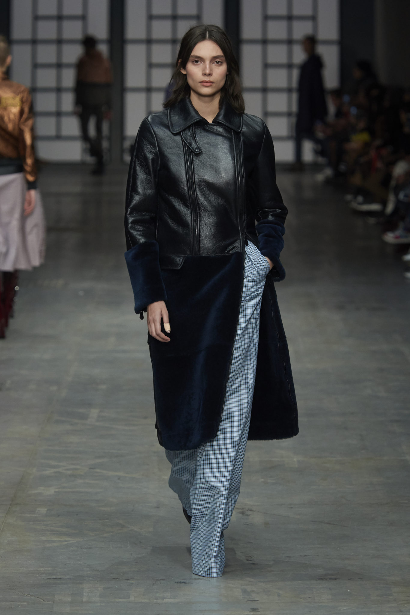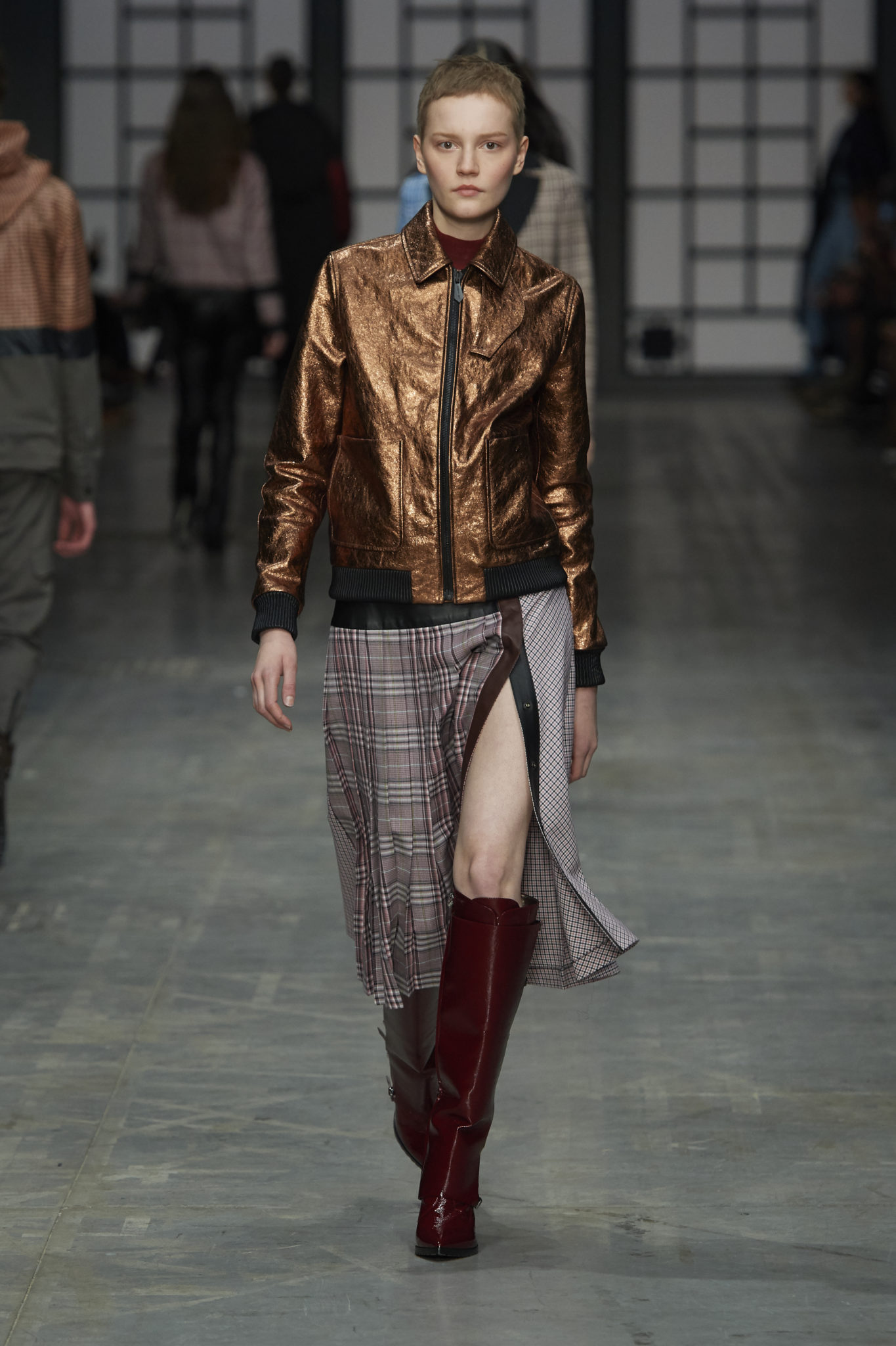 La famille comme tribu. La modernité rapide de Milan, sans aucune nostalgie. C’est le culte du savoirfaire italien, entre la qualité des matériaux et cette mentalité de faire chaque chose bien et avec goût. Multi-ethnique, sans limites de fonction ou de rôle, la Collection Automne-Hiver 2018/19 homme et femme de Trussardi définit un nouveau langage esthétique dédié à un gang urbain, imaginaire mais réel, d’hommes et de femmes, entre grande tradition et révolutions contemporaines. Une antithèse? Non, au contraire : leurs vêtements sont tout simplement la synthèse, peut-être la solution de continuité, entre ces deux mondes. Avant même la garde-robe Trussardi, ces pièces sont devenues des éléments essentiels: le pardessus confectionné à la perfection, le pantalon à la ligne ample et parfaite, la jupe fluide fendue, les vêtements en maille, le Blazer sartorial, la veste Biker. Et le cuir : de très haute qualité, le savoir-faire de la ganterie, pailleté, illuminé par des imprimés ou tissé pour former des dessins tartan. Il est également agrémenté de signes graphiques noirs comme une ponctuation imaginaire. Ces caractéristiques essentielles du style Trussardi, éléments délibérément intemporels, brisent la distinction entre ville et montagne, vêtements de jour et vêtements décontractés. Le tartan est présenté dans plusieurs tailles, petites ou grandes, et s’adapte à toutes les catégories, du jour au soir. Des imprimés de montagnes ou de skieurs passent des vêtements les plus sportifs aux habits de soirée, rompant ainsi avec les habitudes d’utilisation classiques de ces motifs. Et les couleurs, choisies parmi les nuances de lumière qui séparent l’aube du jour et le crépuscule de la nuit, donnent une nouvelle profondeur aux pièces emblématiques de la garde-robe. Les silhouettes sont toutes verticales, grandes, souvent marquées à la taille pour un rendu plus sérieux. Alors que les lignes sont, au contraire, fluides, rapides et dynamiques. Un oxymore de style qui associe agilité et sophistication, références de la garde-robe d’hier et attitude désenchantée des tribus métropolitaines d’aujourd’hui.
