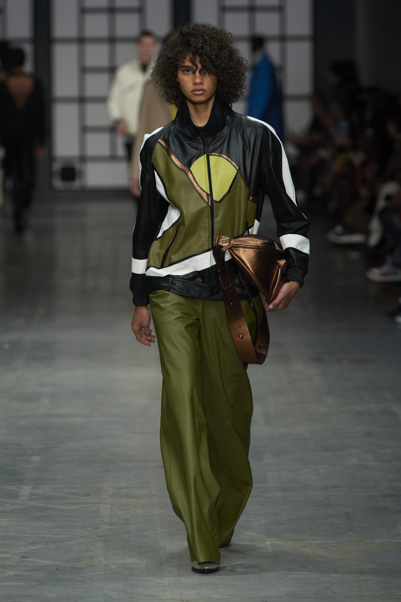 Les accessoires sont comme un cadre qui rend le message encore plus évident. Maxi pochettes unisexe et sacs à dos en tissu technique. Sacs de shopping extra larges en cuir imprimé ou personnalisé avec un logo brodé et détails en fourrure. Le sac à trois soufflets en plusieurs coloris et bandoulière interchangeable est le résultat du meilleur de l’artisanat italien. Le lévrier est stylisé et devient une nouvelle fermeture à double usage : comme bandoulière ou poignée supérieure. Enfin, les chaussures: le modèle masculin, iconique et hyper-traditionnel avec languette et deux boucles latérales, donne sa forme aux nouvelles bottines pour femme à talon moyen. Et dans la catégorie masculine, les chaussures bateau, une autre icône de la garde-robe classique, sont revisitées dans une forme créative qui supprime la frontière entre le sportswear et le style formel.