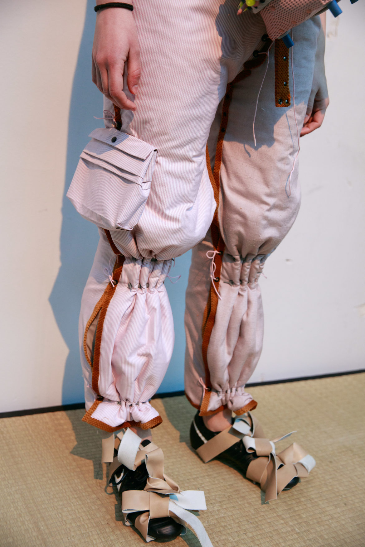 This collection is all about the fragmented pieces, pieces of ideas. They can be isolated or mixed to create unexpected elements together. The collection contains many a half garments such as one pant leg or one half of a jacket. This allows for more versatility and makes new clothing that is yet undefined through language. These clothes bring a new thought process when dressing ourselves because language is so critical in identity.