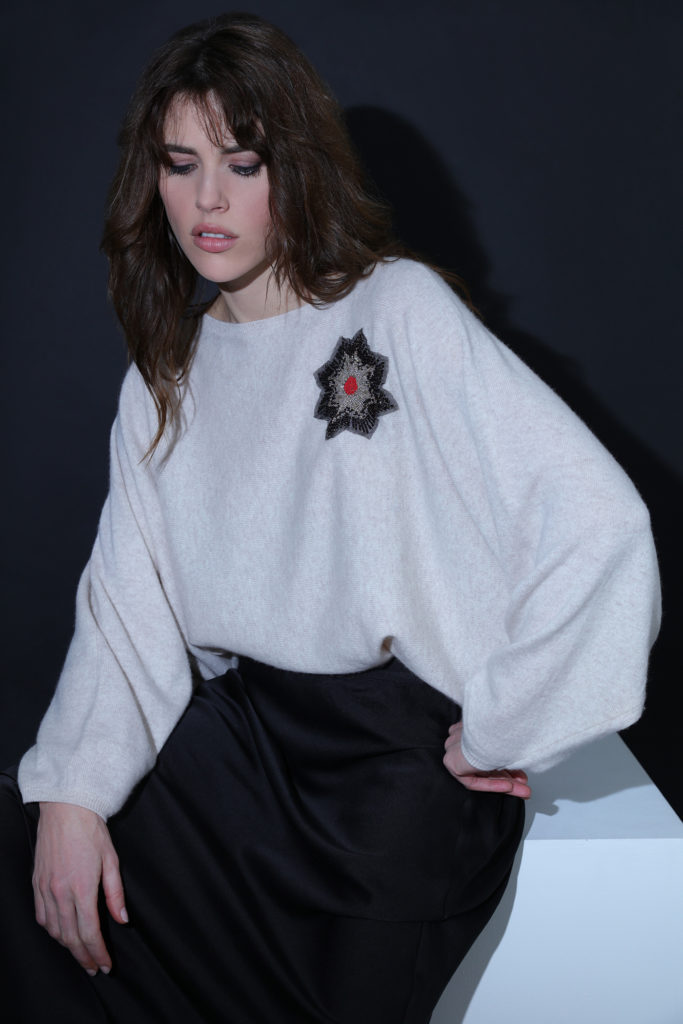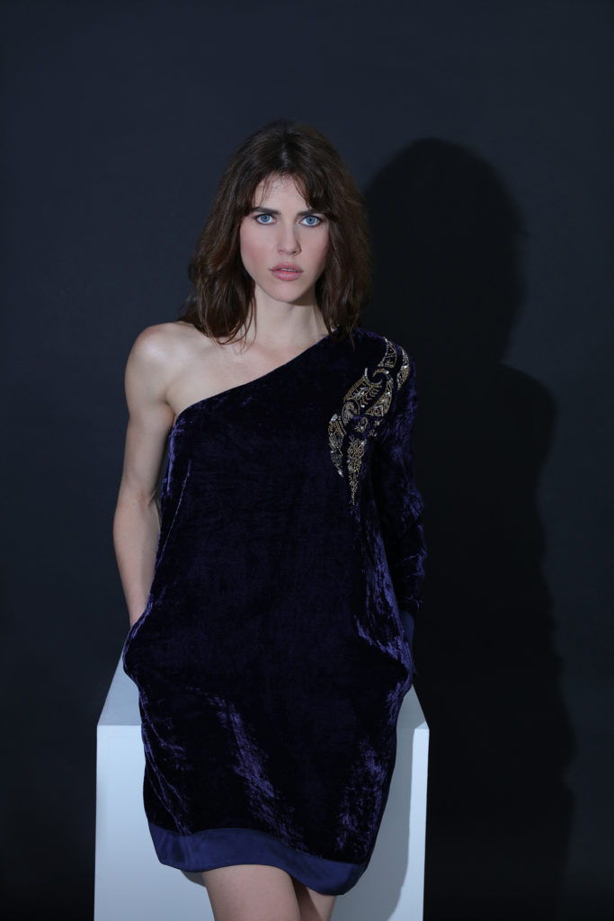 « Elle a des mains intelligentes » : une expression que les français prononcent du bout des lèvres, préférant séparer artistes et artisans. Pourtant un artiste est un ensemble, un esprit, dans un corps, avec des mains qu’il faut diriger : » Je ne comprend pas cette distinction (…) avec Danamé j’aimerais rendre hommage aux mains intelligentes ». Des mains qui étaient celles de sa grand-mère » les broderies qu’elle faisait en Europe de l’est, étaient basées sur les X : on en retrouve dans la collection (…) c’est assez symbolique, très profond.La broderie c’est toute l’âme, tout l’ADN d’une région ». Aujourd’hui c’est le savoir-faire Indien qui est mis en lumière: « les brodeurs les plus audacieux ( …) je les respecte profondément. Leur couture est un droit au temps, prendre le temps d’atteindre un résultat somptueux ». Danamé : un manifeste pour renouer avec l’expérience du temps long. Une expérience de plus en plus demandée par la nouvelle génération. Prise dans une monde ou les informations sont obsolètes avant même d’être diffusées, ou l’existence s’est résumée en une course dont on a oublié le but. » Je reviens d’une conférence: les recherches sociologiques sur les millèniales montre que 2/3 vivent sous antidépresseurs( …) ils cherchent le pur, la nature, l’expérience authentique ». Privée de toute émotion, la nouvelle génération a fait de son corps un outil rentable, mesurable quantifiable. Danamé est un crie » nous ne sommes pas des machines: mais pour cela il faut se réaproprier le temps. » En toute logique la broderie devient la trame de confection de ce discours « Le corps est le plus merveilleux des canevas »