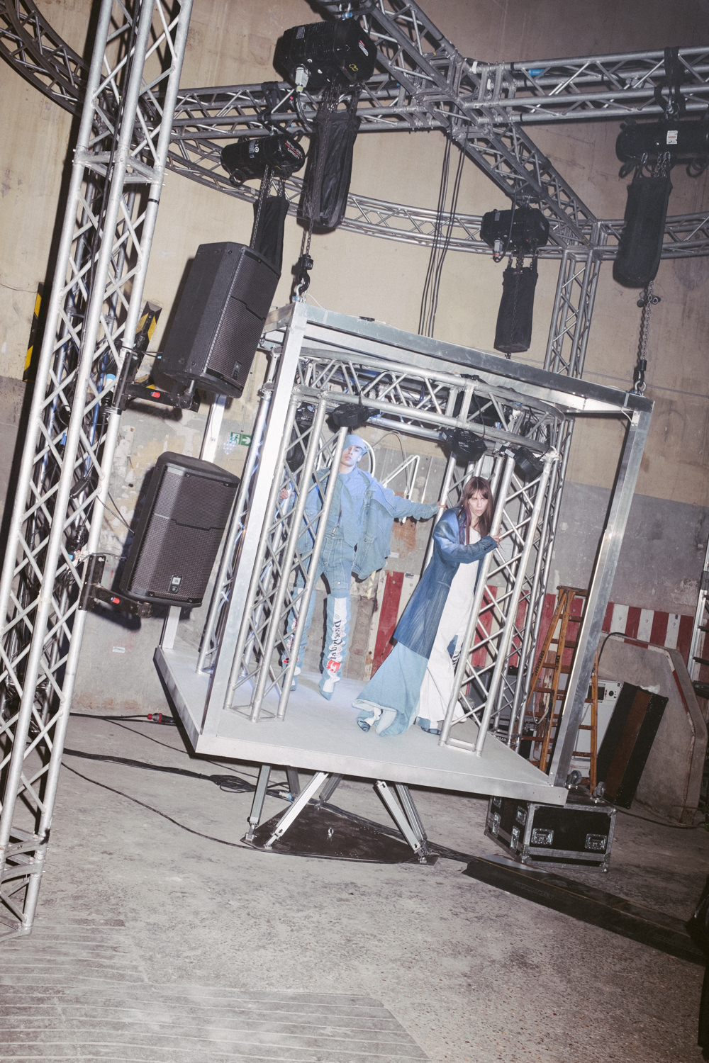 Pour célébrer le lancement de la capsule, un événement a eu lieu le soir même dans un lieu très industriel de la rive gauche Parisienne : des installations inventées par Shayne, dans laquelle on pouvait admirer une performance artistique accompagnée d’un set de DJs.