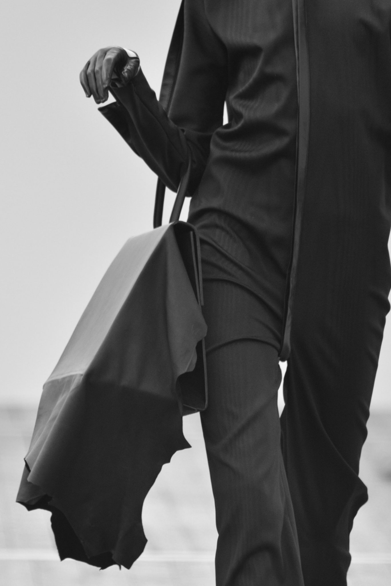Les vêtements de cette Collection naissent d’une feuille A4 vierge dont la forme rectangulaire en est la coupe principale.