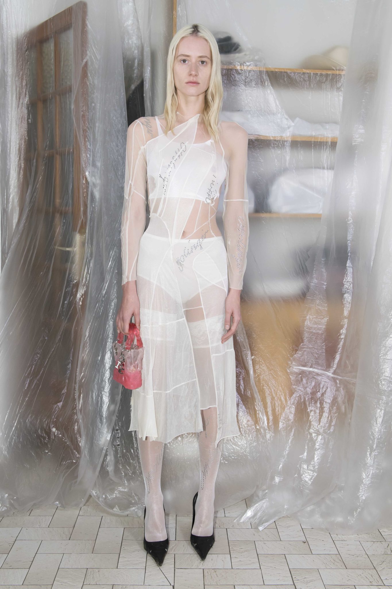 Pour la collection AH18, le design duo Ottolinger occupe une ruelle tranquille du 4ème arrondissement de Paris et expose les modèles dans les vitrines d’une galerie d’art, d’un pressing et d’une boutique de « mariage oriental ».