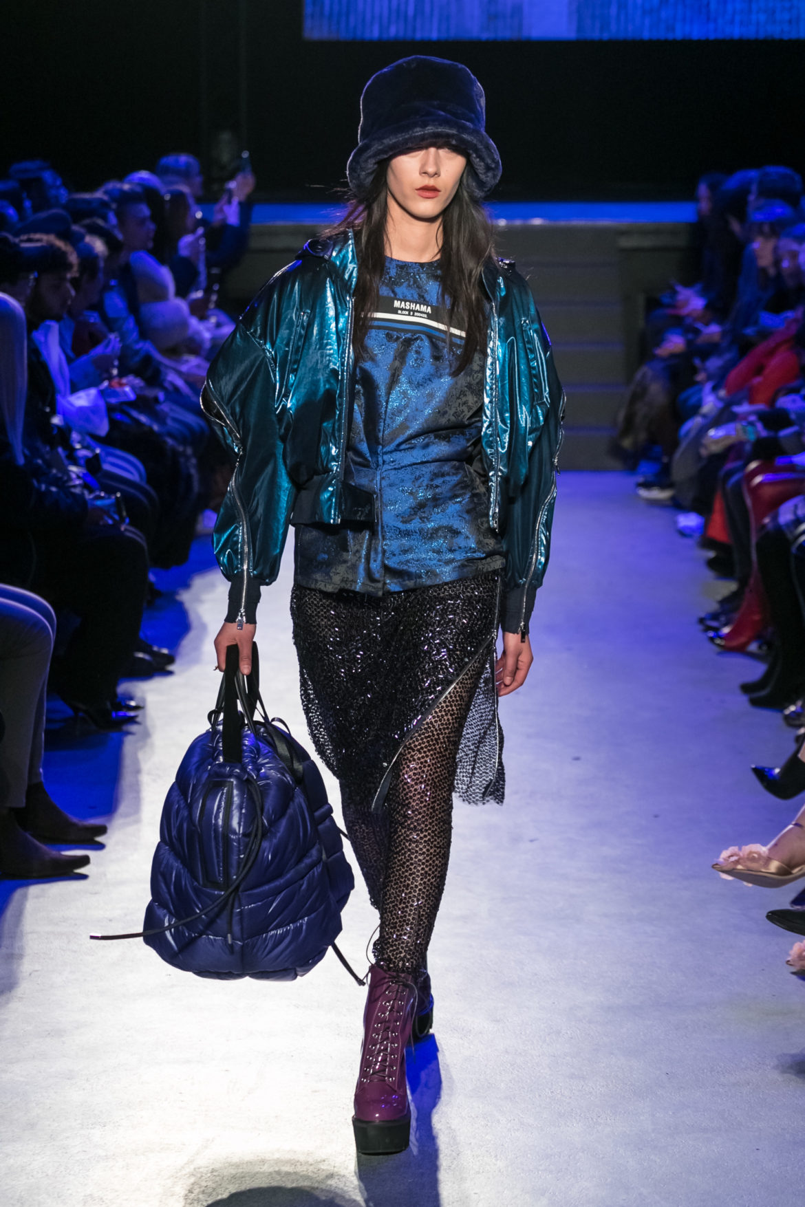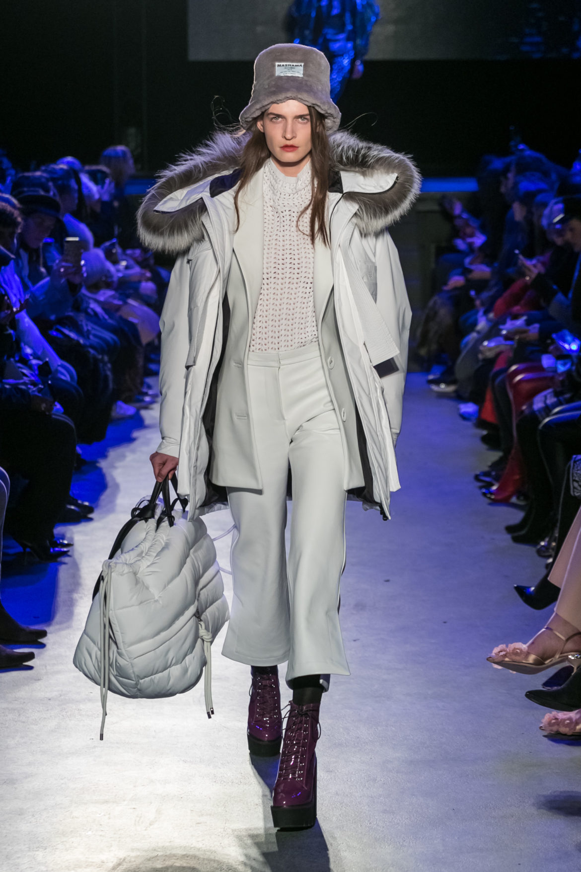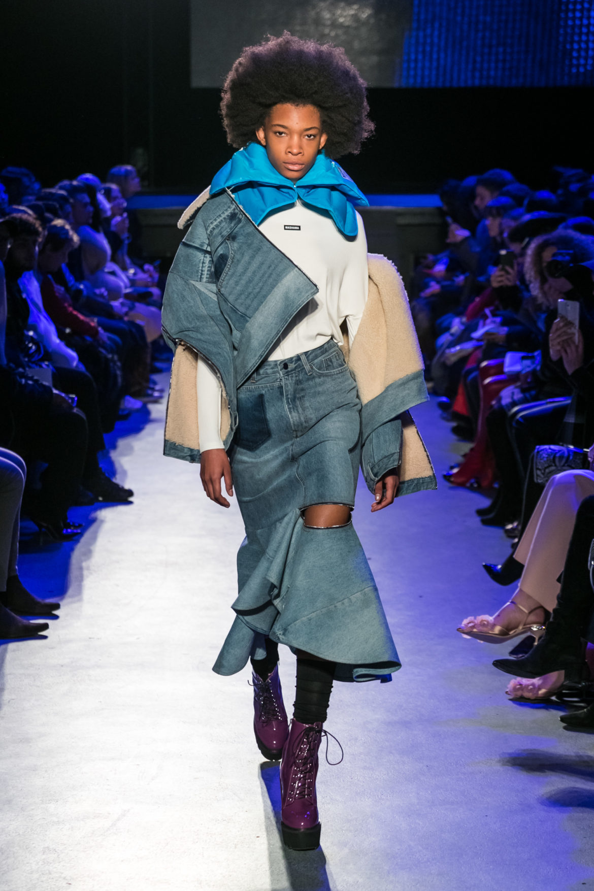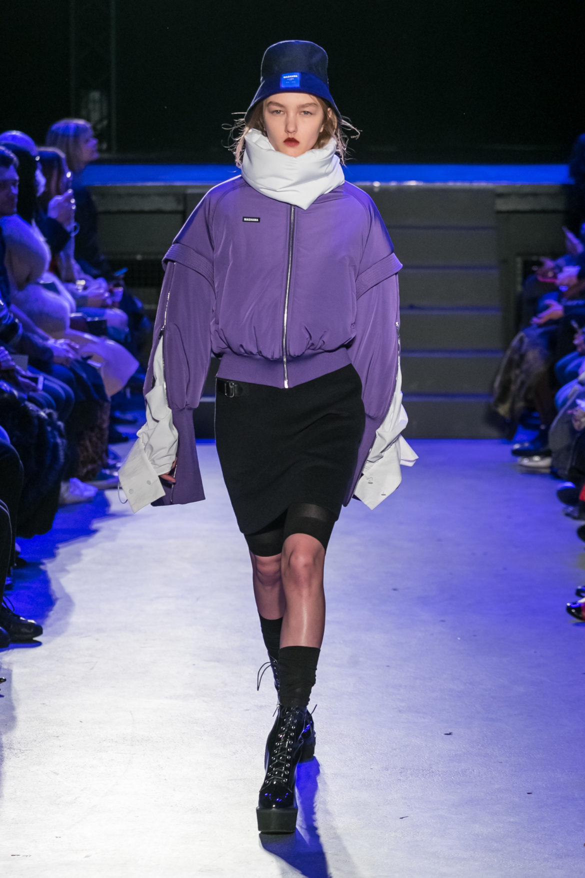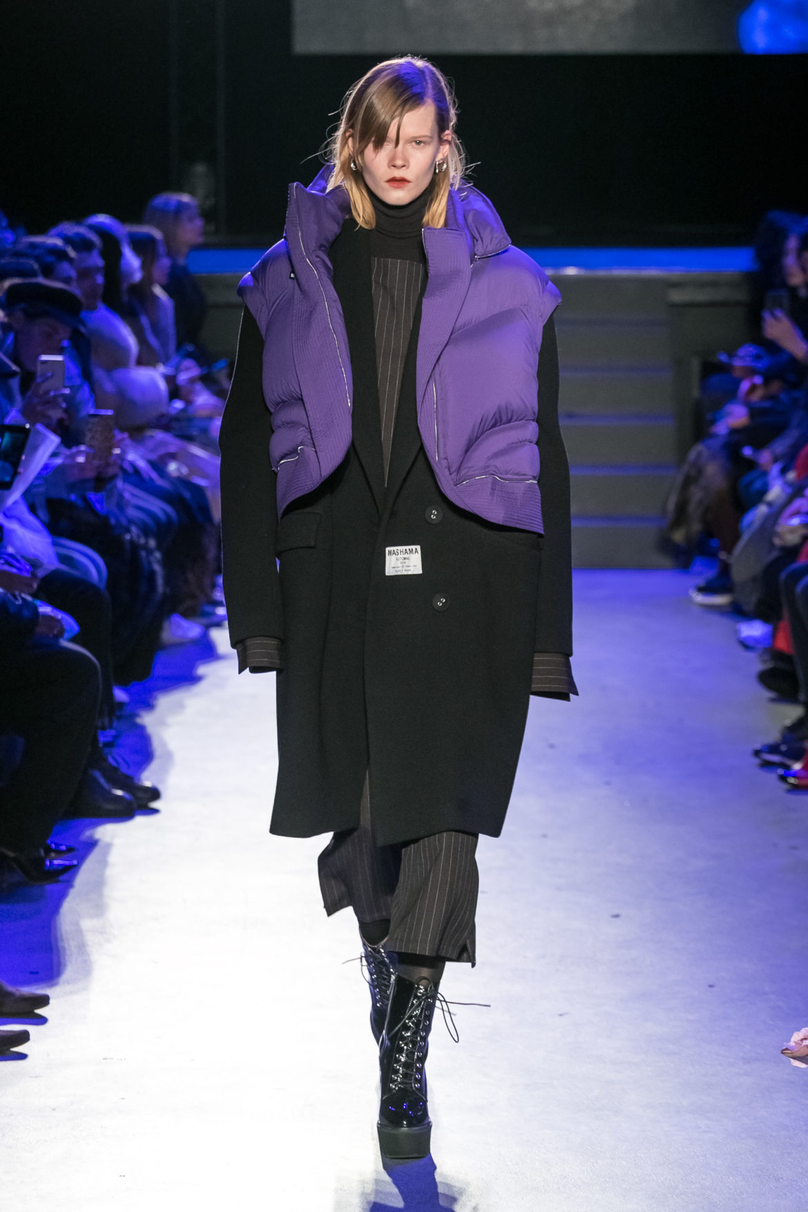 Exaggerated hoods, round shapes, deconstructed big forms, and voluptuous cuts, sculpt the MASHAMA impenetrable shield. Innovative high-tech materials, sci-fi fabrics and new production techniques further optimise the ideal outdoor buffer in big body- warming puffers, inside-out anoraks and a changing-colour chameleon coat.