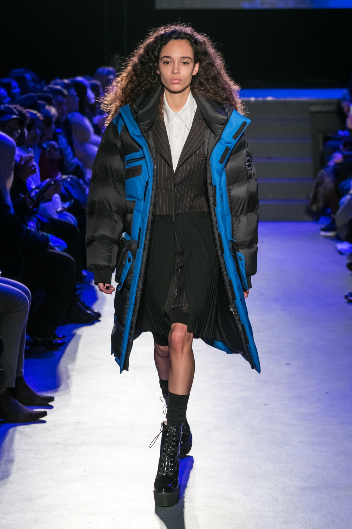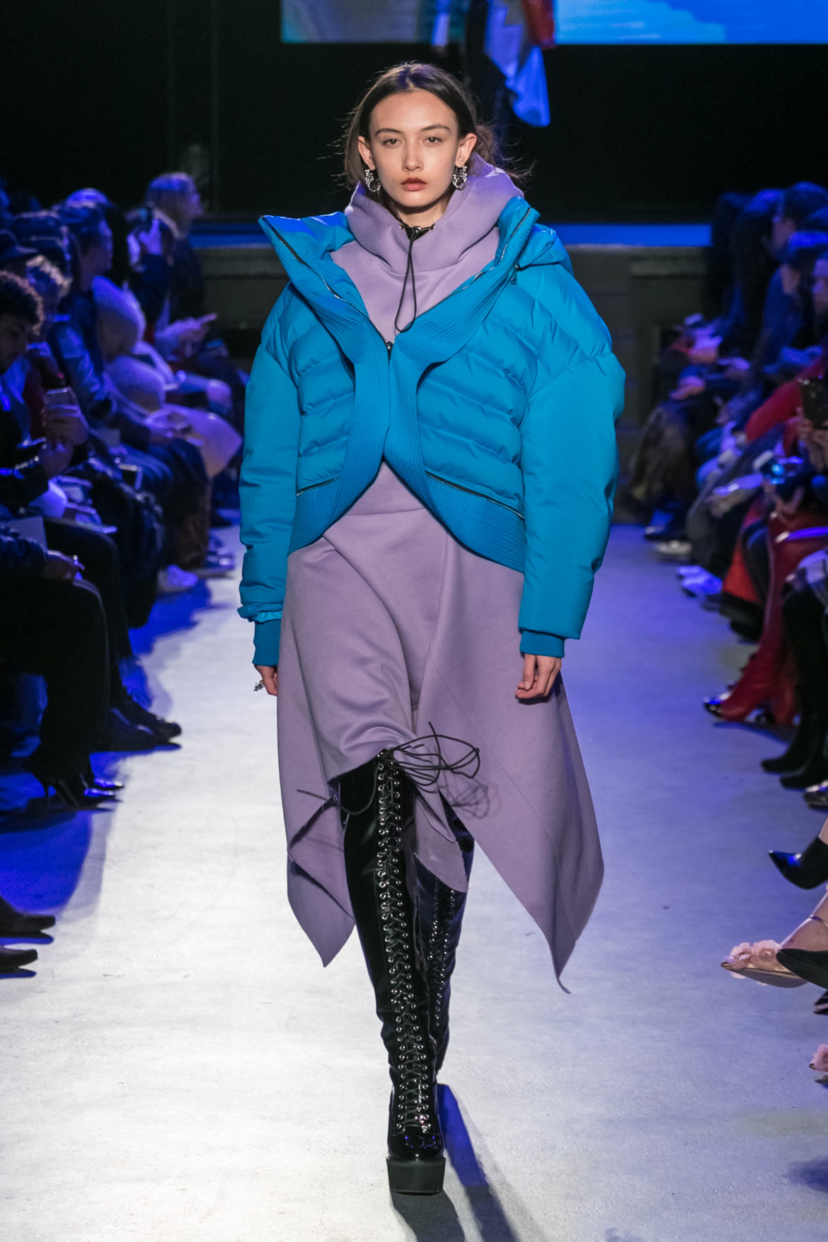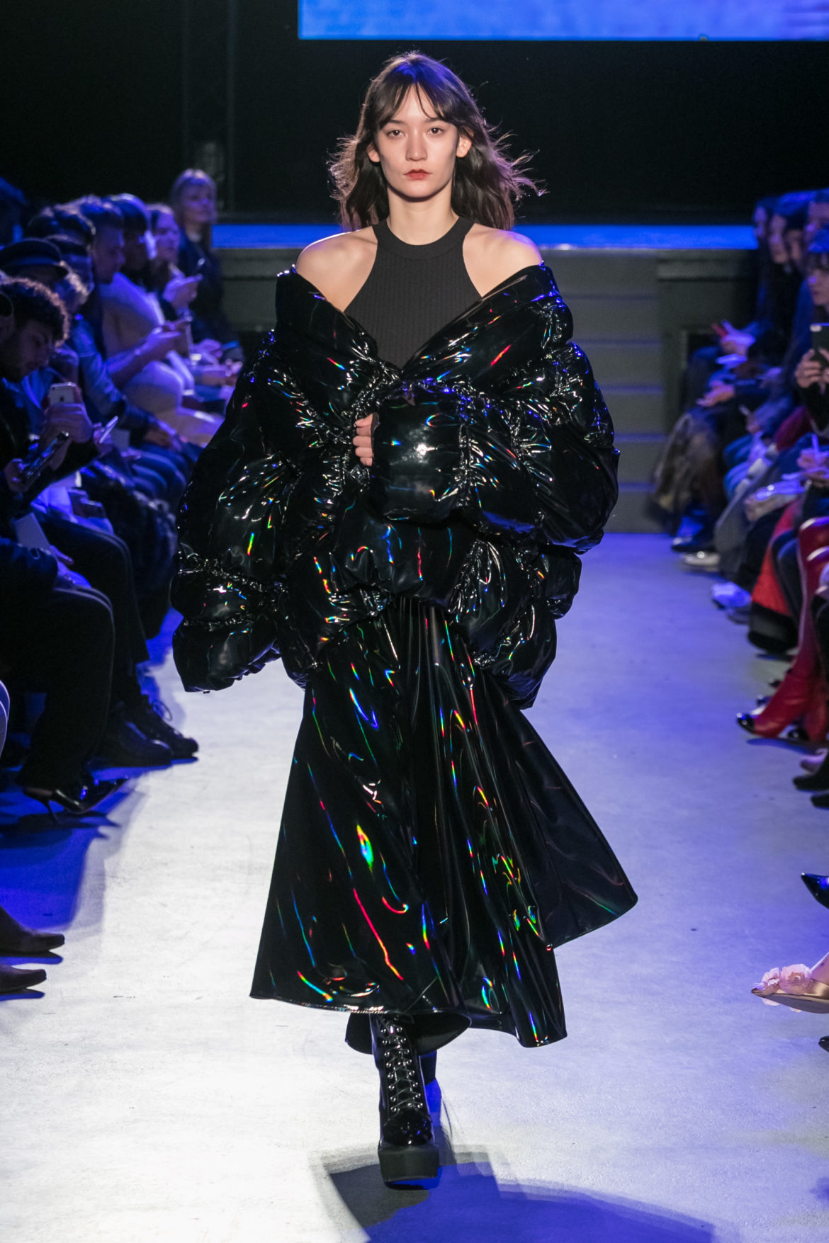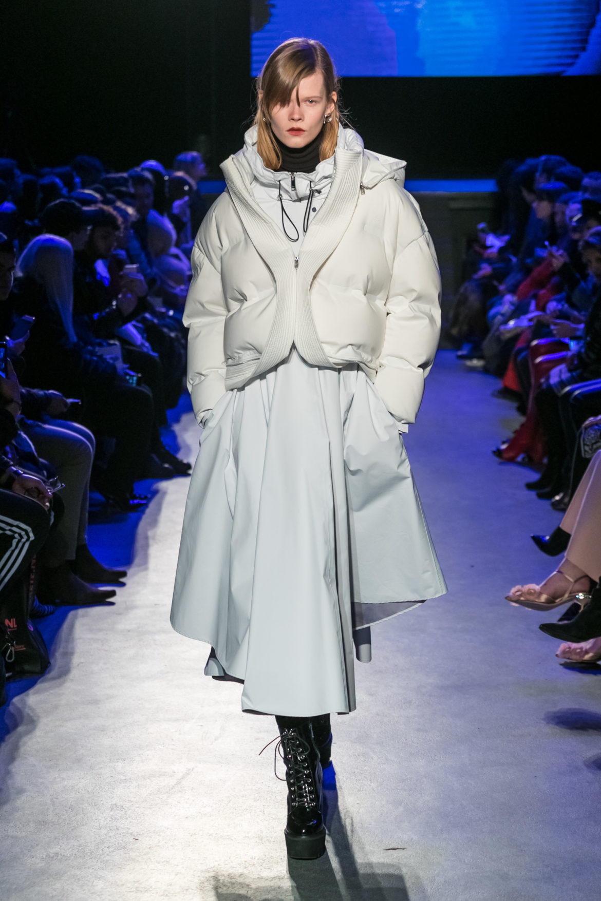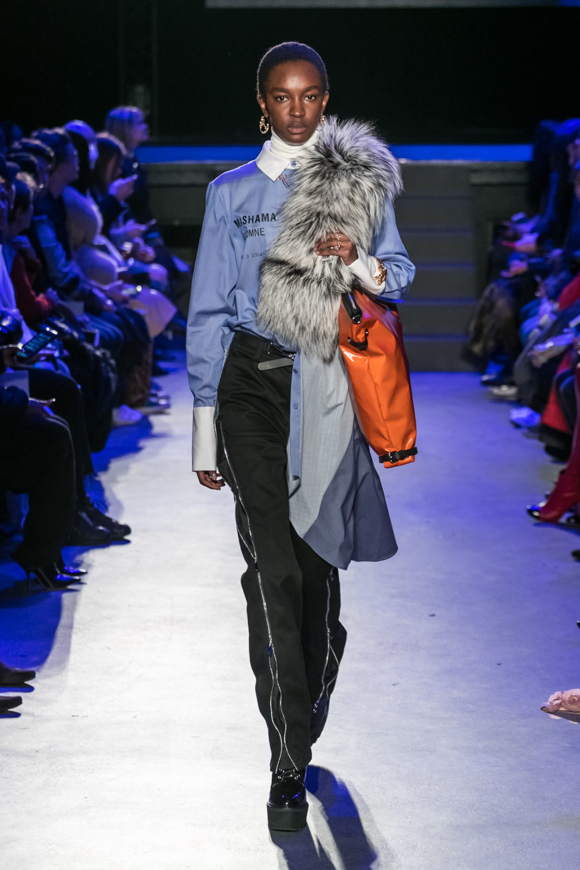Exaggerated hoods, round shapes, deconstructed big forms, and voluptuous cuts, sculpt the MASHAMA impenetrable shield. Innovative high-tech materials, sci-fi fabrics and new production techniques further optimise the ideal outdoor buffer in big body- warming puffers, inside-out anoraks and a changing-colour chameleon coat.