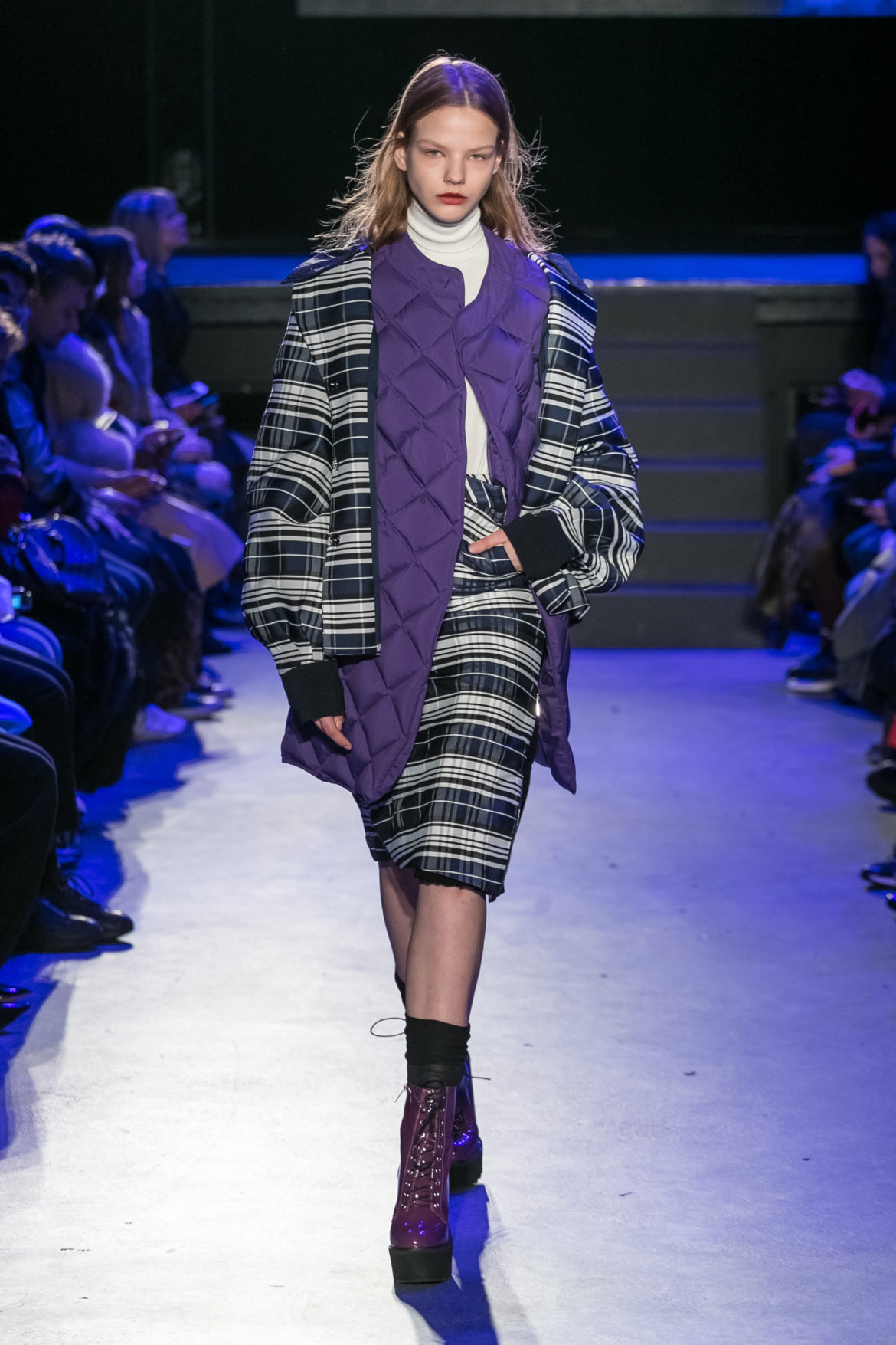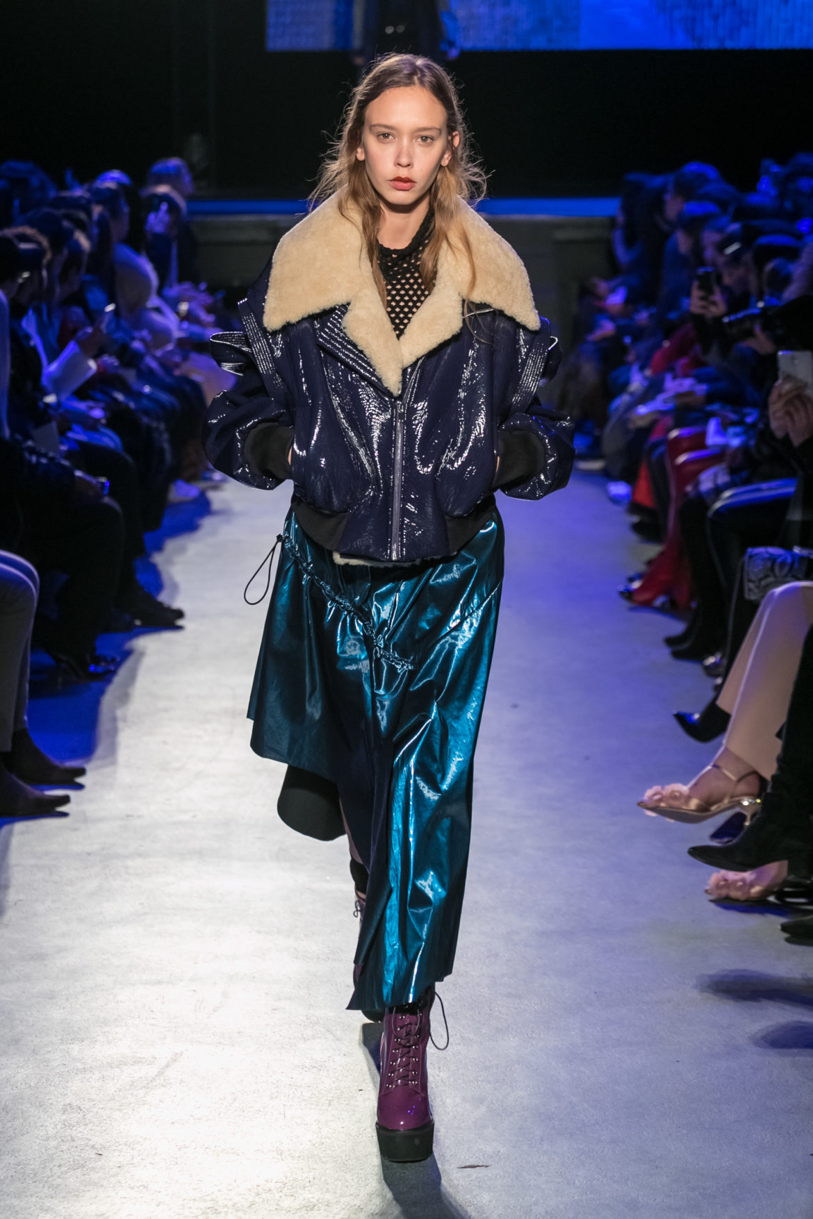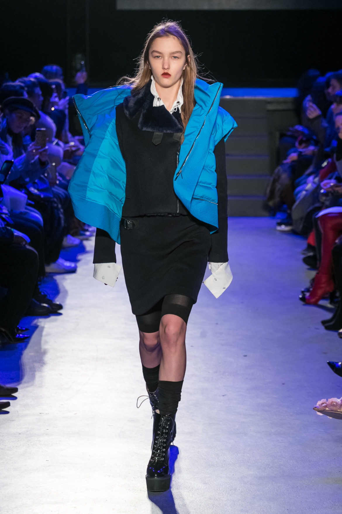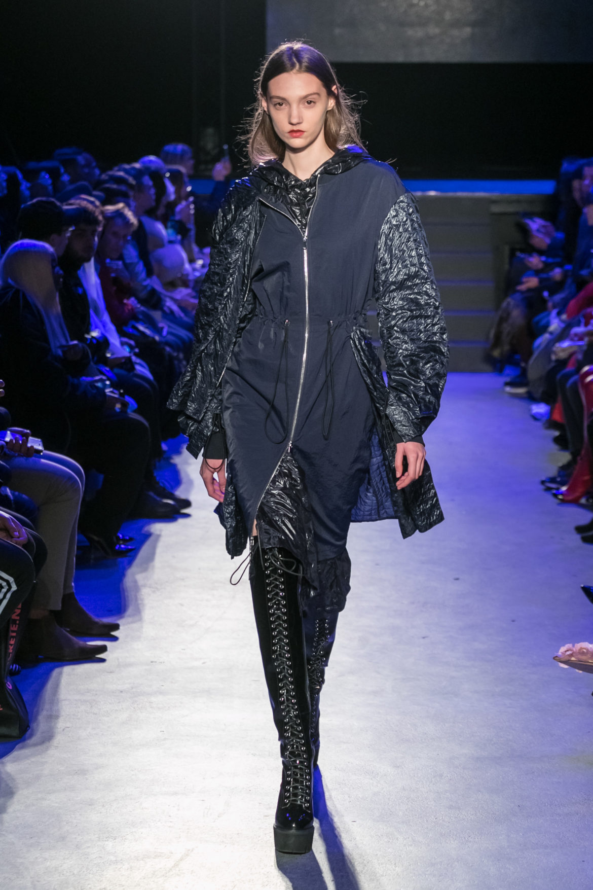 Exaggerated hoods, round shapes, deconstructed big forms, and voluptuous cuts, sculpt the MASHAMA impenetrable shield. Innovative high-tech materials, sci-fi fabrics and new production techniques further optimise the ideal outdoor buffer in big body- warming puffers, inside-out anoraks and a changing-colour chameleon coat.