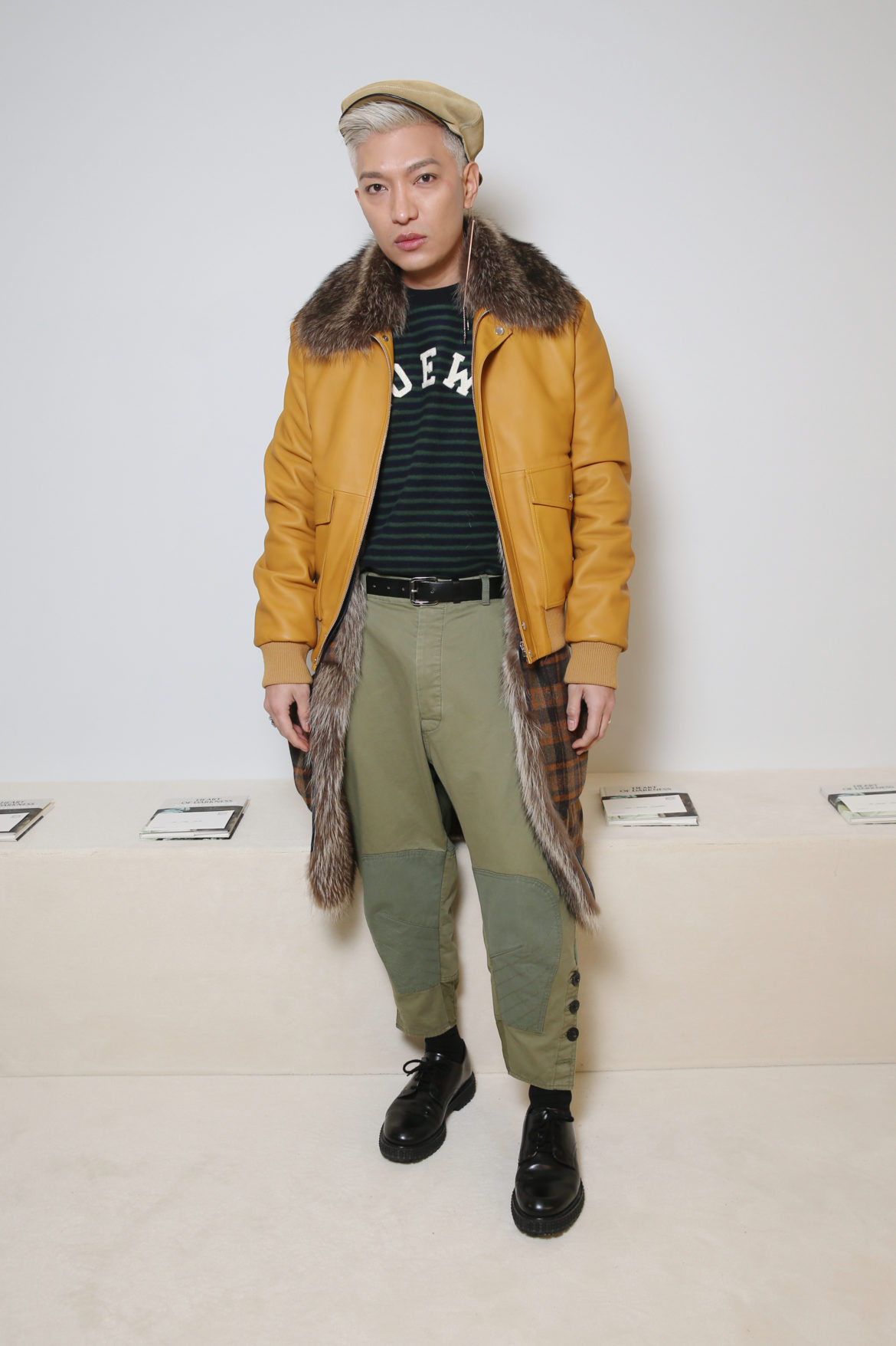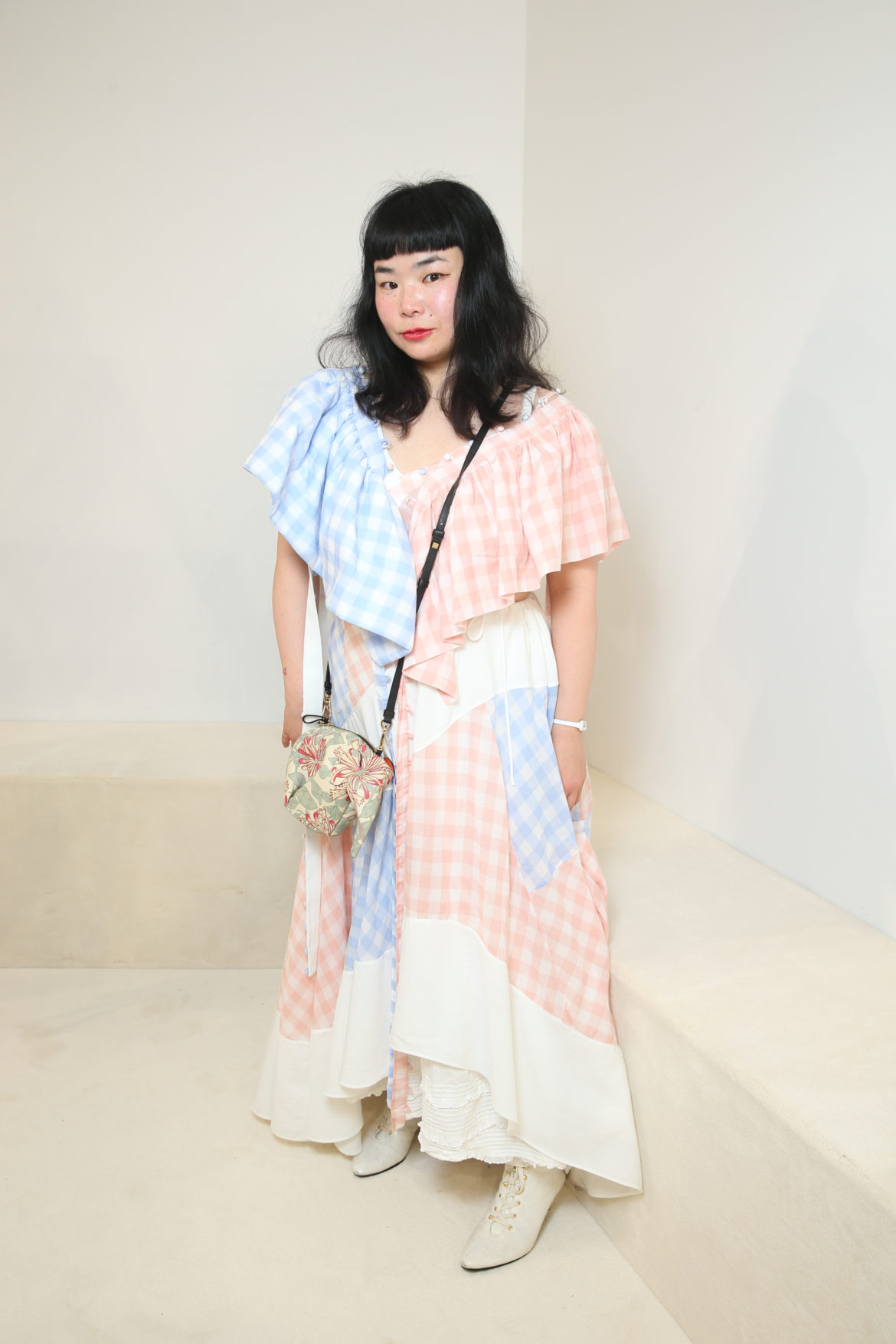 Inside the Maison de l’UNESCO in Paris, the LOEWE show space is populated by the Neo-Dada sculptures of Japanese artist Tetsumi Kudo (1935 – 1990) alongside furnishings and an important replace designed by E.W. Godwin (1833 – 1886). Though a seemingly incongruous pairing, Godwin’s contribution to the Arts & Crafts tradition was heavily in uenced by Victorian Japonisme, forming a sober complement to Kudo’s grotesque Post-Human microcosms.