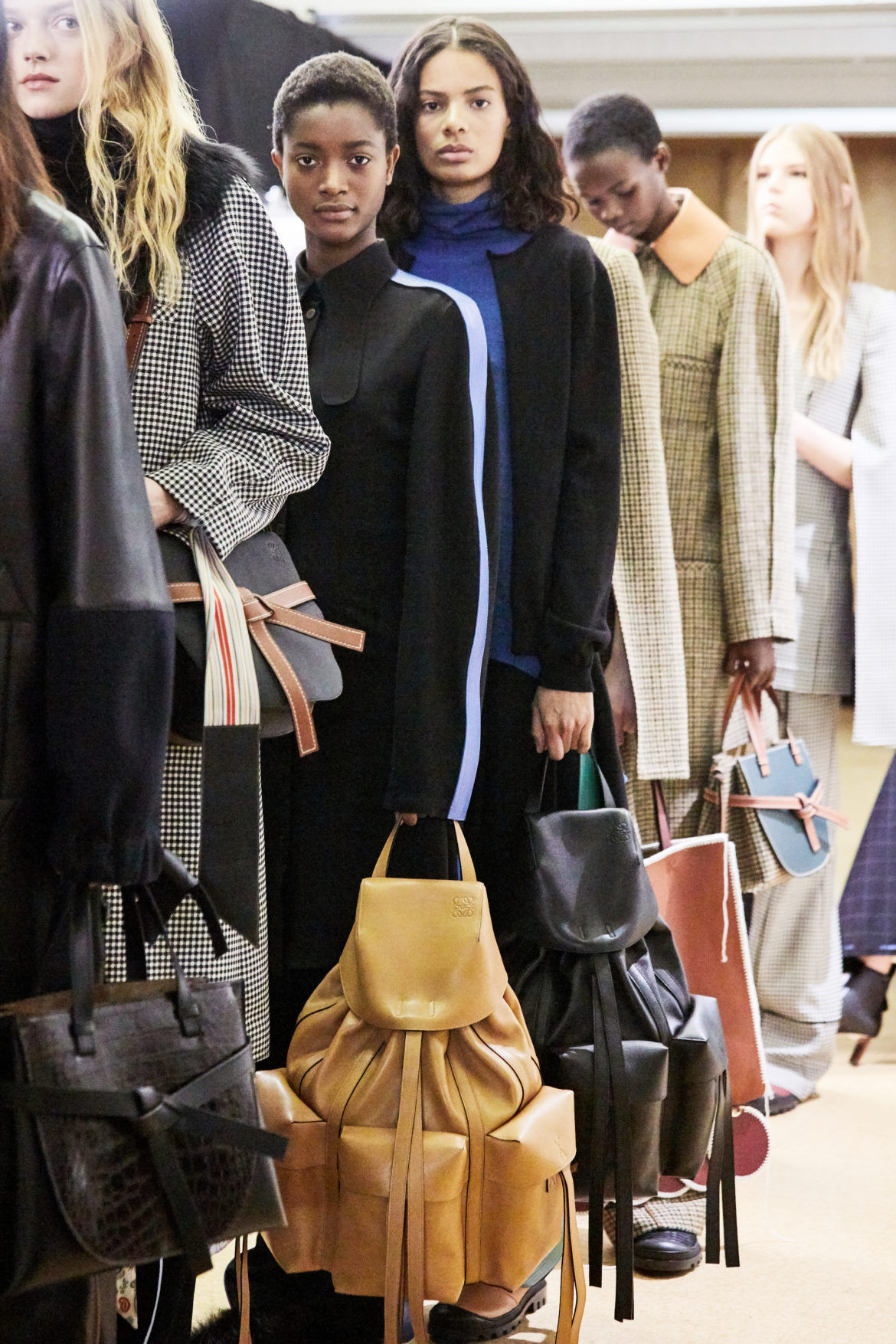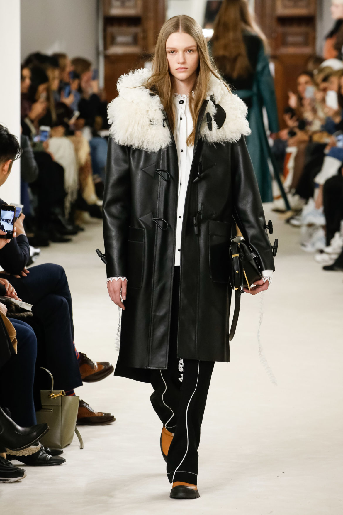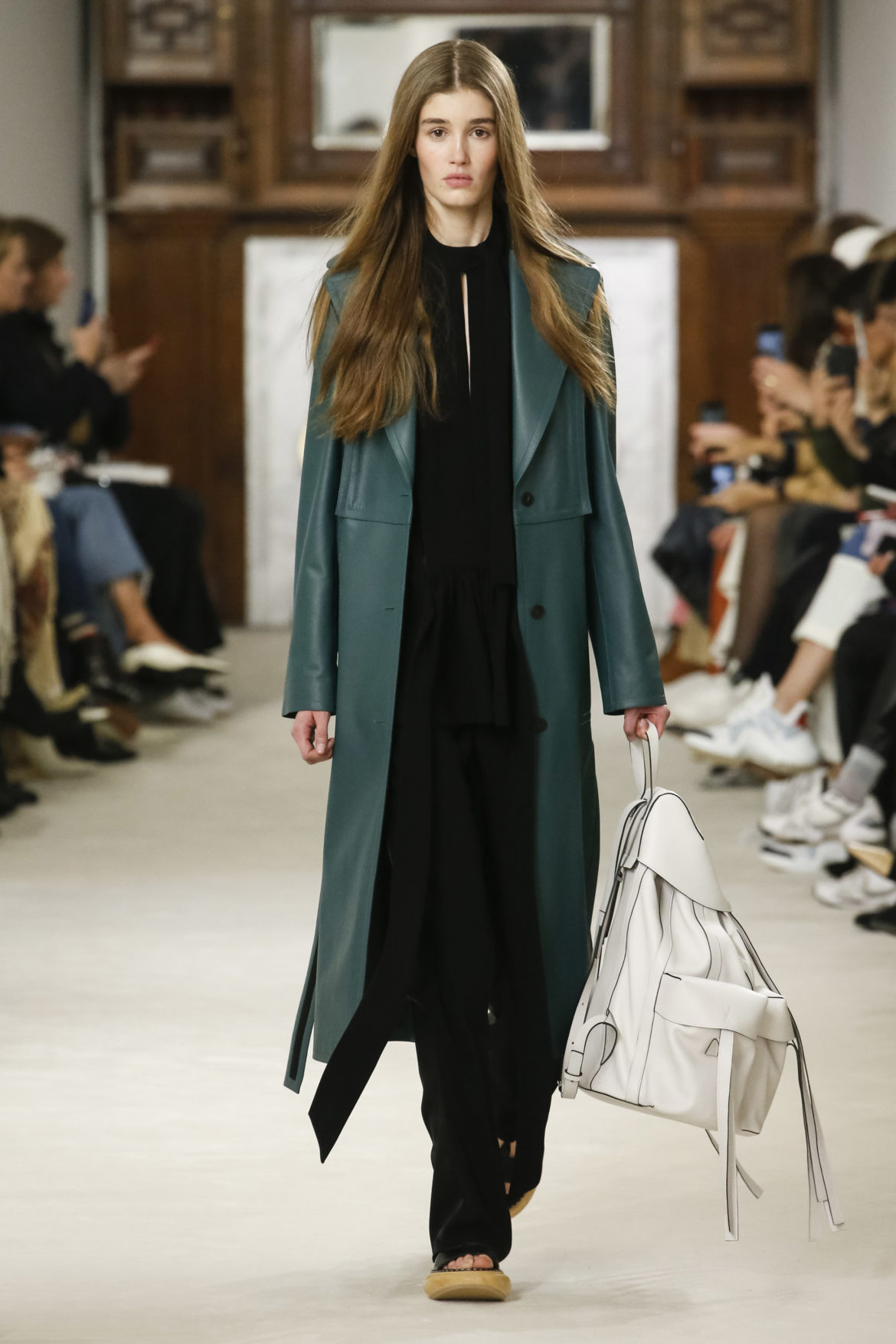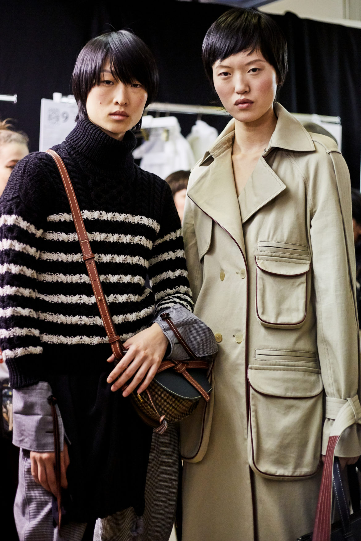 Questioning the facade of the introvert, the LOEWE Women’s Fall Winter 2018 collection designed by creative director Jonathan Anderson inhabits a pensive space where the organic meets the industrial. Disrupted by decadent moments of primitivism, austerity reigns – as shapes nod to the mid-century shifted through a contemporary lens.