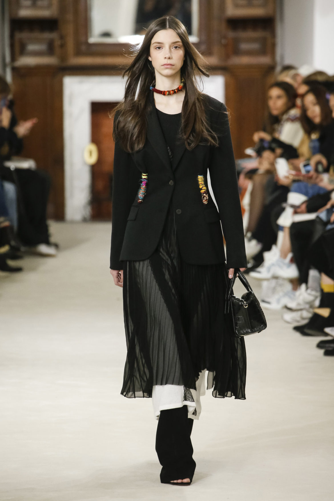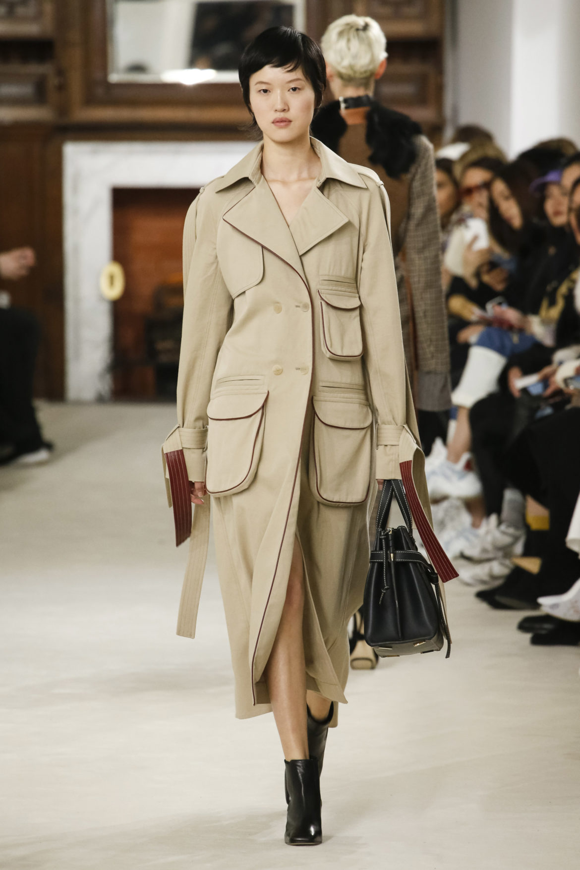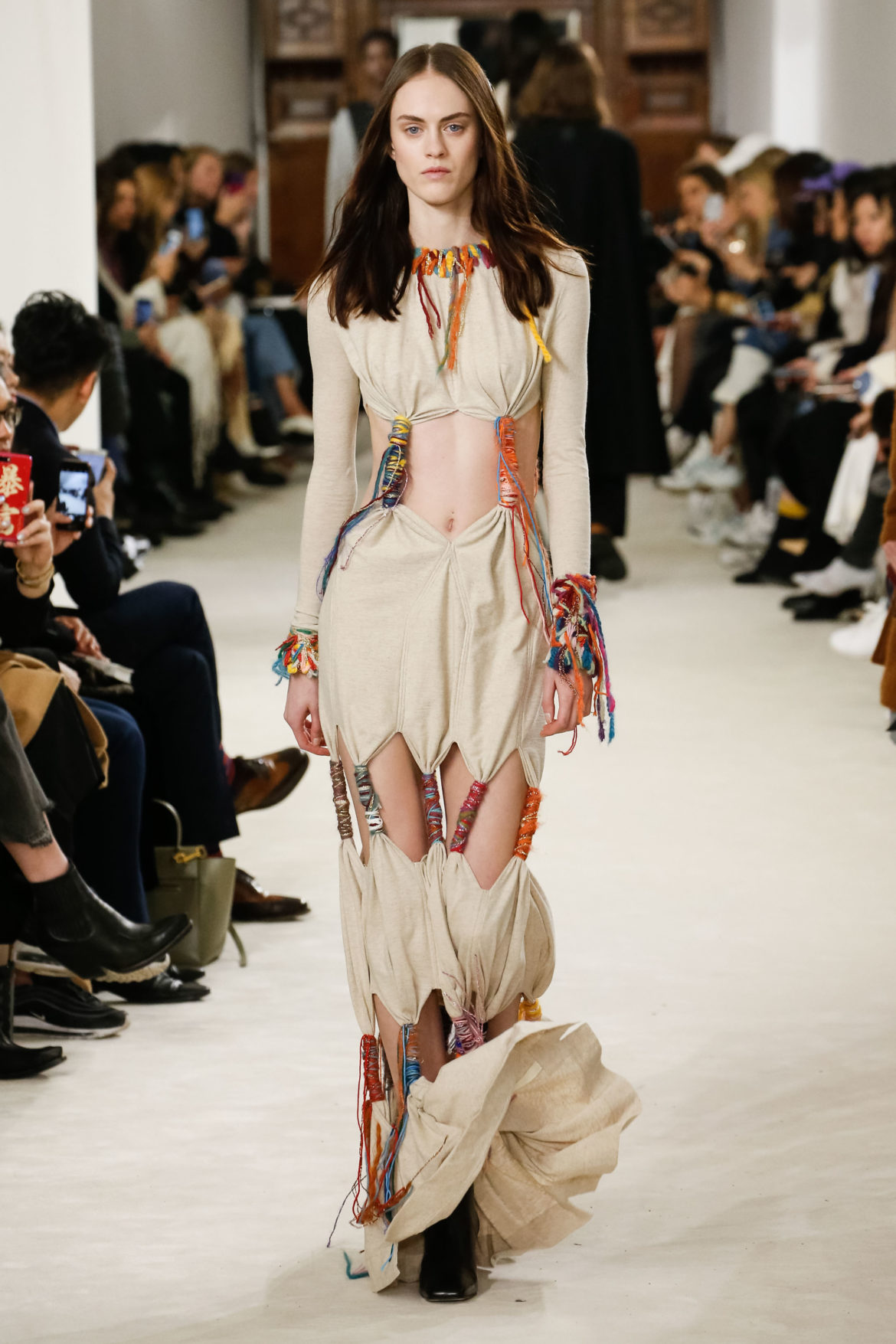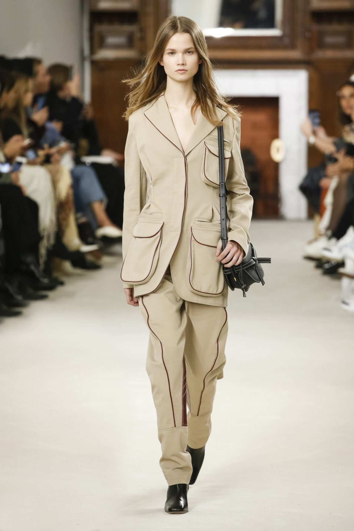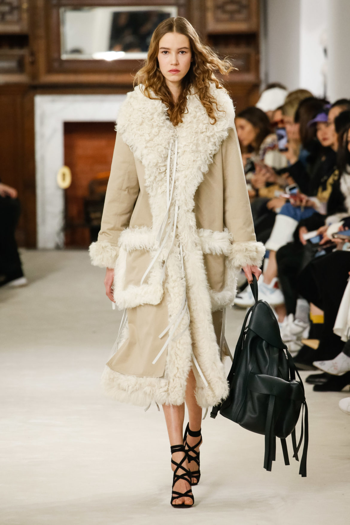 Questioning the facade of the introvert, the LOEWE Women’s Fall Winter 2018 collection designed by creative director Jonathan Anderson inhabits a pensive space where the organic meets the industrial. Disrupted by decadent moments of primitivism, austerity reigns – as shapes nod to the mid-century shifted through a contemporary lens.