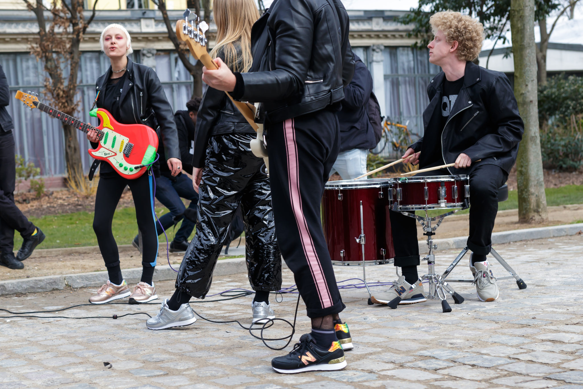 New Balance a présenté les modèles de son pack 574 Glitter Punk en organisant des happenings musicaux, avec le groupe punk The Dream Wife, avant 3 défilés emblématiques de la Fashion Week parisienne.