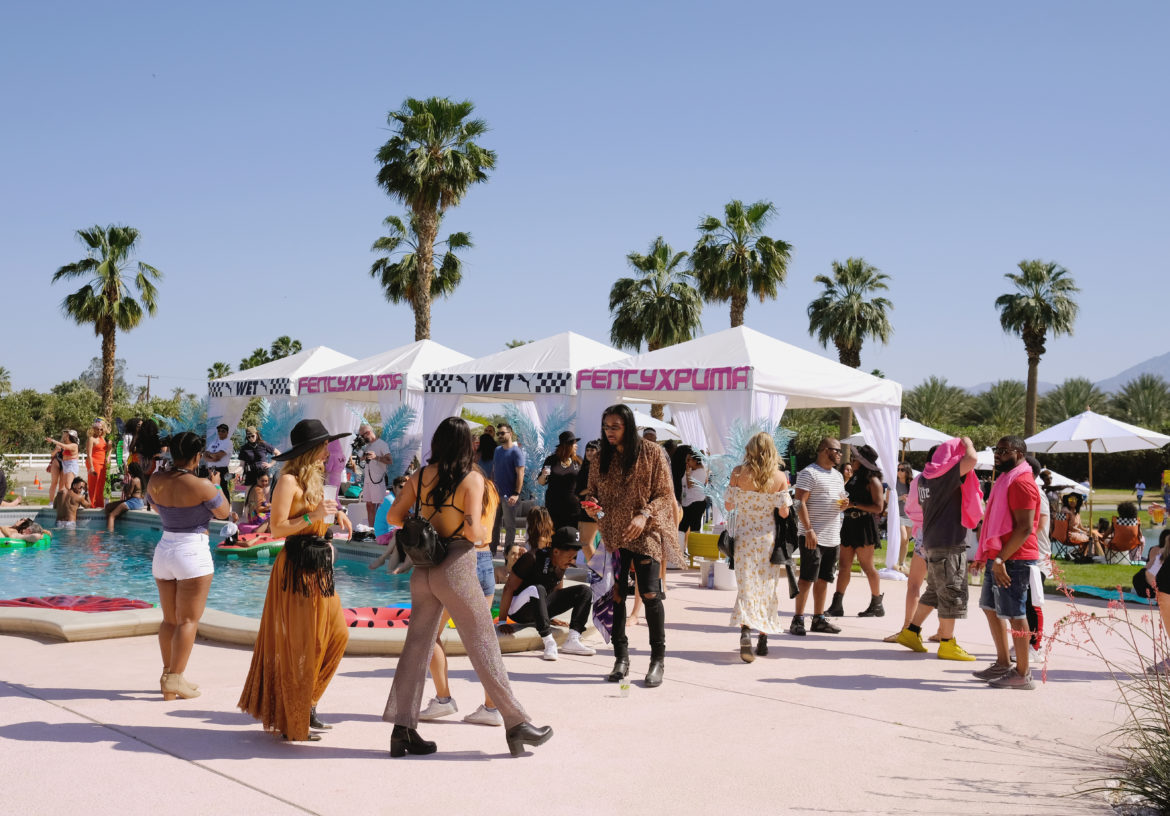 Rihanna and PUMA threw the hottest bash of the season to celebrate the FENTY PUMA by Rihanna collection. Held at a private estate in the Coachella Valley, the VIP only gig had the collection’s beach chic meets motosport theme in full swing with guests revelling in slides, lounging in cabanas and going hard on the dirt bike trail. Rihanna who was in her usual element wearing head-to-toe FENTYxPUMA, chilled with guests and grooved along to the tunes of some of today’s hottest DJ’s.