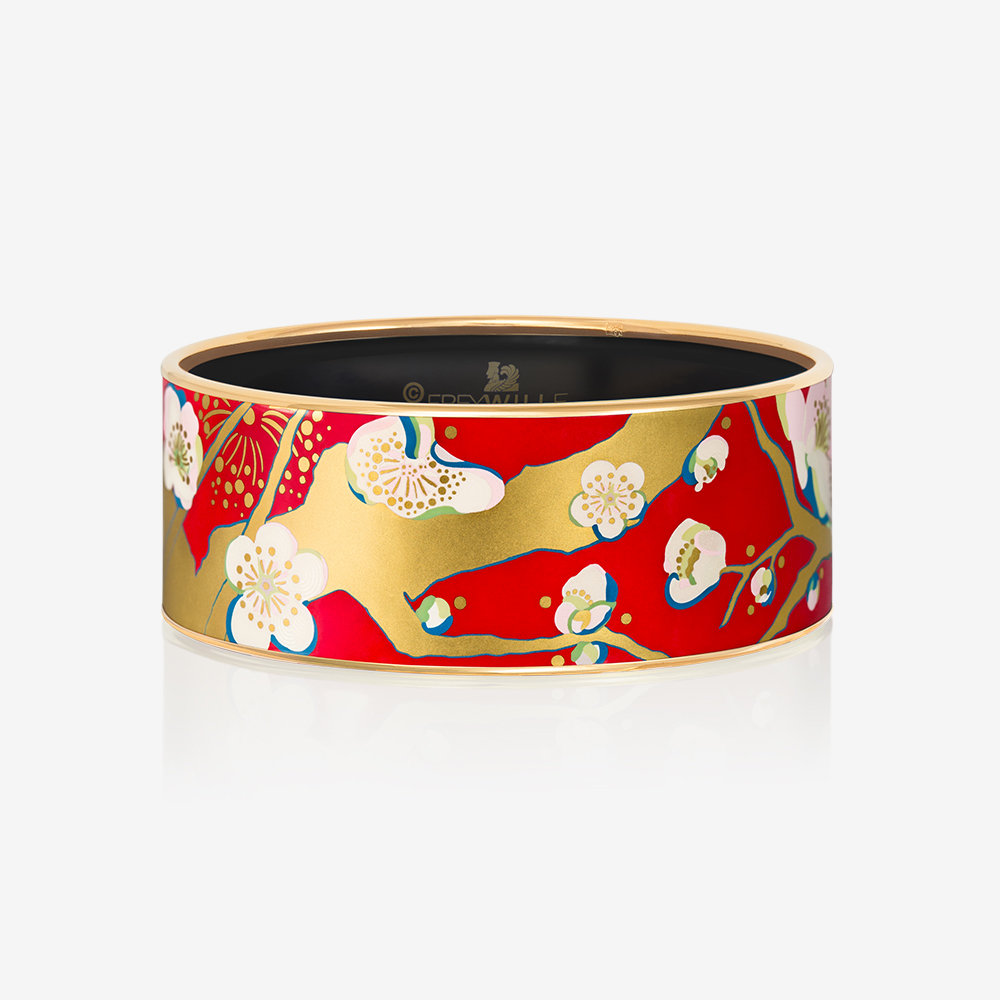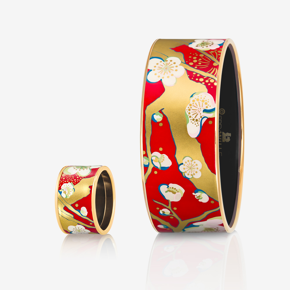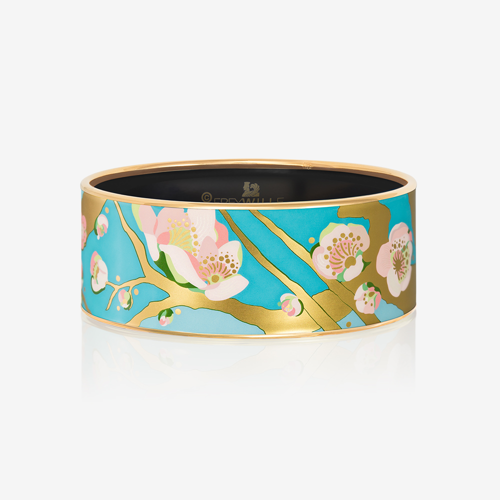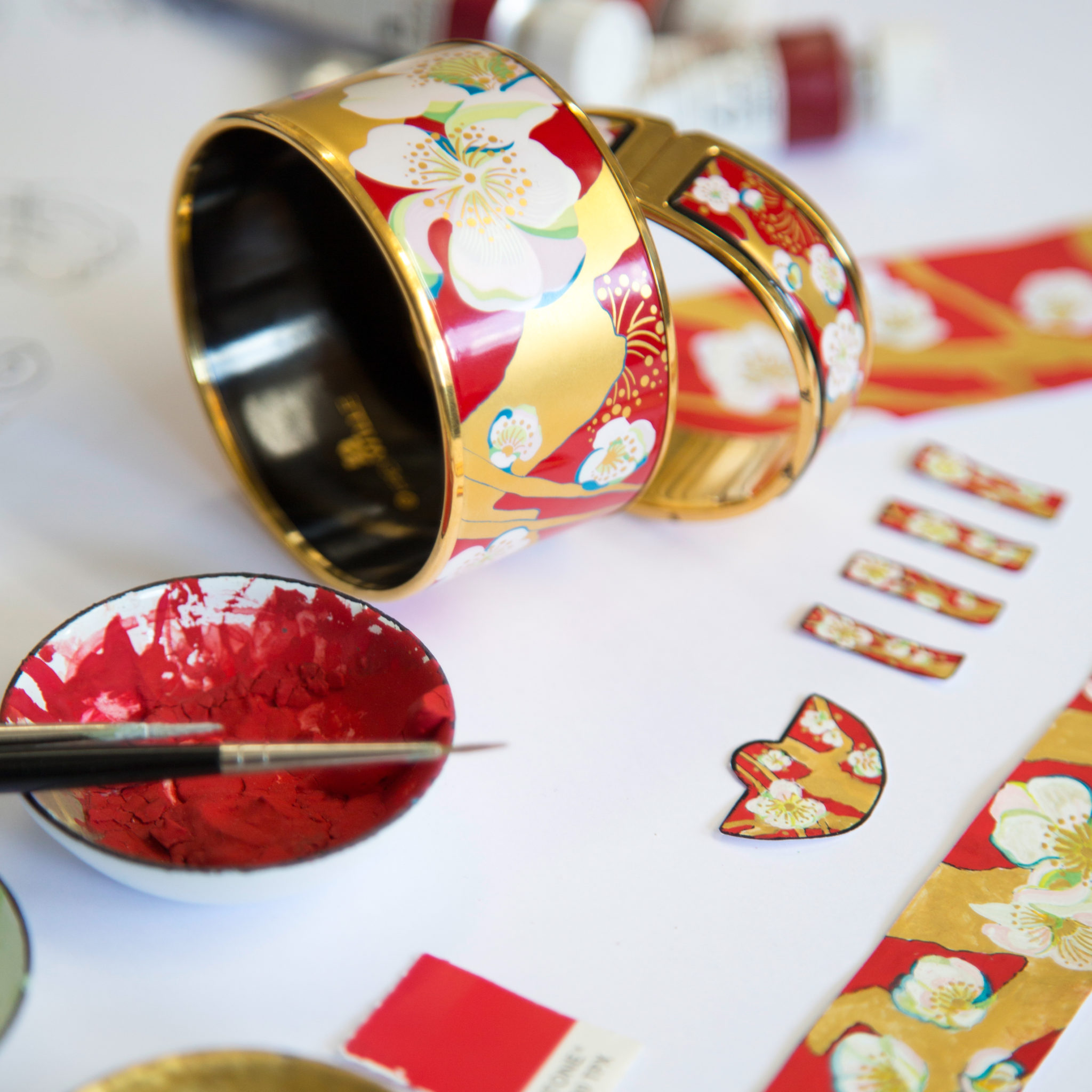 Les 2 interprétations utilisent de la poudre d’or 24 carats au sein même de l’émail grand-feu, équilibrant parfaitement les couleurs intenses des bourgeons d’amandiers et leurs branches dorées.
