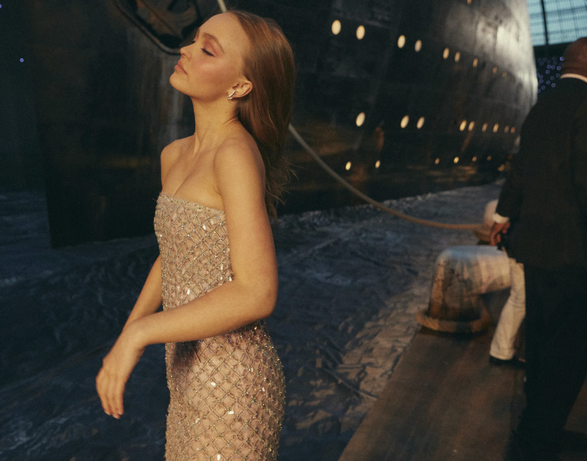 Lily Rose Depp, Comédienne et Ambassadrice CHANEL, portait des boucles d’oreilles « Ruban » en or blanc 18K et diamants CHANEL Joaillerie.
