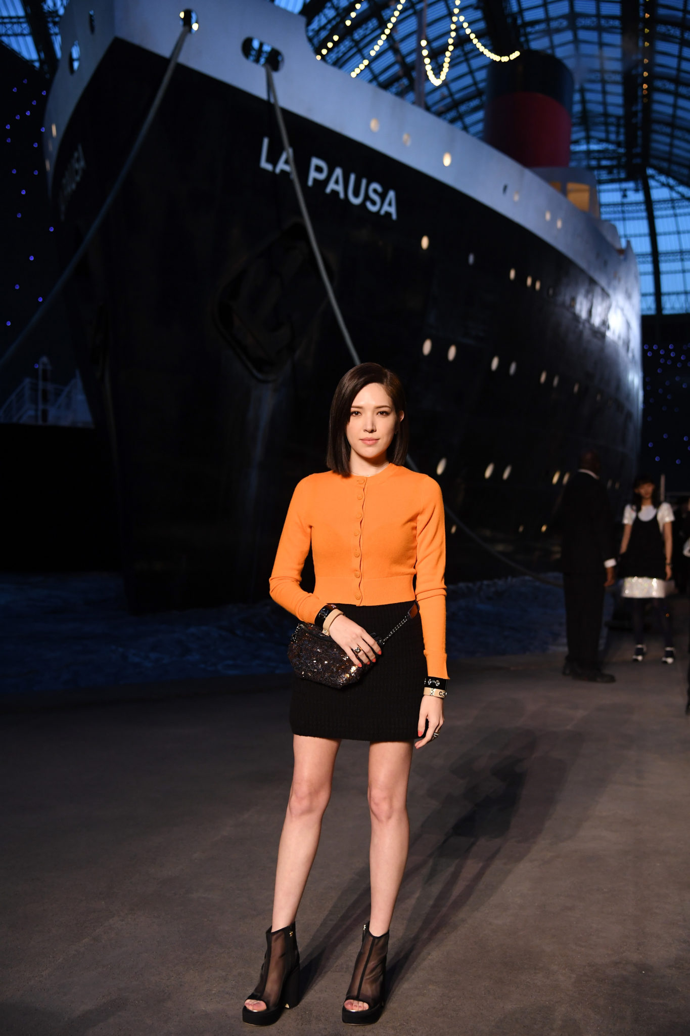 Elle portait un cardigan et une jupe CHANEL de la collection Prêt-à-collection Automne-Hiver 2018/19.